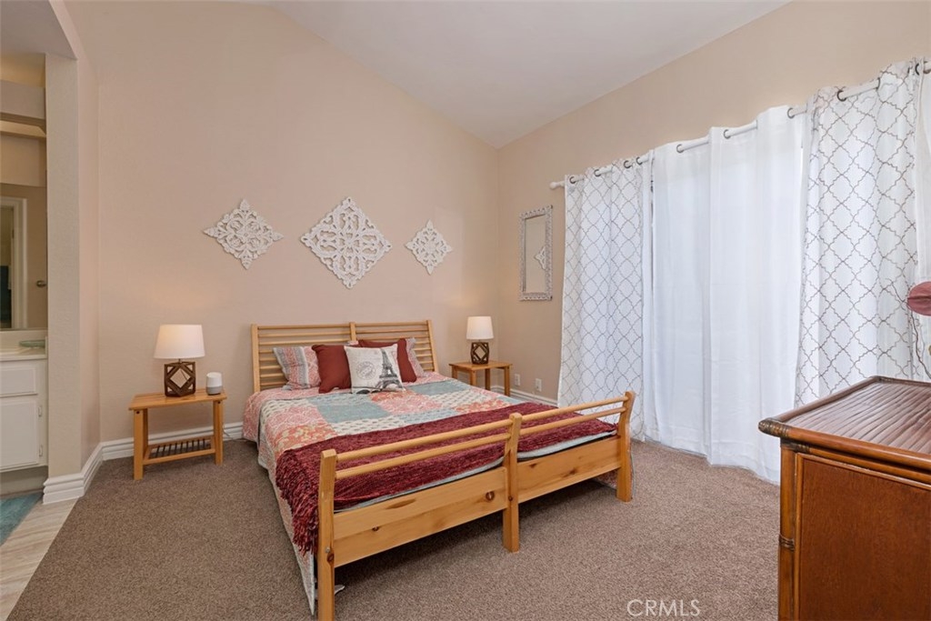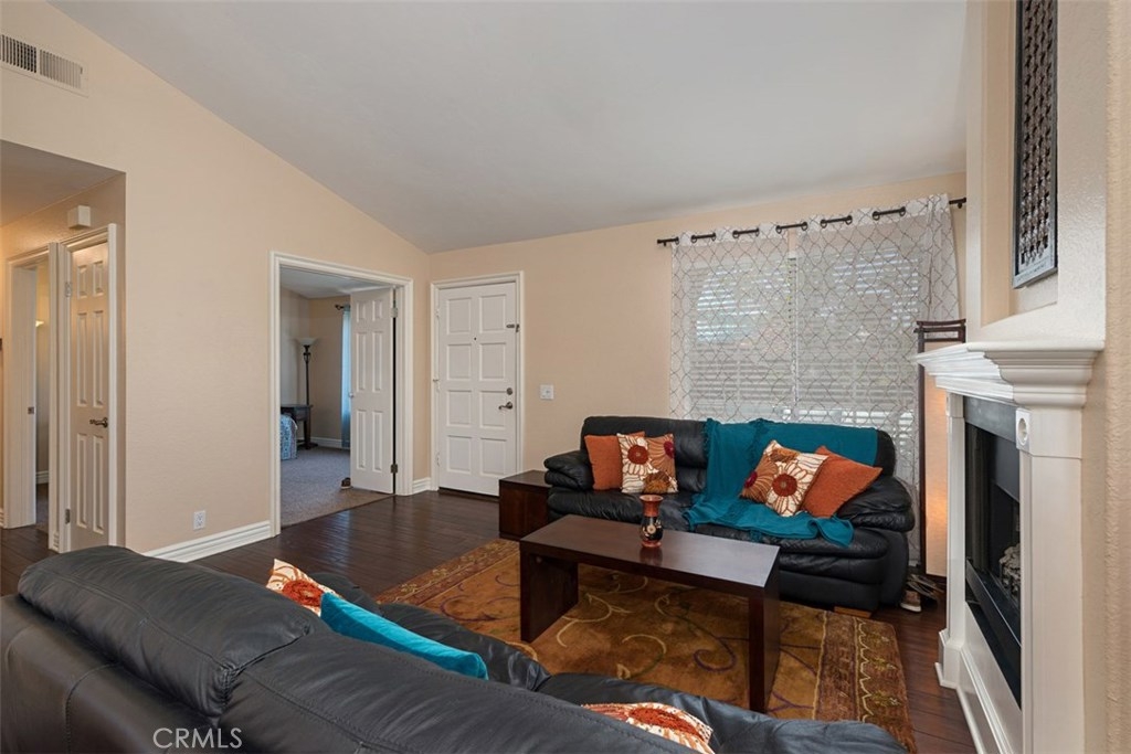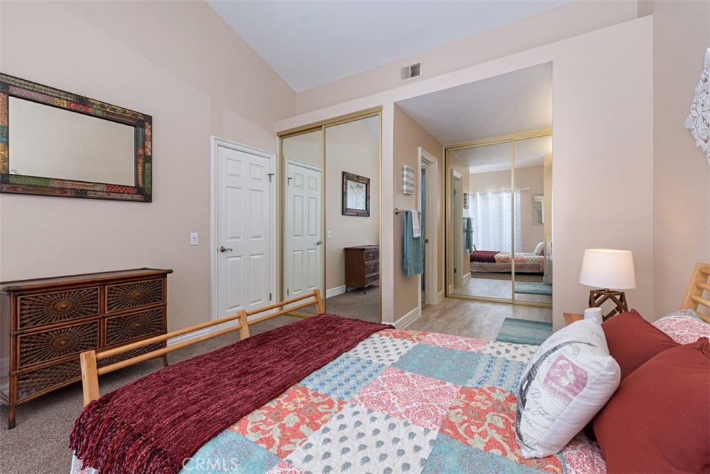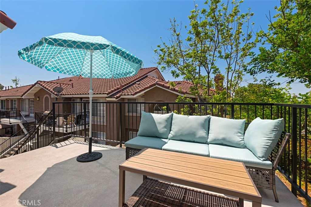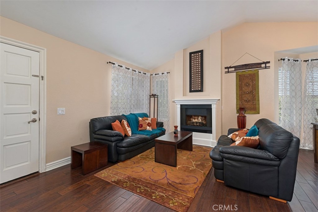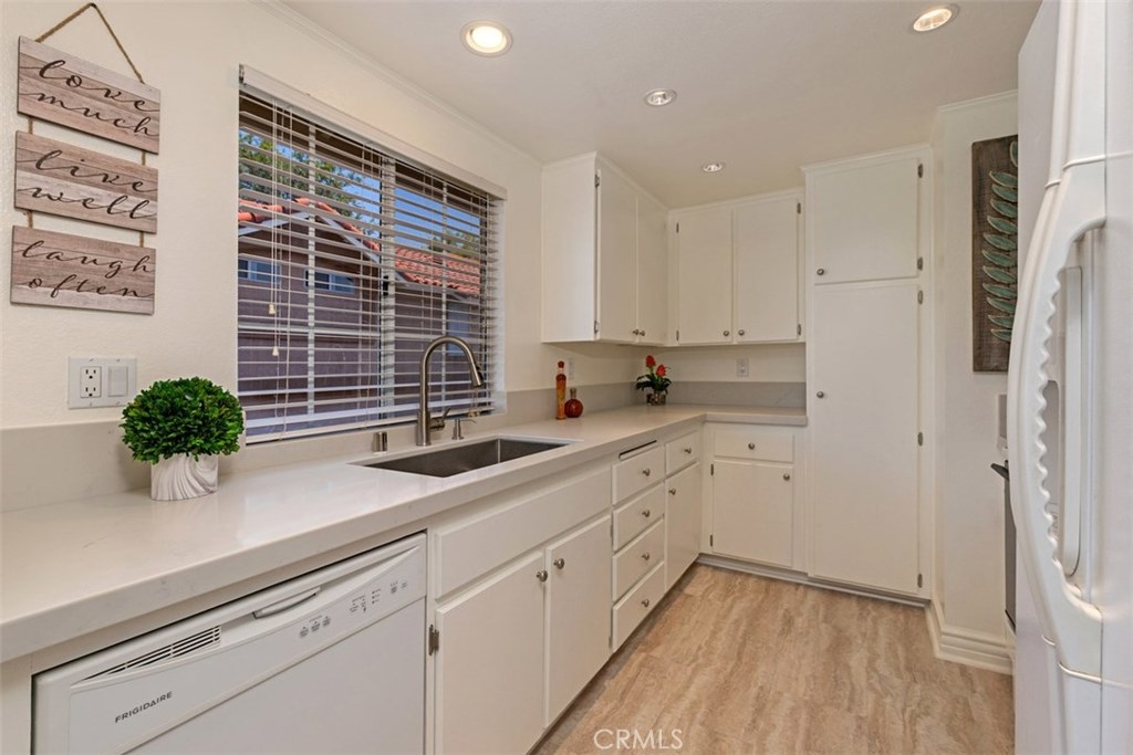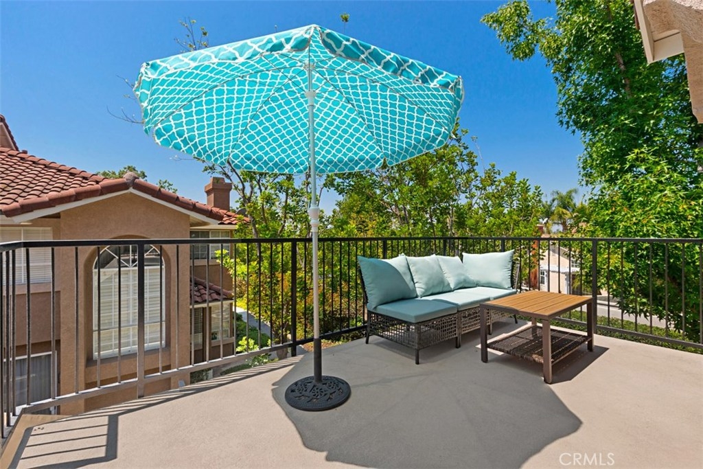 Turnkey 2 bedroom, 2 bath carriage unit with nobody above or below! Living room with cathedral ceilings, manufactured wood floors and warm fireplace! Kitchen includes quartz counters, new stainless sink, recessed lights and new tile. Formal dining with new light fixture. Dual tone paint and upgraded baseboards throughout. Large master bedroom with two closets, plus slider doors to private deck and storage closet. Master bath includes dual vanity, new tile flooring and oval tub. Middle bedroom has double doors leading to living room, plus single door access at hallway. Stackable washer/dryer hookups in middle bath closet. End unit with large second balcony overlooking perimeter walkway and greenbelt area, which has convenient steps that lead down to the neighborhood access to Cielo Vista Park, Cielo Vista Elementary and RSM Intermediate. Single car garage. Community includes pool/spa and tot lot. Plus right across the street from Santa Margarita Lake with all of its amenities!