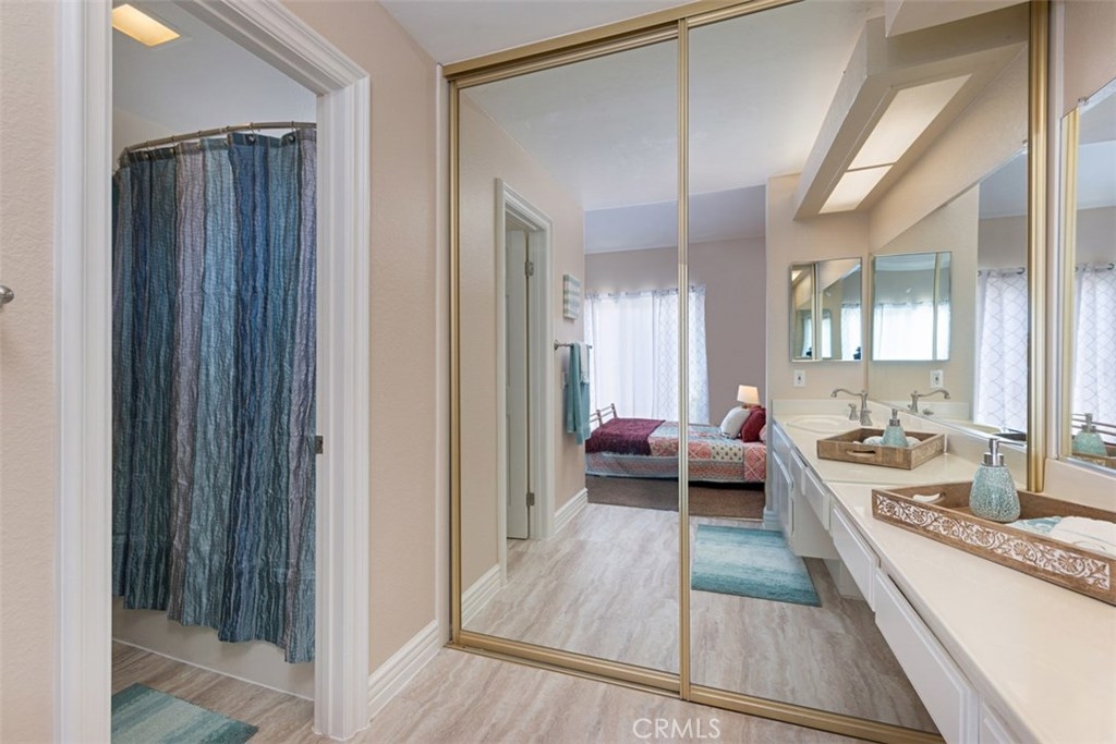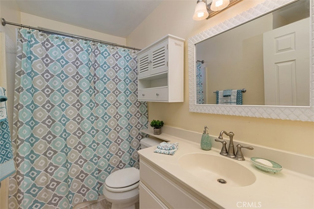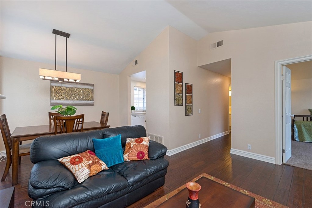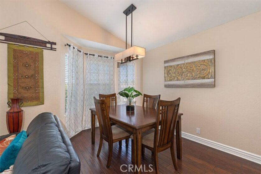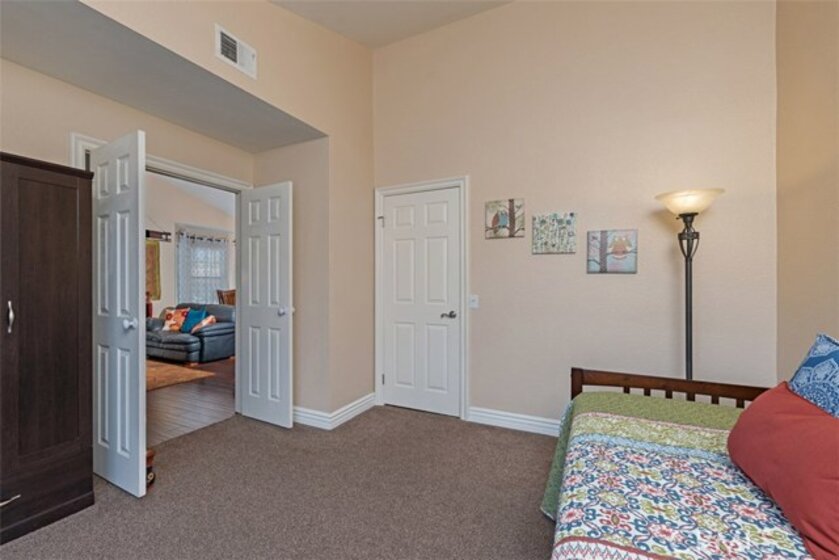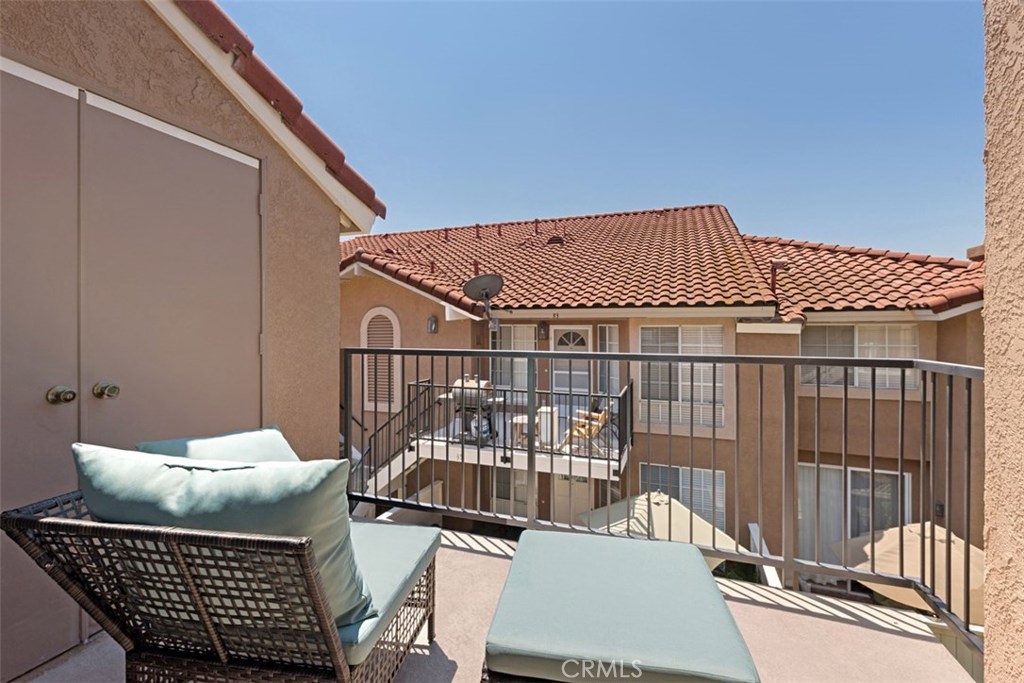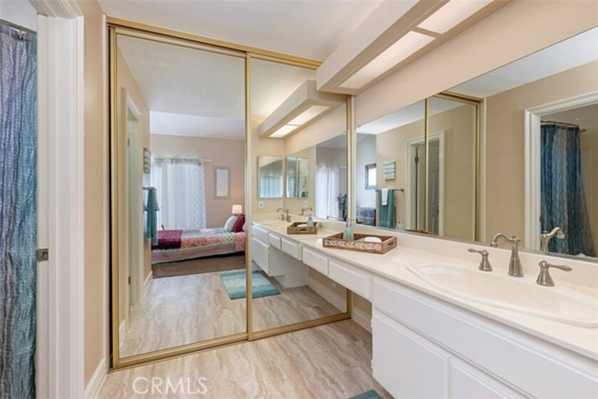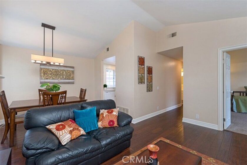Turnkey 2 bedroom, 2 bath carriage unit with nobody above or below! Living room with cathedral ceilings, manufactured wood floors and warm fireplace! Kitchen includes quartz counters, new stainless sink, recessed lights and new tile. Formal dining with new light fixture. Dual tone paint and upgraded baseboards throughout. Large master bedroom with two closets, plus slider doors to private deck and storage closet. Master bath includes dual vanity, new tile flooring and oval tub. Middle bedroom has double doors leading to living room, plus single door access at hallway. Stackable washer/dryer hookups in middle bath closet. End unit with large second balcony overlooking perimeter walkway and greenbelt area, which has convenient steps that lead down to the neighborhood access to Cielo Vista Park, Cielo Vista Elementary and RSM Intermediate. Single car garage. Community includes pool/spa and tot lot. Plus right across the street from Santa Margarita Lake with all of its amenities!