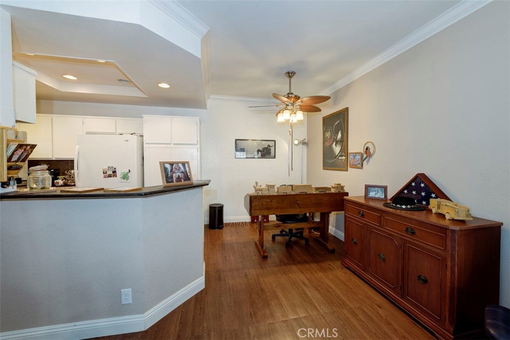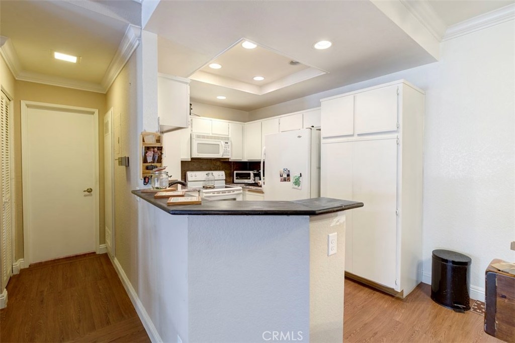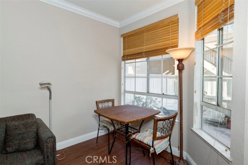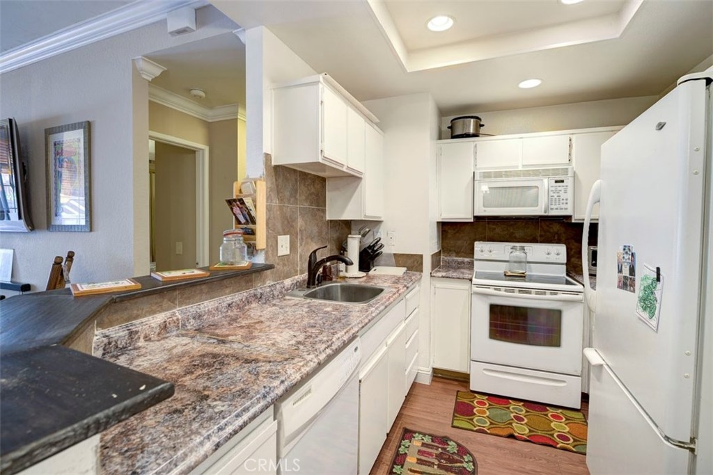 Your search is over. This is the one to call home! This delightful first level condominium offers the perfect opportunity to relax in your home. The inviting family room has wood laminate flooring and upgraded paint. The dining area offers a spacious eating area with upgraded wood laminate flooring and paint, while the kitchen offers an excellent place to make meals with an electric range, oven, and fresh paint. Located minutes away from shops, schools, and the Rancho Santa Margarita Lake. This home also offers a rare opportunity in the community to have 2 One Car Detached Garages. Come see this home before its gone!