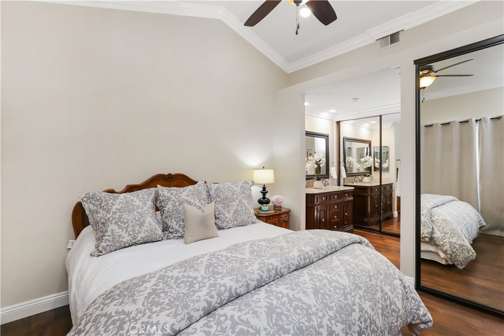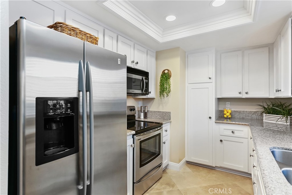 Welcome home to this beautifully remodeled, bright and cheery, 2BR, 2BA condo in the sought-after community of Mission Courts, with the perfect floor plan and 1-car garage. From the moment you step into this move-in-ready home, you will enjoy plenty of natural light, high ceilings, and the most functional layout where everything has been elegantly upgraded. The spacious front patio, great for entertaining, welcomes you into the home where you are greeted by a spacious living room with high ceilings and modern fireplace with multi-color flames (and so much more), gorgeous LVP floors throughout, crown molding and recessed lighting, leading into the spacious dining room with large, new windows. Continue on to the newly remodeled kitchen with new white shaker style custom wood cabinetry, pantry, granite counter tops, and stainless-steel appliances with Italian travertine marble floors. Down the hallway you will find the linen closet, spacious secondary bedroom with wall-to-wall mirrored door closets and plenty of natural light. You’ll also find the secondary full bathroom completely remodeled with new granite countertop vanity and new tub with frameless glass shower enclosure, including the stackable washer and dryer. At the end of the hall, you will be greeted by the spacious master suite with direct access to secondary patio/balcony and newly remodeled master bathroom with his and hers dual sinks, granite counter tops, with new marble floors. Noteworthy upgrades include new windows, new window coverings, new flooring, crown molding, recessed lighting, new kitchen cabinets, granite counters, newly remodeled bathrooms with marble tile enclosures and new frameless shower doors, ceiling fans, new HVAC system, stainless steel appliances, 1-car garage plus additional permitted parking space. Also enjoy RSM Lake, Beach Club, parks, playgrounds, pools, courts, hiking, biking trails, and TOP-RATED SCHOOLS. Centrally located w/quick access to shopping, freeways, near parks, pool and spa. No Mello Roos, low HOA.