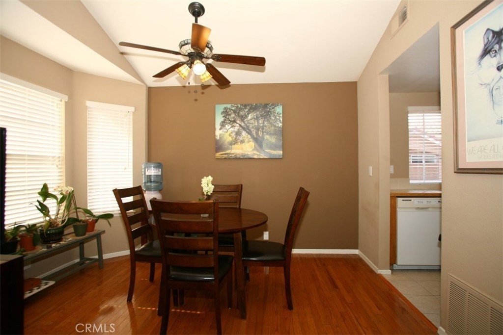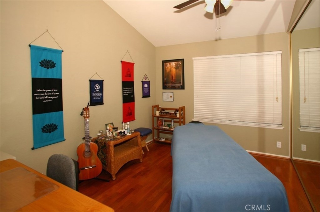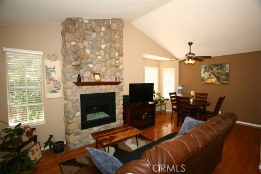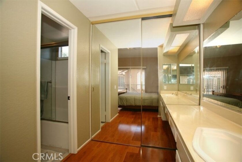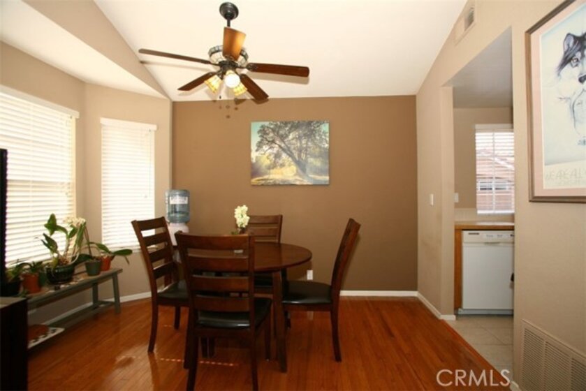Great first home or investment! Turnkey Rancho Santa Margarita Condominium Community featuring popular "Carriage Unit" (no one above or below). End unit. High Vaulted Ceilings in the Master bedroom, living room and dining area. Cozy stone fireplace in the living room, fireplace is decorative only. Updated wood floors. Smooth ceilings. All appliances stay including new washing/dryer machine. One car garage. 2 comfortable patios (one from the entrance and the other of the master bedroom. Close to schools, restaurants, shopping, Rancho Santa Margarita Lake and Beach Club and community pool and spa.