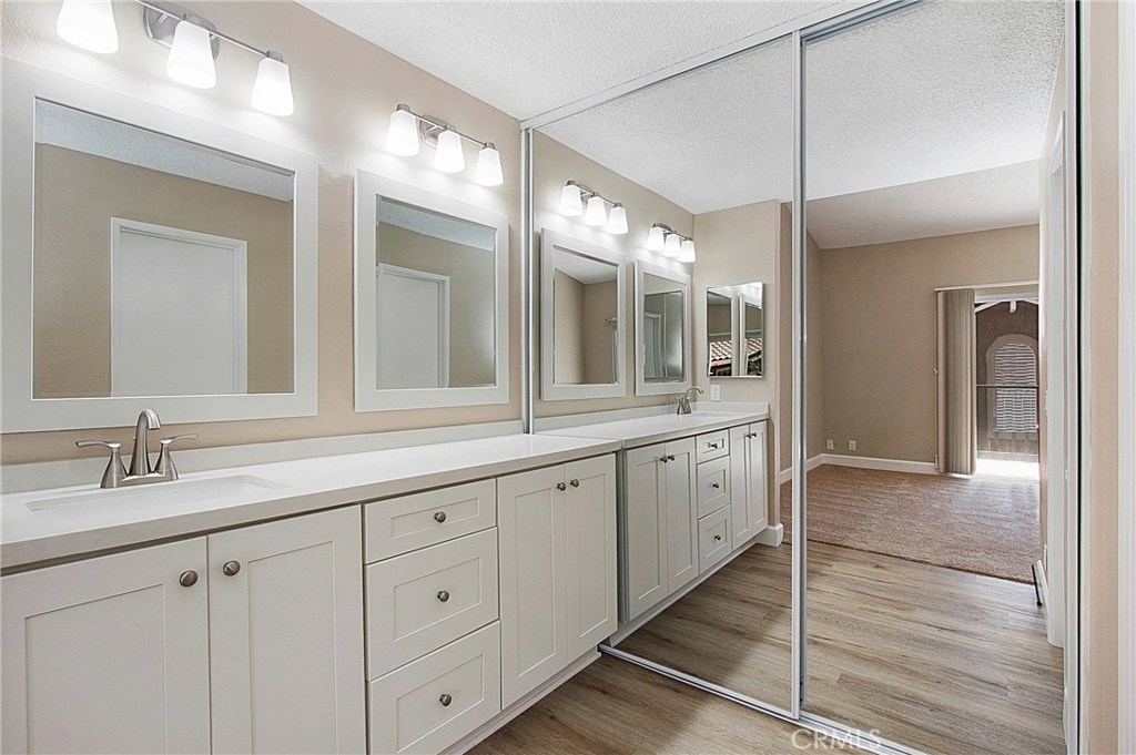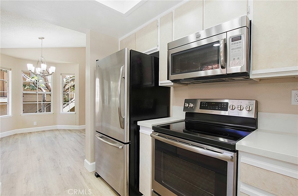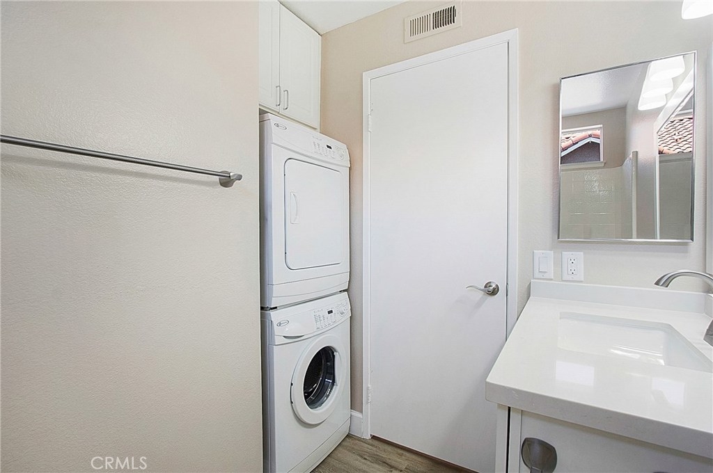 Completely Renovated “Carriage Unit” No one above or below! Light and Bright. Detached Single Car Garage directly below. 2 BDRM, 2 full Bath unit. New Laminate vinyl flooring and Carpet. Kitchen has been renovated; new Quartz counter tops and Stainless dishwasher. Stainless Range, Refrigerator and Microwave included. Master Suite features; Vaulted Ceiling, private Patio, New Shaker Style Cabinets with Quartz counter tops. His and Her Closets featuring New Mirrored Closet Doors. Second bedroom currently as open floor plan office easily converted to bedroom. Second Bathroom features new Shaker Style Cabinet with Quartz Counter Top and Newer Stackable Washer and Dryer Included. All new Lighting and Plumbing Fixtures. Newer A/C Compressor. NO Mello Roos. Live in Rancho Santa Margarita, Named “Safest City in California” (in 20,000-50,000 Population Range) Year after Year. Right across from Lago Santa Margarita the community 13 acre lake.