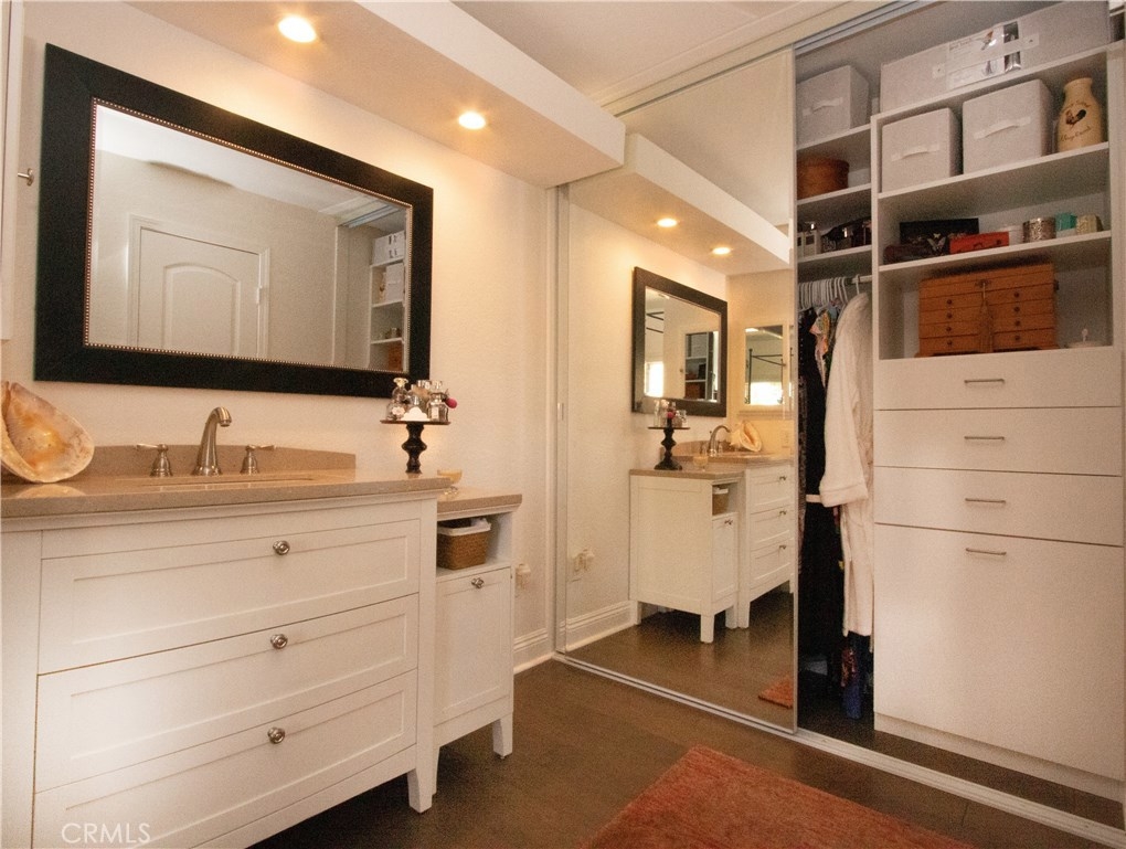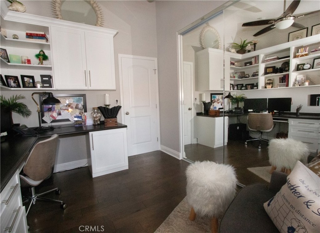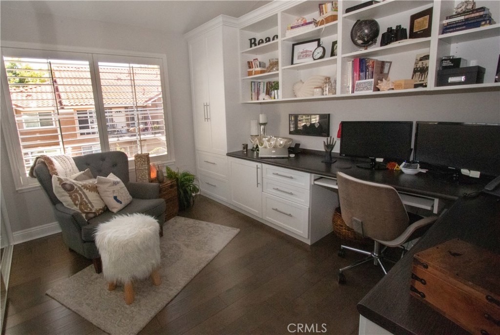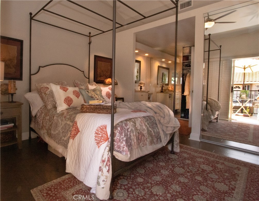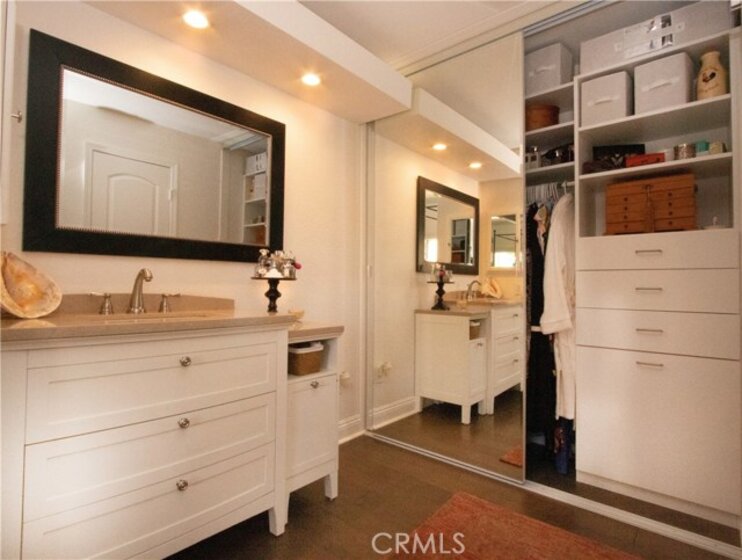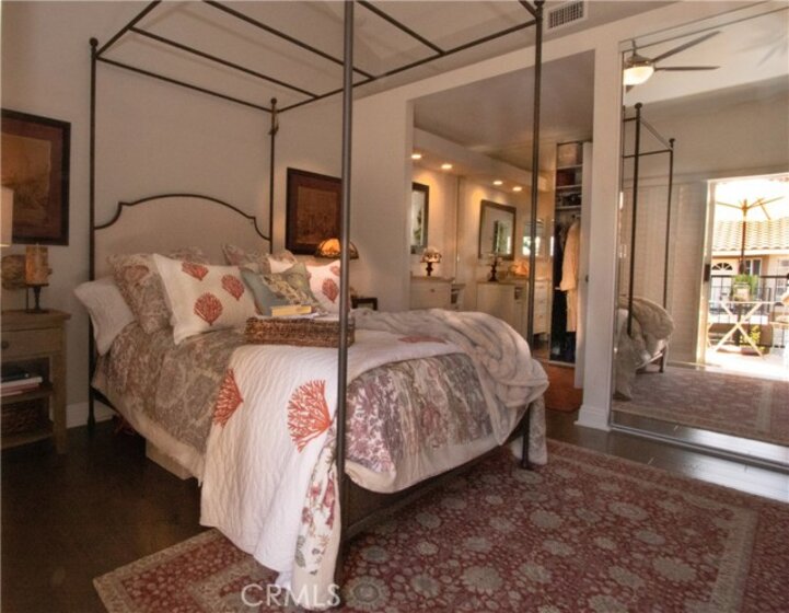 Elegant remodeled double master bedroom, private carriage unit with no one above or below. Featuring new hardwood floors and base boards, wood plantation shutters, and designer touches throughout. Chef's dream kitchen includes marble counter tops, subway tile back splash, new stainless steel appliances, and custom genie pullout for all your pots and pans! Dimmer lighting system and vaulted ceilings throughout with ceiling fans in every room. The second bedroom includes a custom built-in office. Both feature custom closets that interchange to your preference. Convenient inside laundry with new Samsung stacked washer and dryer included. 2 large decks and garage located conveniently under unit with new garage door.