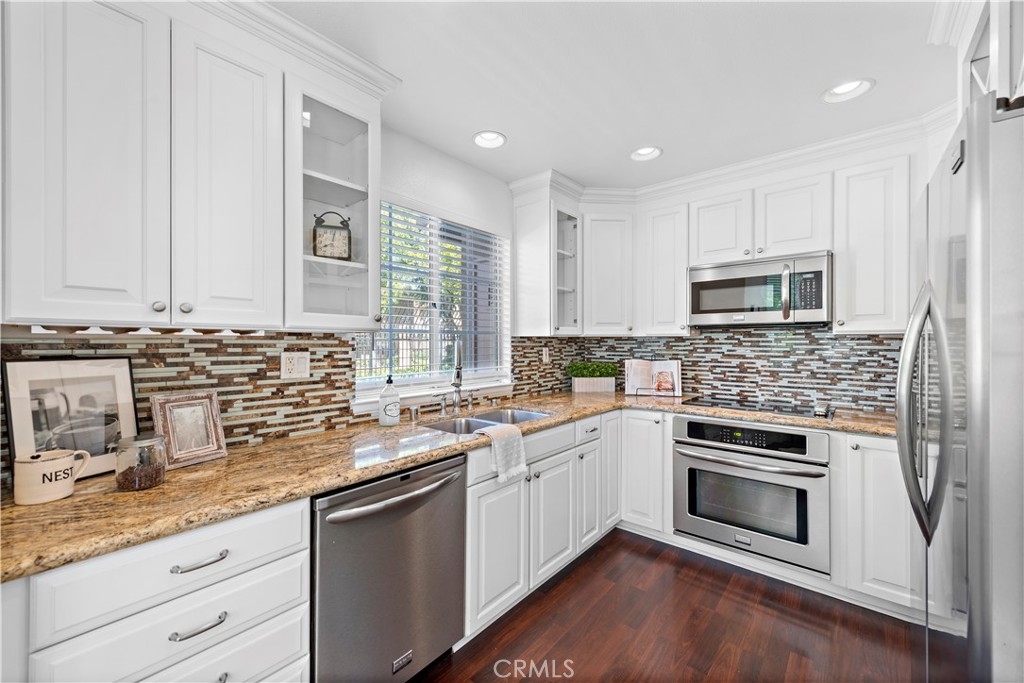 This is the one you've been waiting for! End unit and arguably the best location in the complex! As you're walking up the home, you will walk right past the community playground and pool area. Entering the front patio, you will be greeted with an open and private fenced patio - perfect for your summer bbq and entertaining! Walking through the front door, you will immediately notice the abundance of natural lighting throughout the property. The floorplan is open and welcoming and includes a proper dining area, kitchen and a family room complete with a cozy fireplace. The kitchen comes highly upgraded with custom cabinets, granite countertops, custom backsplash, and stainless steel appliances. Master bedroom is complete with dual sink bathroom and walk-in master bedroom closet. Bottom floor unit so you don't have to worry about stairs. Complete with a large one car garage and Plenty of open parking for visitors on the side of the complex. This is a truly stunning property that you won't want to miss!
