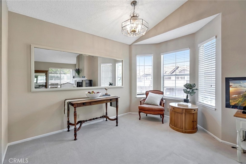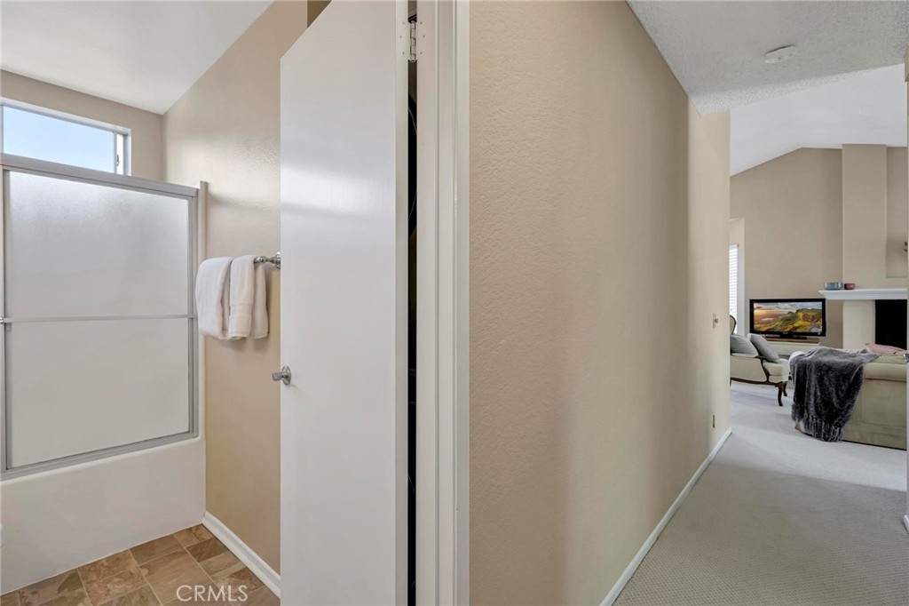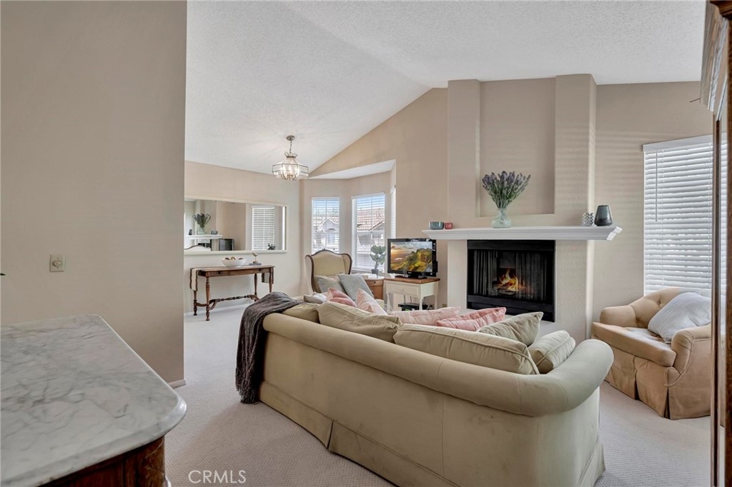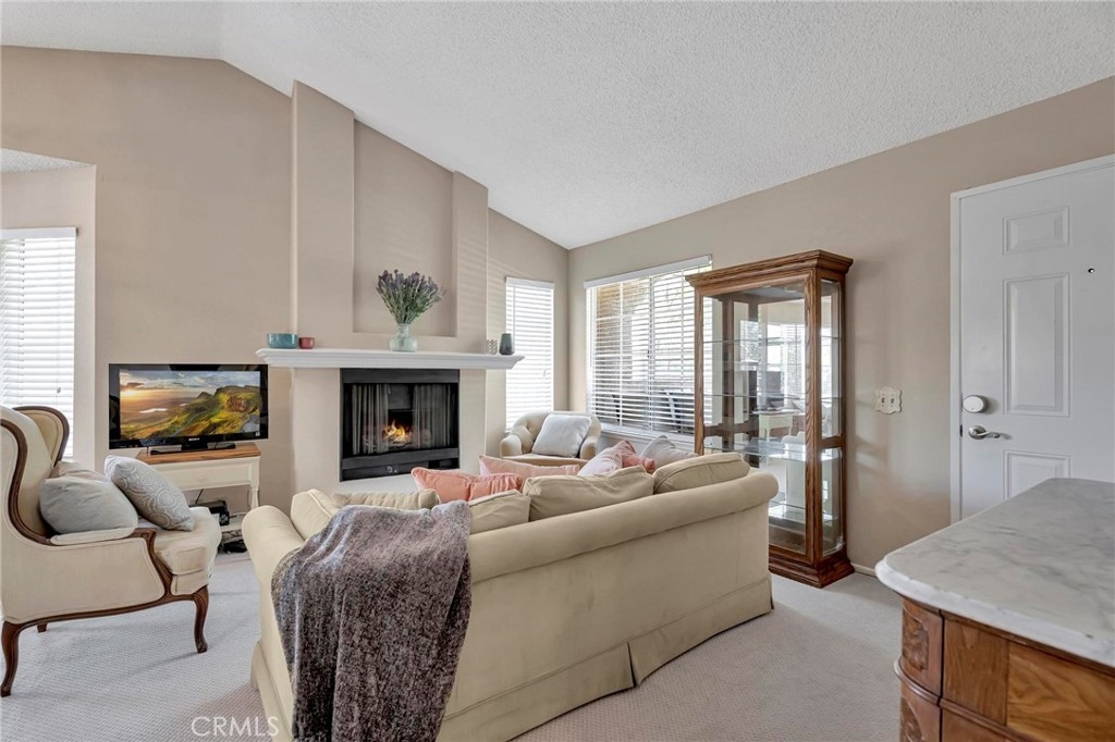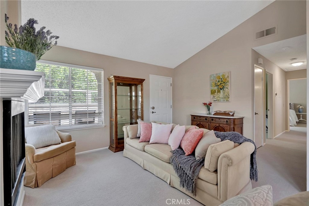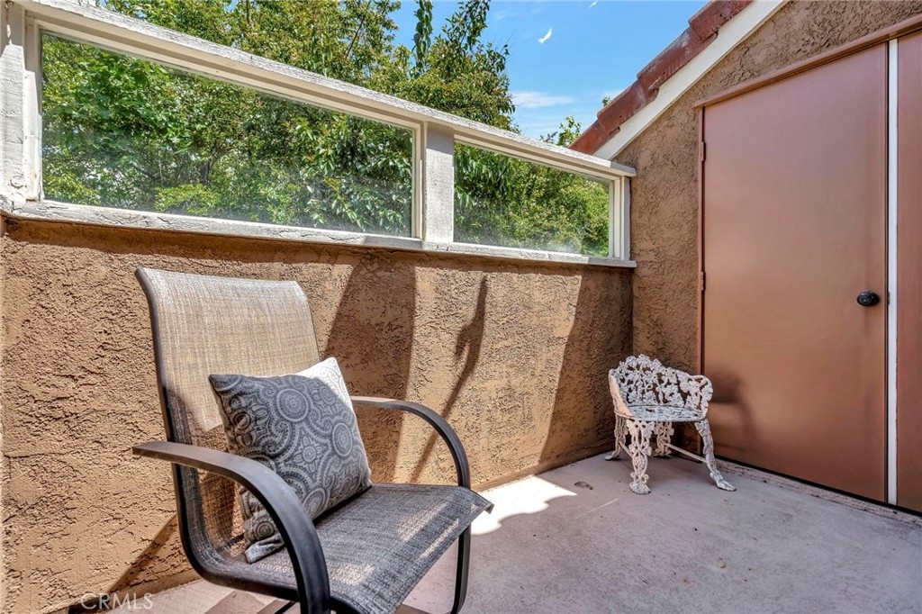 Located in beautiful Rancho Santa Margarita, with views to the Saddleback Mountain, nestled amongst the greenbelt trees, this fabulous end-unit, carriage home is in the prestigious Mission Courts community. Adjoining just one home, with no one below, sitting over the garages, this private location will delight you. The living room and dining area have natural light cascading through the many windows all day making this home light and bright. The volume ceiling enhances the spacious open feeling. The fireplace adds to the ambiance! The kitchen offers good storage with plenty of cabinets, the stainless-steel refrigerator, and new (2021) electric range! The master bedroom is spacious and bright with vaulted ceilings and a sliding door opening to the balcony and an enclosed storage area. The adjoining dressing area with two closets and bathroom with a large tub/shower compliment the master bedroom. The secondary bedroom is perfect in size and is directly across from the second bathroom. The stackable washer and dryer is in this bathroom! Freshly painted, new carpet throughout, new vinyl flooring in the bathrooms, this home is ready for you to move into! The one car detached garage is directly below the home and a space parking permit is included. Enjoy the pool and spa within Mission Courts or walk to the Beach Club at Rancho Santa Margarita Lake. The walkability of this location is fabulous - close to shopping, restaurants, and movie theatres. Delight in the one mile walk around the Lake with the various exercise stations or wander on the beautiful paths surrounding nearby O’Neill Park. Living in RSM affords award-winning, blue-ribbon schools, community pools, parks, volleyball, pickleball and tennis courts. Race to this wonderful home and make it your own!