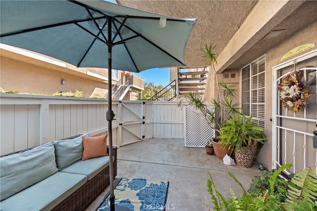 Beautiful single-level condo near the Rancho Santa Margarita Lake! Featuring upgrades throughout, this 1 bedroom 1 bath condo offers a detached 1 car garage, and a parking pass for guests. One of the nicer features is a large front patio with privacy and fencing high enough for pets to be safe. Inside the home offers upgraded wood laminate flooring, neutral paint, paid water reverse osmosis system, and granite countertops in both the kitchen and bathroom! No Mello Roos and access to the Rancho Santa Margarita beach club, lake, tennis/pickle ball courts/pools, and much more! Your association dues also cover your condo insurance for the building, trash, common ground landscaping, and security. Hurry before its too late!