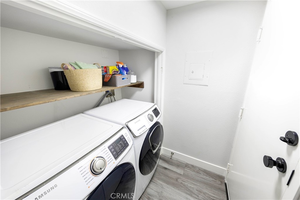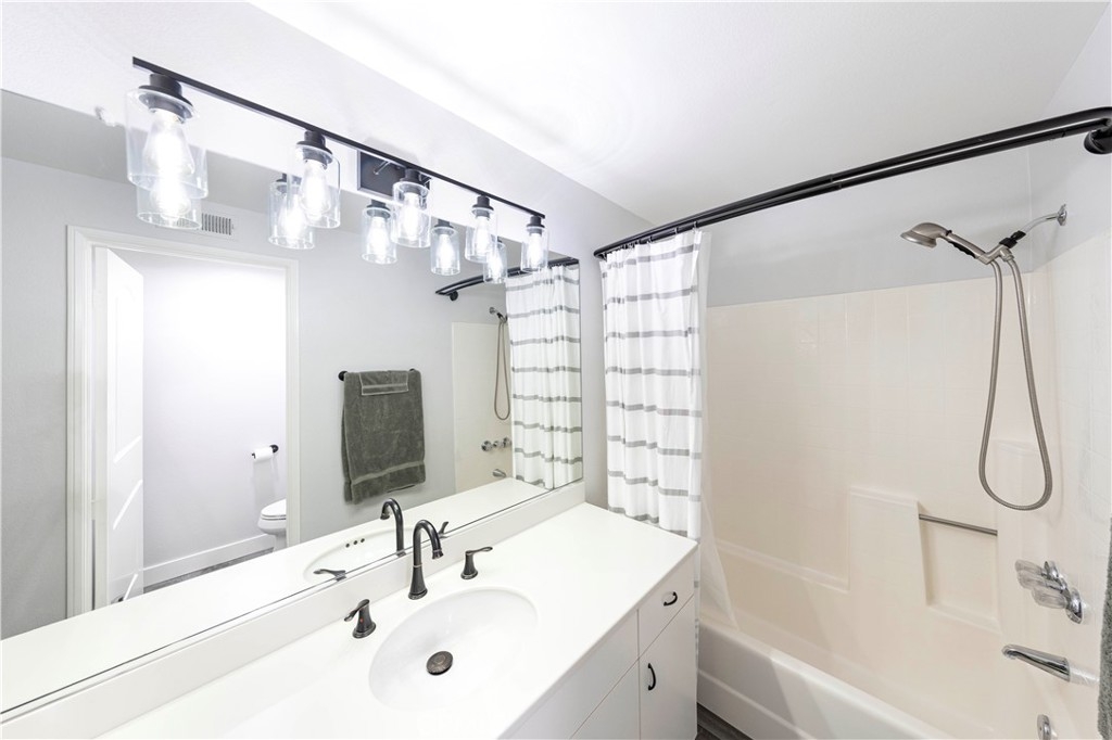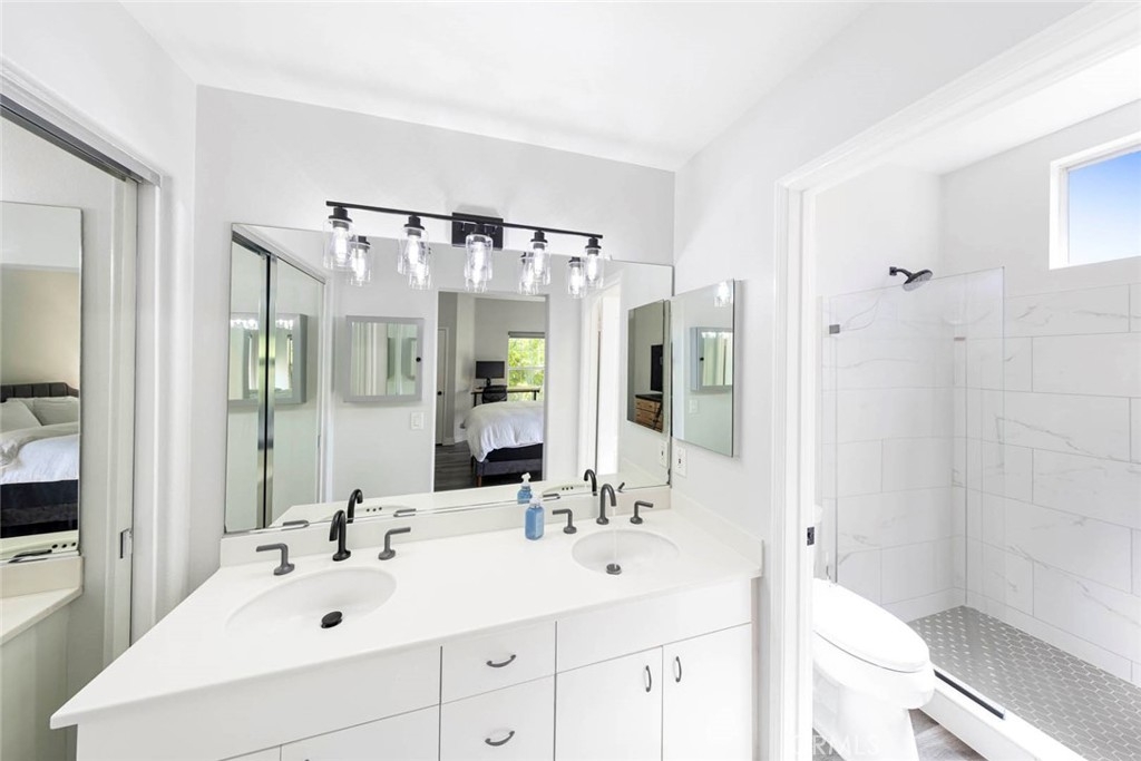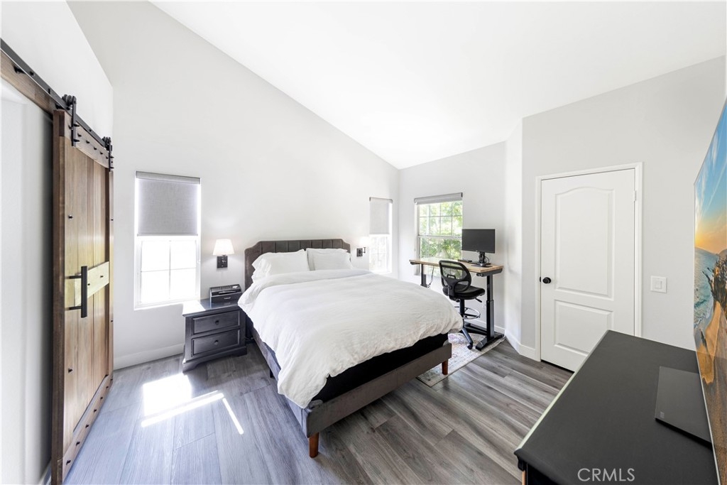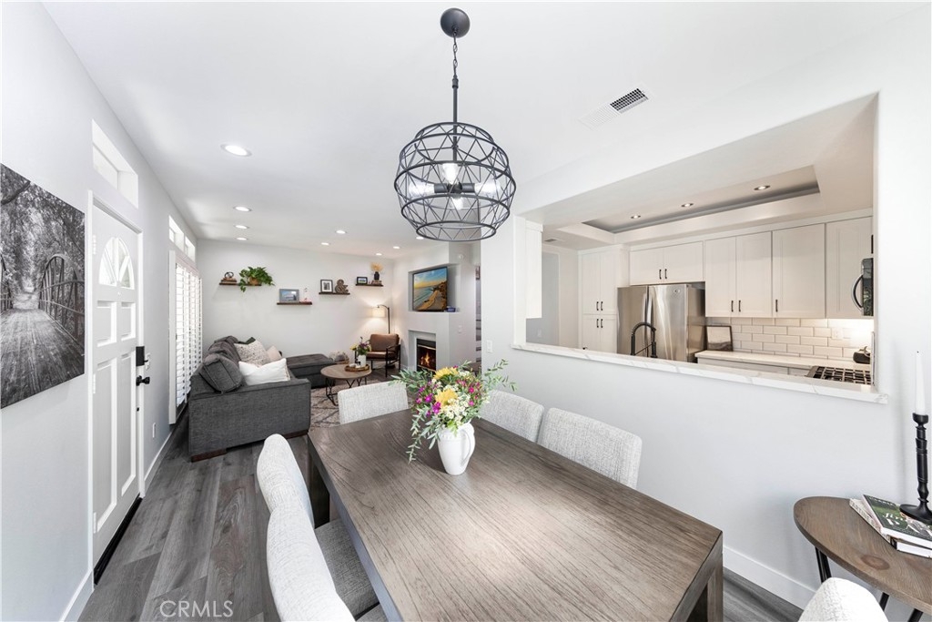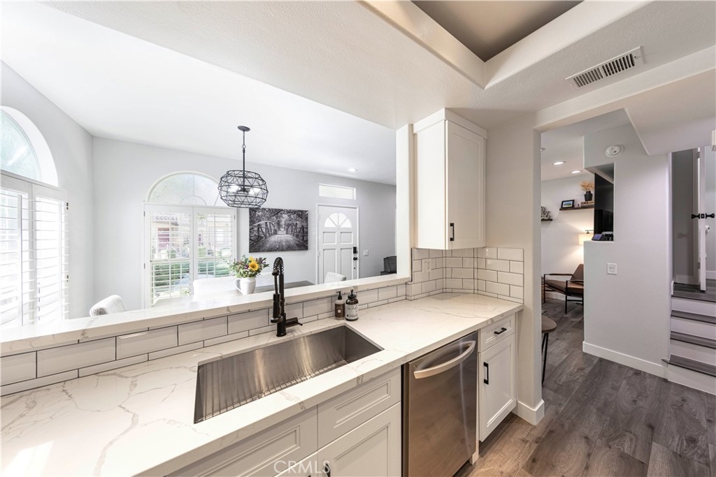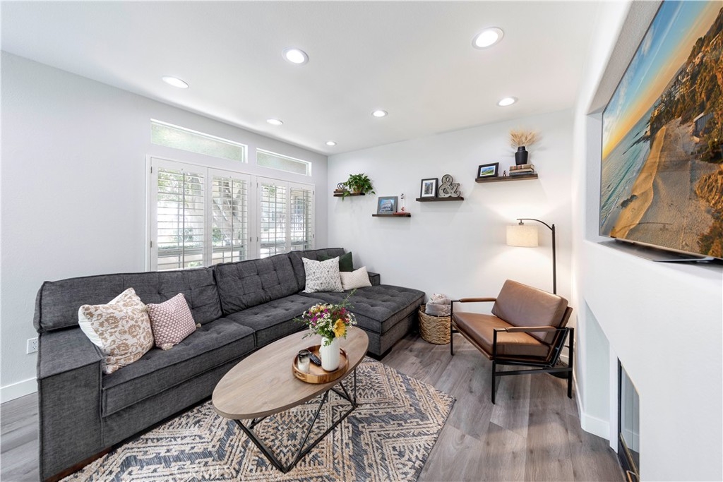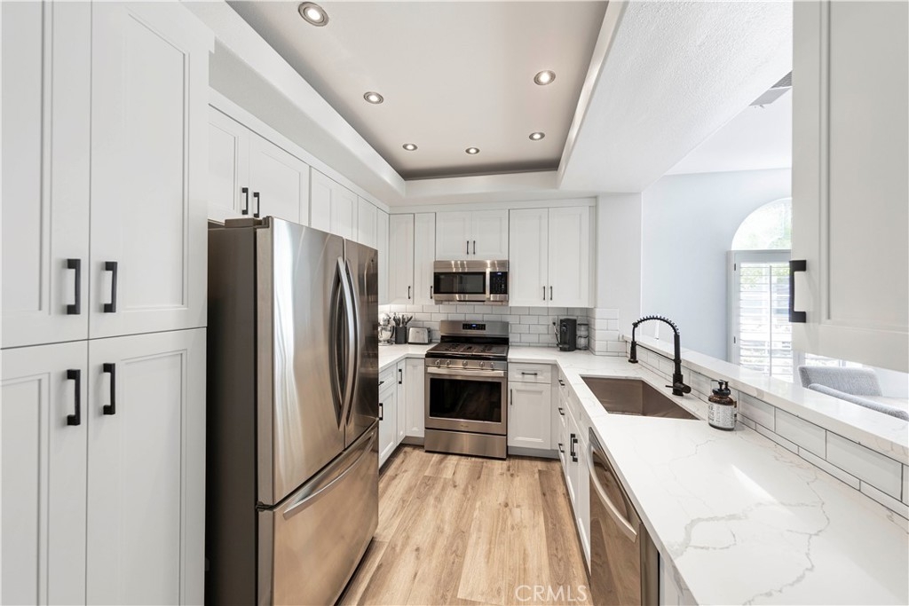 Beautifully upgraded 2-bedroom, 2.5-bath townhome in the highly sought-after Montana Del Lago community. This home features two primary bedrooms with vaulted ceilings, including one with an upgraded shower and a stylish barn door. The remodeled kitchen includes new cabinets, quartz countertops, a stylish backsplash, a barn sink, and newer stainless steel appliances. The living room is highlighted by a cozy fireplace, perfect for unwinding. Other upgrades include luxury vinyl flooring with upgraded baseboards, recessed lighting, plantation shutters, window blinds, new faucets, a screened front door, a new AC condenser, and new toilets. Enjoy the private patio overlooking the courtyard, an attached 2-car garage, and the privacy of no neighbors above or below. Conveniently located near the Rancho Santa Margarita lake, beach club, community pool, spa, restaurants, and shopping.