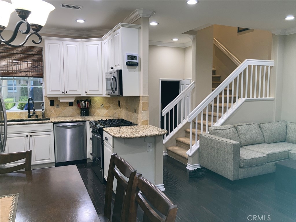 This French Cottage style townhouse, each unit offers an individualistic style, in a gated community. 2 master bedroom, 2.5 bathrooms, the bathrooms are located within the bedroom with a half-bath downstairs. The upgrade kitchen cabinets and granite counters and roll out shelving would make a master chef envious. Eating area offers a builtin bench with storage. The backyard offers a cozy tranquil setting among the hummingbirds and bbq area. Upgrades consist of; laminate wood flooring, crown molding, upgraded kitchen appliance, upgraded kitchen cabinets, plantation shutters, upgraded ceiling fan, garage floor epoxy, extensive garage storage, secondary murphy bed in secondary bedroom. For the outdoors enthusiast, just outside the back gate offers a multitude of bike, hiking and running trails, Tijeras Creek Golf Club, access to 2 community pools and spas, the other off of Meandering Trail.
