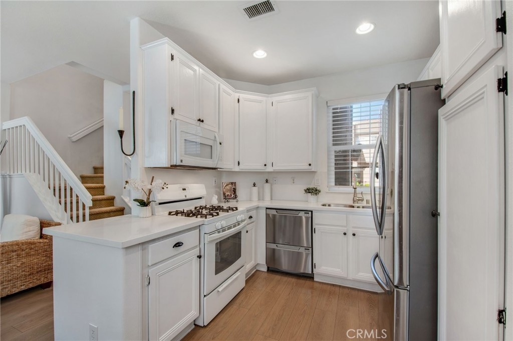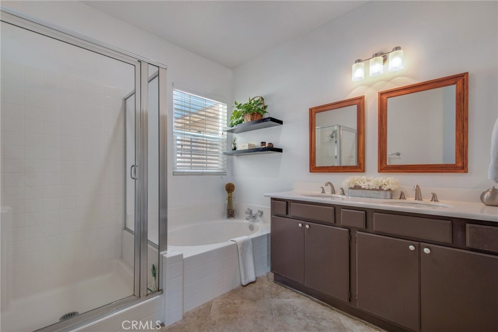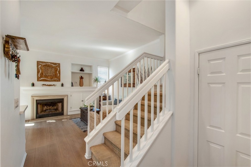 This home is simply perfection. Don't miss the opportunity to live in the wonderful, gated community of Seacountry! You will fall in love with the French Country charm and cobblestone streets. This beautiful home features an open floor plan and a light and bright kitchen with sought after quartz counters plus new dishwasher. The kitchen is open to the dining room, with large sliding glass doors out to an oversized covered patio. New windows in the kitchen, master bedroom & bathroom. Get ready to entertain family and friends! The family room has a cozy fireplace & custom built-ins. You will appreciate the crown molding & popular wide plank luxury laminate flooring in a neutral color. Upstairs you will find dual primary suites - each with their own remodeled ensuite bathroom with quartz counters. One with a spacious, walk-in closet and huge master bathroom with double sinks, a soaking tub and separate shower. This home also offers direct access to a spacious two car garage, with plenty of storage & has been repiped. The community includes a short walk to the Seacountry pool/spa, park, picnic area, children's park, and access to local hiking trails. Residents may also utilize the Las Flores Jr. Olympic size resort swimming pool, Oak Tree Park and the Starlight Ridge Park with tot lot, tennis courts (pickle ball courts coming soon) and water park. Walk to all three Blue Ribbon schools including Las Flores Elementary, Middle School and Tesoro High School. With $40k in updates and HVAC tune-up. Prime location and only a few minutes to the 5 fwy and 241 toll road. All your favorite shops are nearby and lots of restaurants to choose from for a night out. This meticulously maintained home is ready to move in. Las Flores is Orange County's best kept secret.