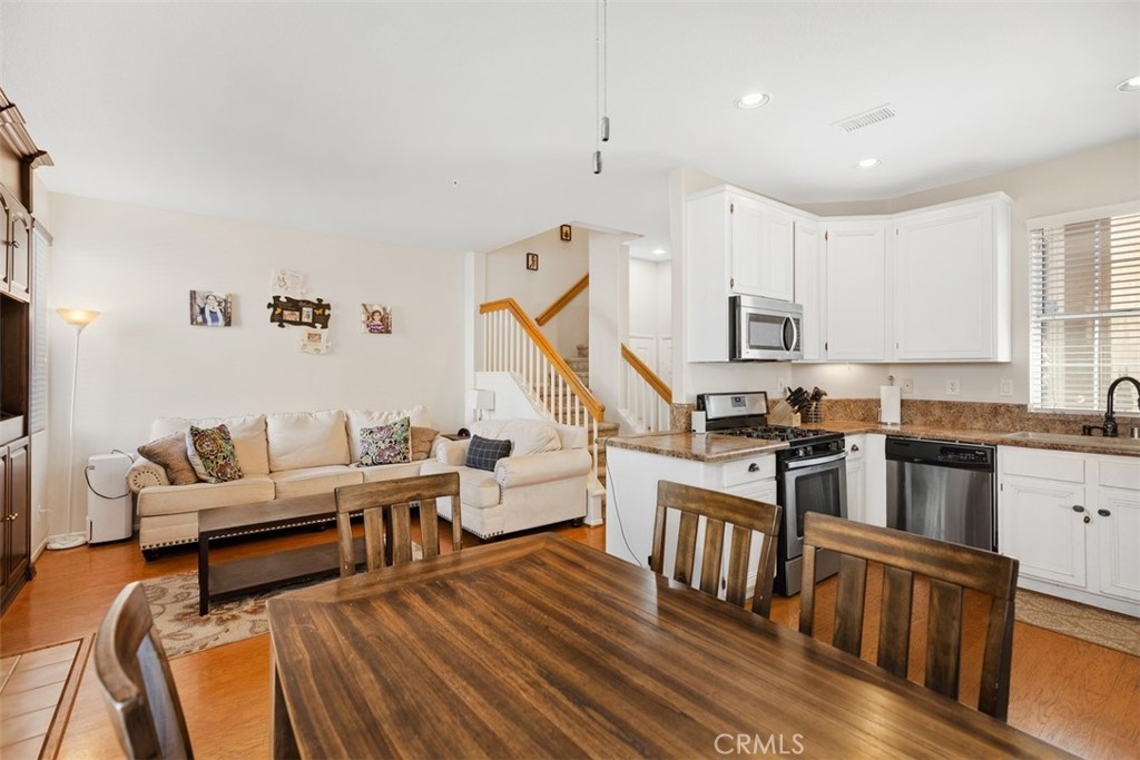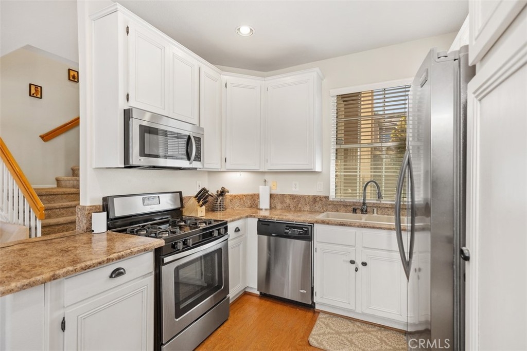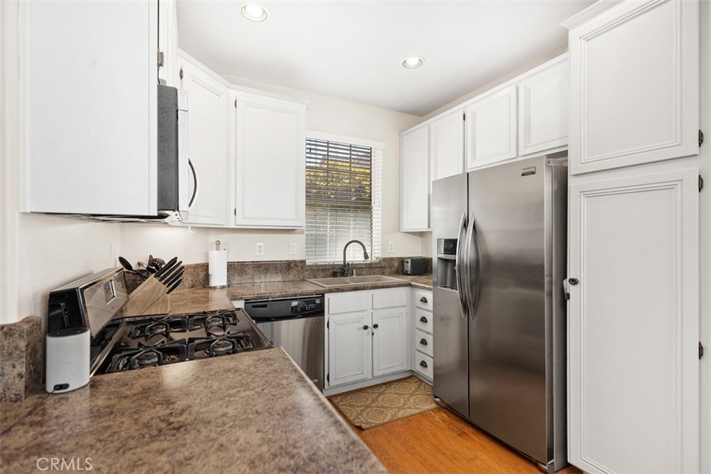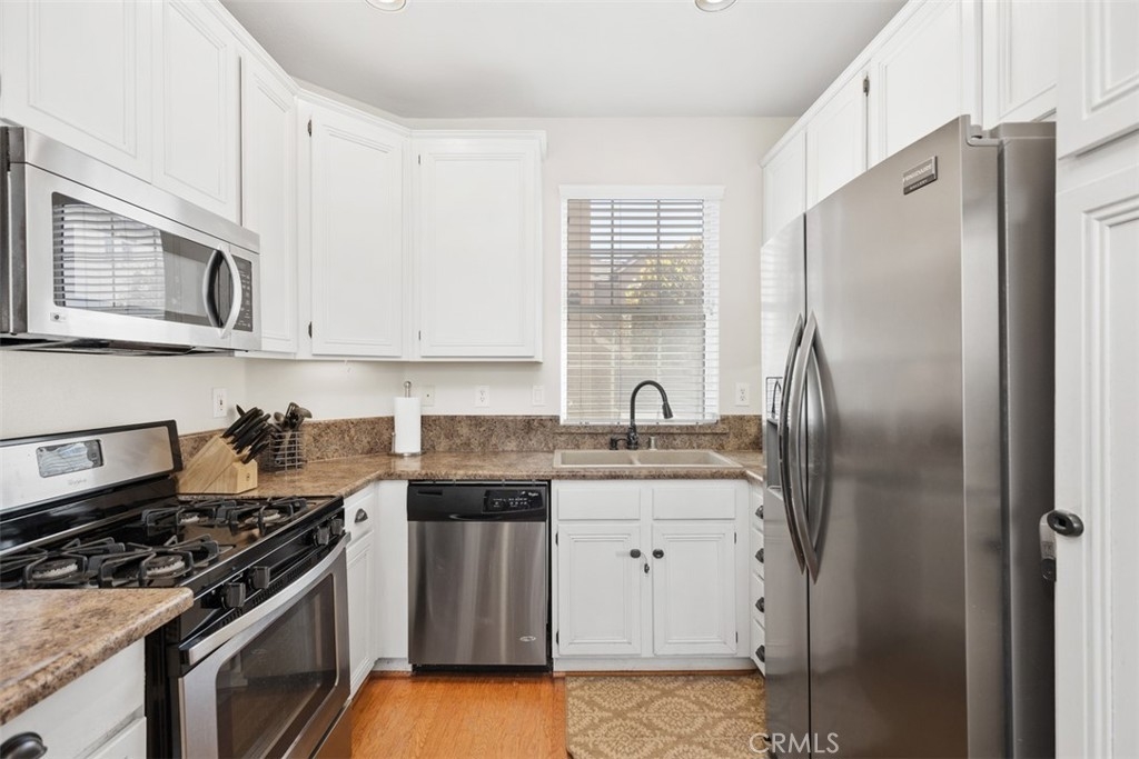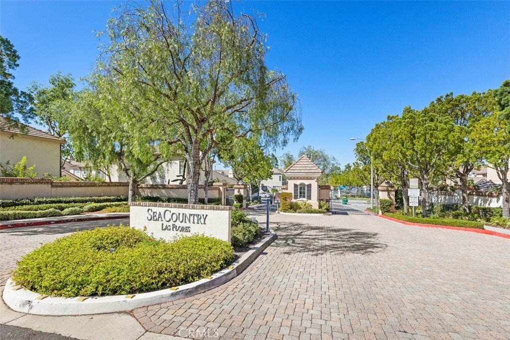 Welcome home to this beautiful two-story townhome in the private-gated Las Flores community of SeaCountry. With its convenient location, generous layout including dual primary bedrooms, plus excellent in-home and community amenities, this property is a lifestyle waiting for you to experience! As you enter the home, you'll immediately notice the rich wood floors that grace the main level, giving the space an inviting warmth. The floor plan flows seamlessly from the spacious living room, adorned with a cozy fireplace and custom built-in entertainment center, into an adjoining dining area perfect for both casual meals and formal gatherings. The heart of the home, the large kitchen showcases upgraded countertops and newer stainless steel appliances. Head upstairs to find dual primary bedrooms, each offering unique comforts. The primary suite not only has a walk-in closet but also a luxurious ensuite bathroom with dual sinks, separate shower, and a tub where you’ll love to unwind. For your convenience, the laundry area is thoughtfully placed upstairs between the bedrooms. No detail has been overlooked in this home. All new PEX piping has been installed throughout, and the bathroom and kitchen fixtures have a refined bronze finish. The property also offers a direct-access 2-car garage. Move outside to enjoy the sunny brick paver patio in back, an ideal spot to soak up the California sun or enjoy al fresco dining, with surrounding privacy walls to enhance your sense of seclusion. The community offers a variety of amenities, from HOA pools and a spa, to a sprinkle park and tot park. Nature enthusiasts will appreciate direct access to O'Neill Park for hiking and exploration. Location is everything, and this property has it all. It's in close proximity to top-rated Las Flores K-8 and Tesoro High School. You'll also find Tijeras Creek Golf Course, shops, dining options, and recreational parks just a short drive away. Freeways and toll roads are easily accessible, making your commute hassle-free. Don't miss the opportunity to make this your dream home!