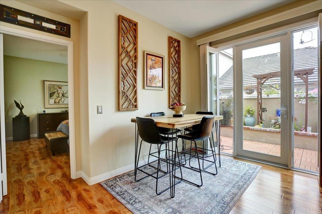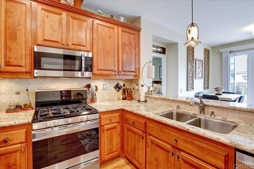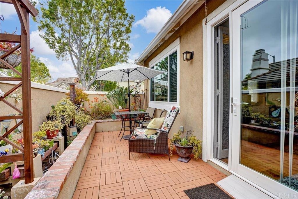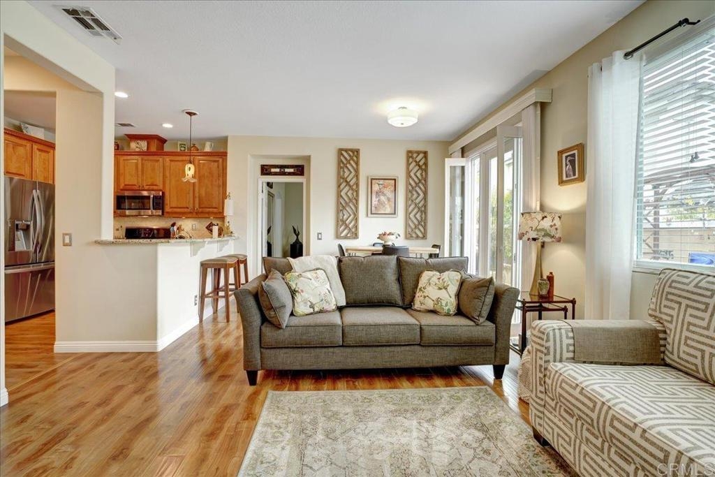 Cottage living in the Rancho Santa Margarita gated community of Seacountry invites you in to this single story, 3 bedroom, 2 full bath, upgraded and immaculate home. The home has hardwood and tile throughout, in home laundry, full 2 car garage, private outdoor yard, warm and inviting master suite with recent and fully remodeled master bathroom with dual sinks, tile and quartz countertops. There is ample closet and storage space throughout as well as granite kitchen countertop, gas range, SS appliances, French door refrigerator. Home has been fully repiped with Pex. The 3rd optional BR is currently an office and some choose to use as formal dining room. Additional guest BR next to full 2nd bathroom. The light and bright living area off the outdoor area boasts a fire rock gas fireplace for extra coziness. AC 2018 and Water heater 2015 This house is an absolute must see and immaculate is an understatement!