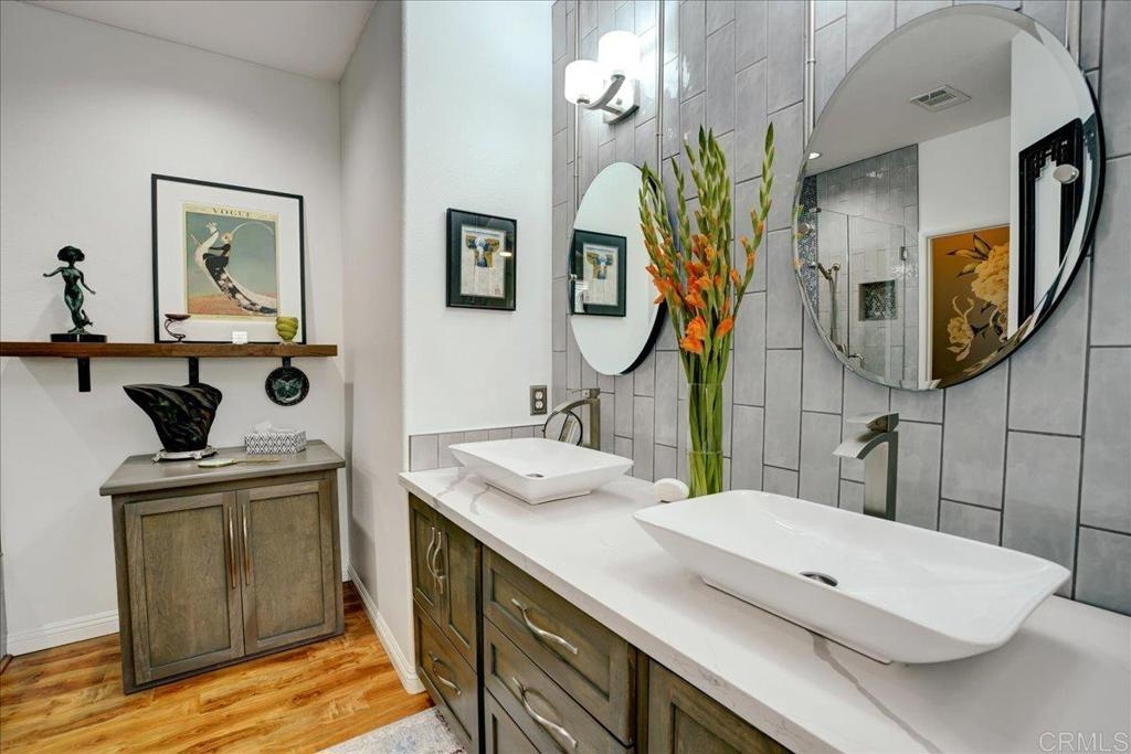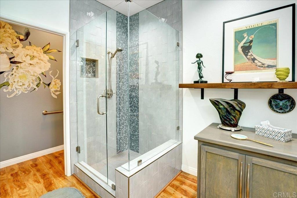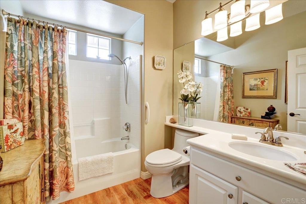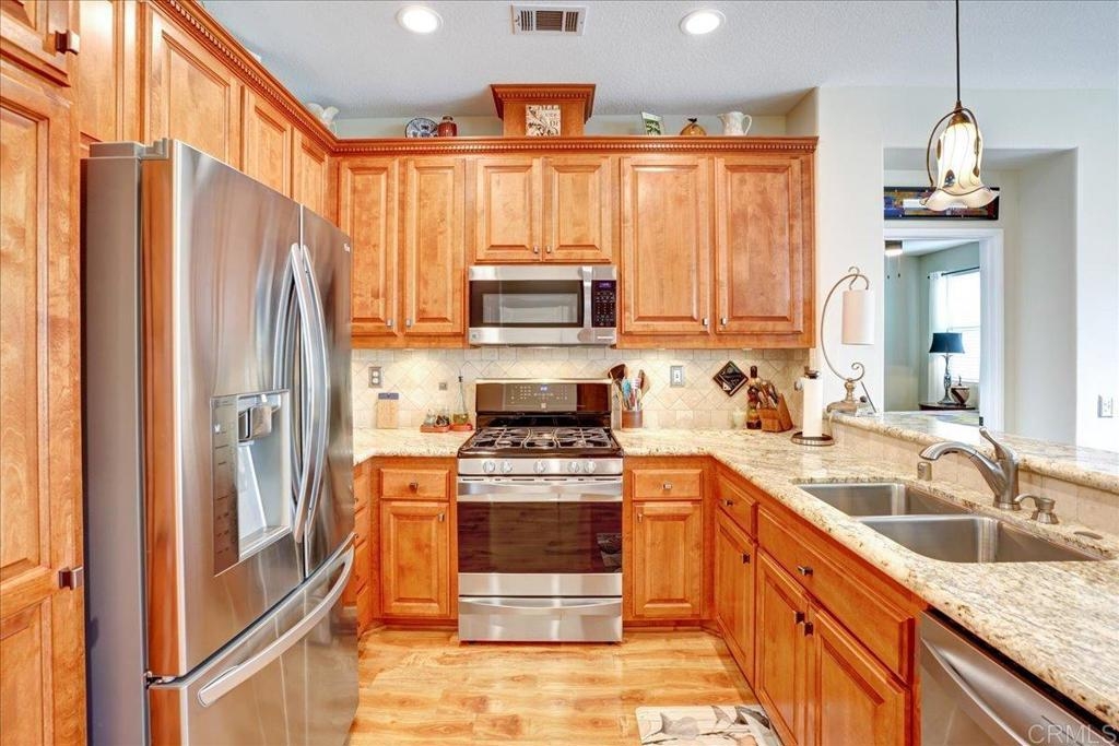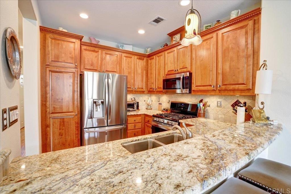 Cottage living in the Rancho Santa Margarita gated community of Seacountry invites you in to this single story, 3 bedroom, 2 full bath, upgraded and immaculate home. The home has hardwood and tile throughout, in home laundry, full 2 car garage, private outdoor yard, warm and inviting master suite with recent and fully remodeled master bathroom with dual sinks, tile and quartz countertops. There is ample closet and storage space throughout as well as granite kitchen countertop, gas range, SS appliances, French door refrigerator. Home has been fully repiped with Pex. The 3rd optional BR is currently an office and some choose to use as formal dining room. Additional guest BR next to full 2nd bathroom. The light and bright living area off the outdoor area boasts a fire rock gas fireplace for extra coziness. AC 2018 and Water heater 2015 This house is an absolute must see and immaculate is an understatement!