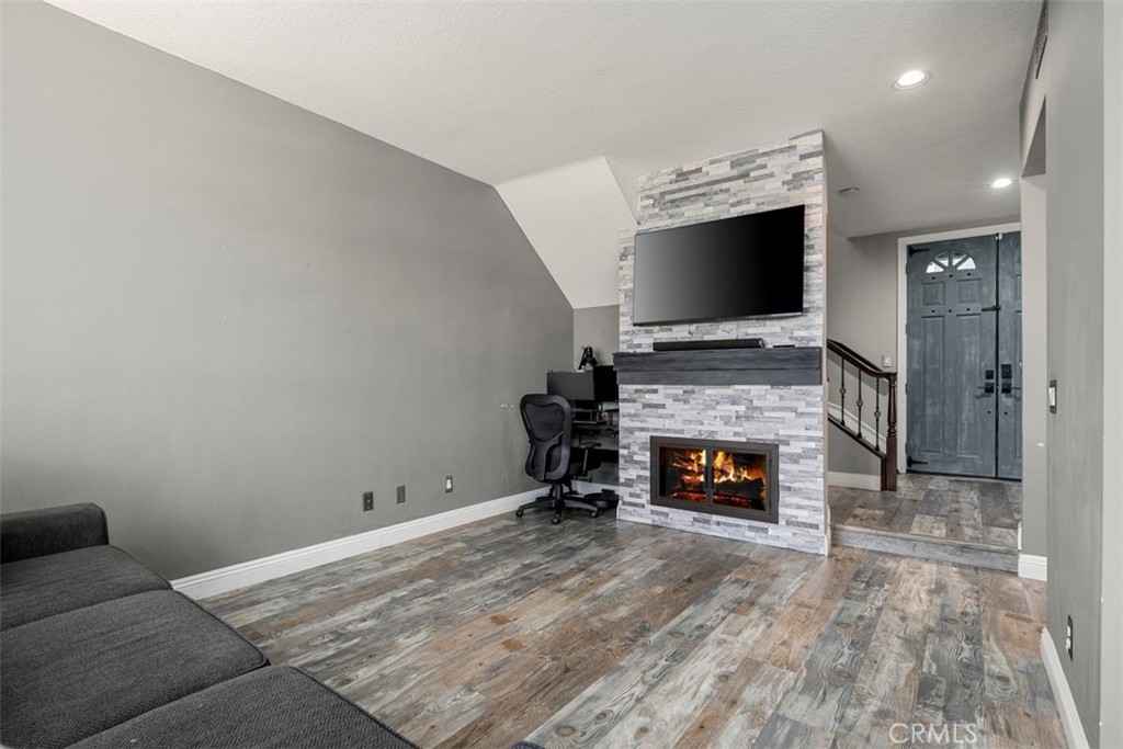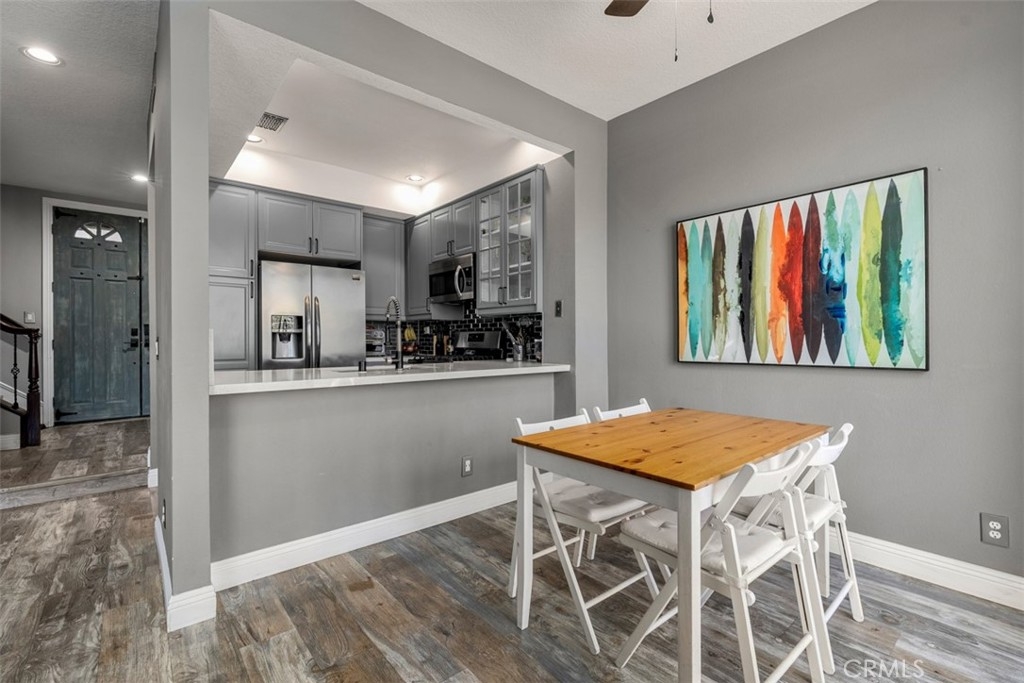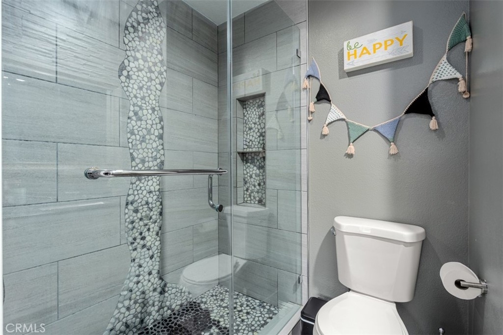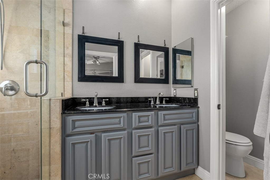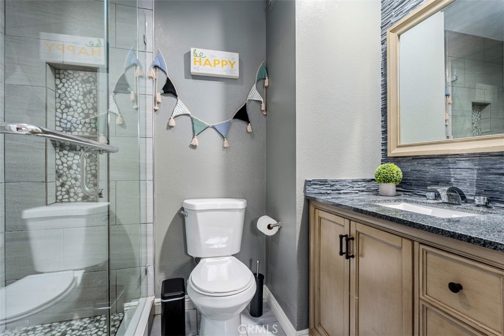 Welcome to the beautiful and highly desirable community of Serabrisa! This impeccable 2 bedroom, 2 1/2 half bath, two-story condo features an elegant double door entry, an open floor plan, vaulted ceilings, and luxury vinyl plank flooring. The cozy stacked stone fireplace adds both warmth and ambiance while the large, abundant windows fill the home with beautiful natural light. The tastefully remodeled kitchen boasts Quartz countertops, modern light grey cabinetry, newer stainless-steel appliances, a beautiful backsplash, a farmhouse sink, and a breakfast bar perfect for enjoying a morning coffee. Upstairs you’ll find 2 primary suites! The larger suite features a renovated bathroom with dual sinks, Quartz counters, a walk-in tiled shower, a beautiful barn door, and large dual paned windows. The secondary bedroom features a large vanity with lots of storage, Quartz counters, and a custom tile + stone rain shower. Both bedrooms have huge closets with built-in storage. The large patio just off the dining room is the perfect space for gatherings and BBQs! This condo has both a one-car detached garage with a washer/dryer and built-in storage + attic space, as well as an additional assigned parking space. The furnace and AC condenser are new along with an upgraded smart nest thermostat, the community has been re-piped with PEX, and the fire insurance is covered by the HOA!!! Across the street from Arroyo Vista Elementary, Arroyo Vista Park, and very close to Tijeras Creek golf course make this a perfect location to enjoy all RSM amenities such as the Lago Santa Margarita beach club, multiple pools, parks and playgrounds, sports courts, hiking and biking trails, and community events. This is your chance to live near award-winning schools, fantastic shopping and dining while living in the #1 ranked safest city in California! Welcome home!