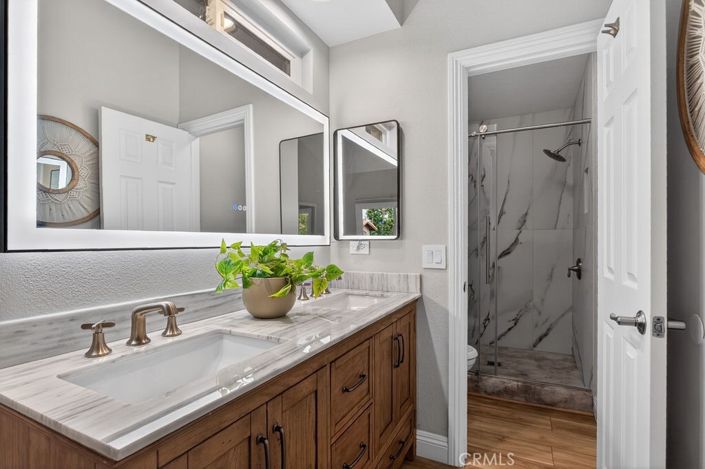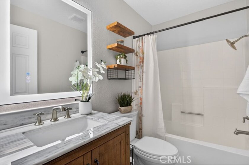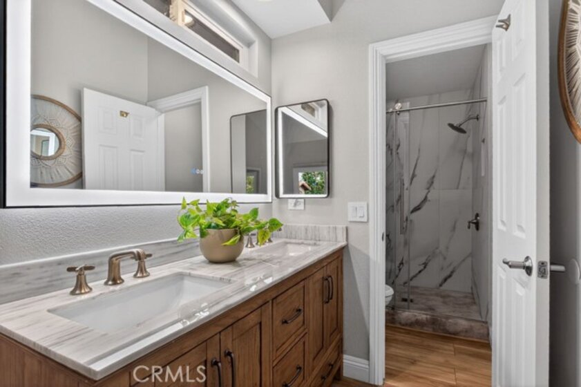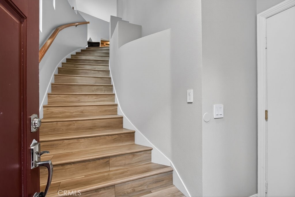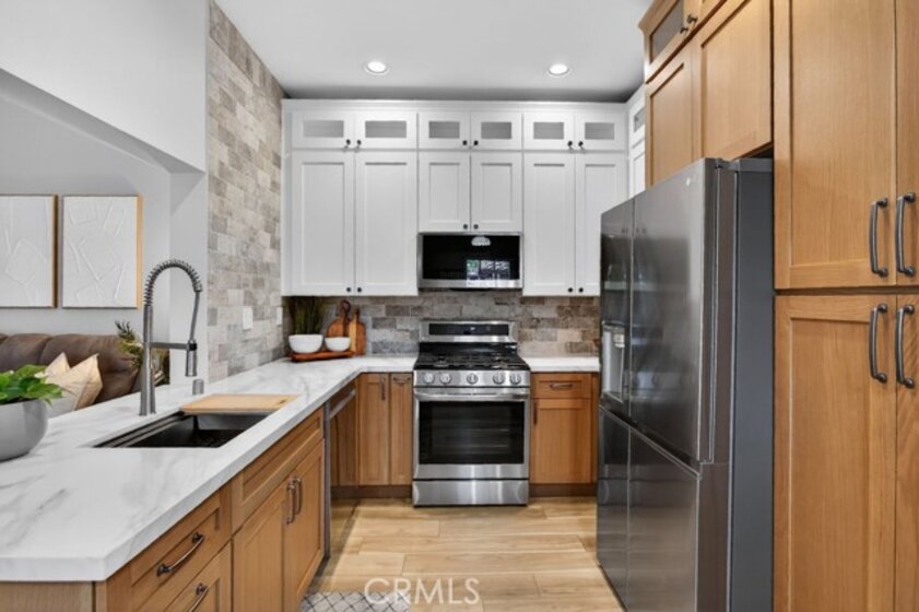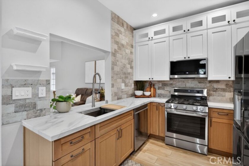 Welcome to 93 Pasto Rico in Rancho Santa Margarita, a beautifully reimagined carriage-style home that perfectly blends modern design with turnkey convenience. This fully renovated 2-bedroom, 2-bathroom residence features an open and inviting layout with an attached 1-car garage plus additional assigned parking space #146, and no one above or below, offering the feel of a private retreat. Inside, the home showcases a brand-new interior with new dual-pane windows and sliding doors that bring in abundant natural light, newer flooring throughout, fresh designer paint, and updated light fixtures that create a clean, contemporary aesthetic. The stunning custom kitchen serves as the centerpiece of the home, complete with quartz countertops, new soft-close cabinetry, sleek hardware, stainless steel appliances, and modern finishes ideal for both everyday living and entertaining. Both bathrooms have been thoughtfully upgraded with quartz surfaces, new vanities, new lighted mirrors, and beautifully finished updated showers, adding a touch of luxury throughout. The primary bedroom has an ensuite renovated bathroom, walk in closet, and private balcony. Every detail has been carefully curated to deliver a gorgeous, move-in-ready home that truly feels brand new. Located in one of Orange County’s most desirable communities, this home offers a low-maintenance lifestyle with close proximity to parks, shopping, dining, and top-rated schools—making it an exceptional opportunity you won’t want to miss. The Serabrisa and RSM HOAs offer several amenities: pool, spa, tennis courts, pickleball courts, skate park, dog park, RSM Lake, RSM Lagoon, and so much more.