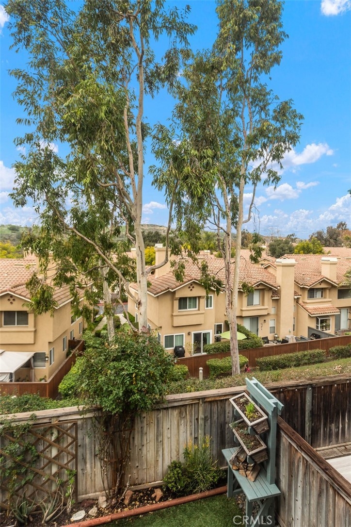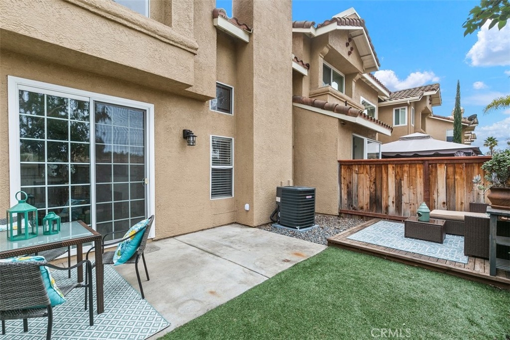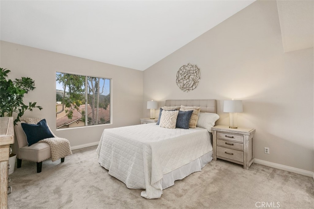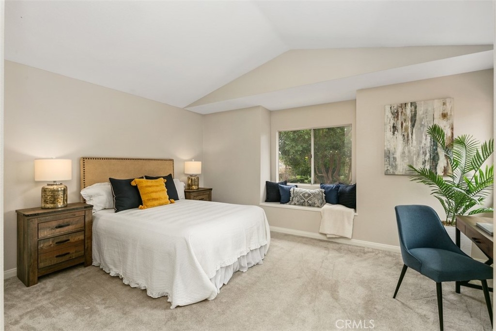 YOU HAVE TO SEE IT TO BELIEVE IT! This home adjacent to Tierras Creek Golf Course has so much to offer. Lots of light pours in through the many windows on the main floor making it light & bright with low maintenance tile & a beautiful ornate fireplace in the large living room to warm chilly evenings. Several of the windows have custom beveled stained-glass adding to the privacy & beauty found here. The vaulted ceiling contributes to the open feeling of this lovely home. The kitchen has updated granite counters with stainless steel appliances & lots of storage. Indoor laundry room plus updated powder room finish off the main floor. The stairs have unique wrought iron railings. The stairs, hall & both bedrooms are carpeted. Each bedroom has its own en-suite bathroom. The primary suite has a vaulted ceiling, a view, a skylight & a completely updated bathroom with dual closets & a custom remodeled walk-in shower. The 2nd bedroom has a vaulted ceiling, a window seat & en-suite bathroom with tub. In the backyard there is a patio & separate wood deck with artificial turf creating lots of room to entertain. The 2-car garage has direct-access & PLENTY of storage. This lot is elevated which provides much desired privacy. A/C was replaced 2022. There is a nest thermostat. Home is freshly painted throughout the interior. The Sierra Verde community has its own pool & spa just a short walk away. One of the bonuses of living here is that you are also a member of the SAMLARC master association which allows you access to all of the amenities they have to offer like pools, the beach club, & tennis courts to name a few.