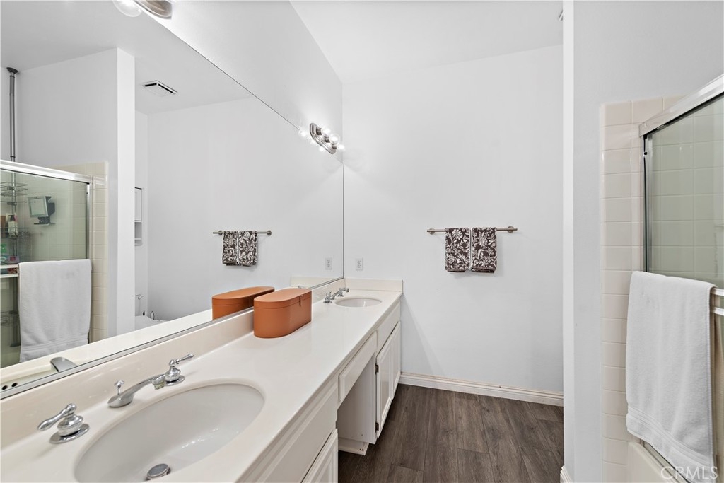 Welcome to beautiful Sierra Verde! This light and bright condo features 2 generously sized bedrooms and bathrooms. As a pet lover’s dream, it offers a safe outside sanctuary with a wraparound balcony on the 2 nd story, to protect your fur babies from predators while they enjoy some fresh air and sunshine. A second balcony off the master bedroom offers views of mature and beautiful foliage while you sip your morning coffee. The newer and well-maintained A/C, HVAC, and water heater will provide security in the knowledge that an unexpected repair bill won’t be looming over your head. Enjoy direct access to your enormous two car garage with TONS of storage space, and a long driveway for parking additional vehicles, or for convenient guest parking. Luxury vinyl flooring and designer interior paint offer a lovely, clean canvas, ready for you to make your own. The kitchen includes appliances such as a newer Samsung refrigerator and newer Samsung stove with gas range. The laundry room includes newer LG washer and dryer with large capacity for bedding and water saving technology. Take a brief walk down to the community pool, or enjoy any number of pools, tennis courts, parks, and other perks of SAMLARC living. Nature enthusiasts will love the proximity to hiking trails right across the street, and golfers can walk to Tijeras Creek to play a few holes. With friendly neighbors, serene surroundings, and a great location, 5 Alondra is the perfect place to put down roots.