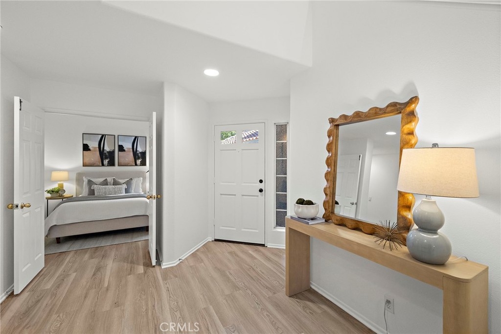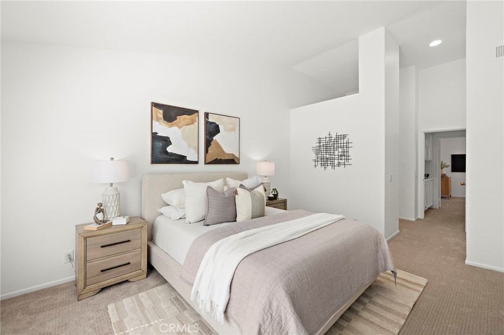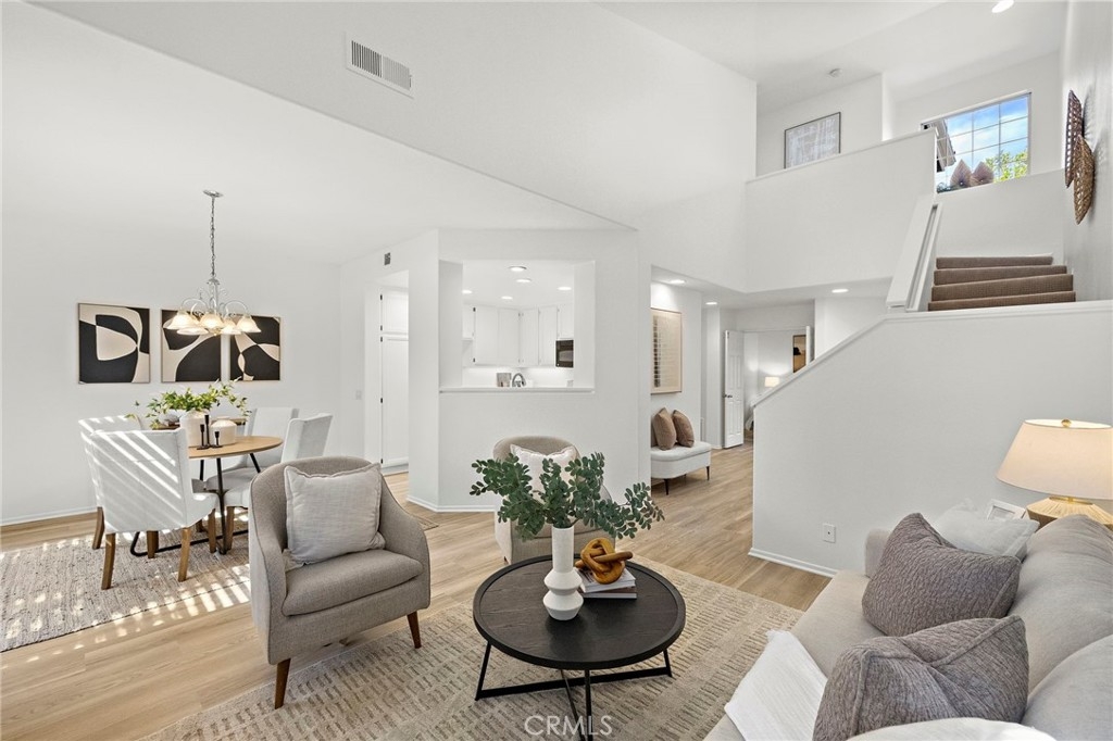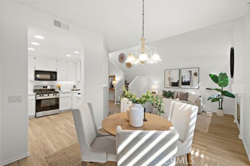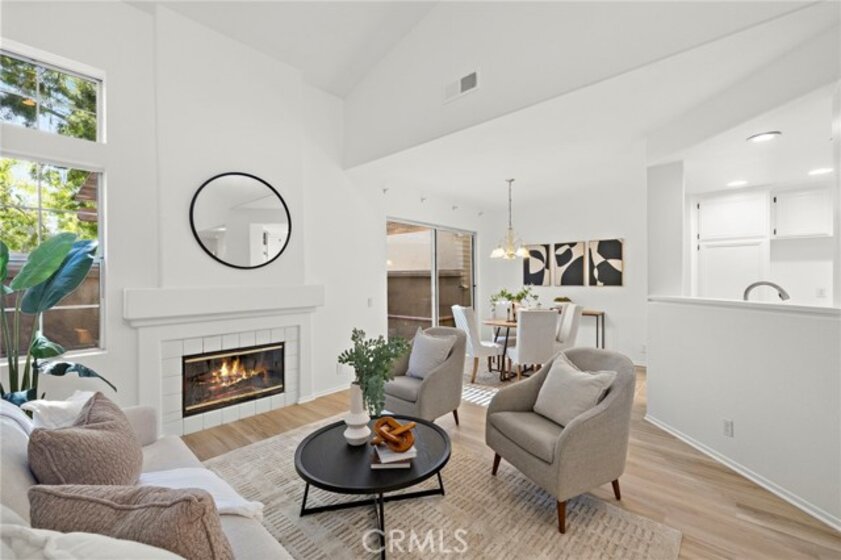 ABSOLUTELY STUNNING! A beautiful just remodeled and updated, move in ready home in the highly sought after Sonoma Court community, 73 Morning Glory blends modern upgrades, natural light, high ceilings and an ideal central location. This interior unit, close to pool, offers approximately 1,422 sq. ft. of thoughtfully designed living space, featuring 3 bedrooms, 3 FULL bathrooms, and a 2 car attached garage with exceptional custom enhancements. The open floor plan is highlighted by soaring approx. 20 foot vaulted ceilings, Luxury Vinyl Flooring, high grade designer low pile carpet, and a spacious and open living room anchored by an inviting fireplace. The remodeled kitchen is standout, showcasing new crisp white quartz counter tops, white lacquered cabinetry, extra side shelves, quartz backsplash, stainless steel deep sink. Eat in dining area with view of private patio. Upstairs, the primary suite offers a bright and open layout, two closets and an ensuite bathroom with dual sinks, a step-in shower, and a private toilet closet. The secondary bedrooms with mirrored wardrobes and a full bath complete the upper level. A private enclosed patio provides the perfect space for outdoor dining, and entertainment. Convenience is built into every detail, Gated entry to front door for added privacy, an indoor laundry, several storage areas, recessed LED lighting, and direct garage access. Residents enjoy access to SAMLARC amenities, including pools, parks, trails, the Beach Club and lagoon, sports courts, and community facilities. The home is ideally located near top rated schools, shopping, dining, and the CA 241 toll road. This property offers comfort, style, and an unbeatable location in Rancho Santa Margarita.