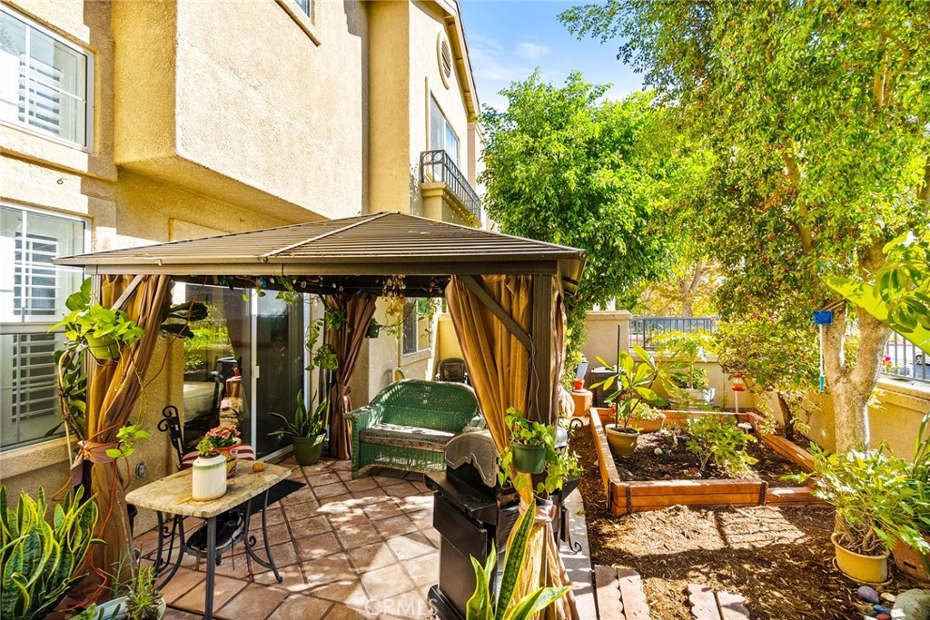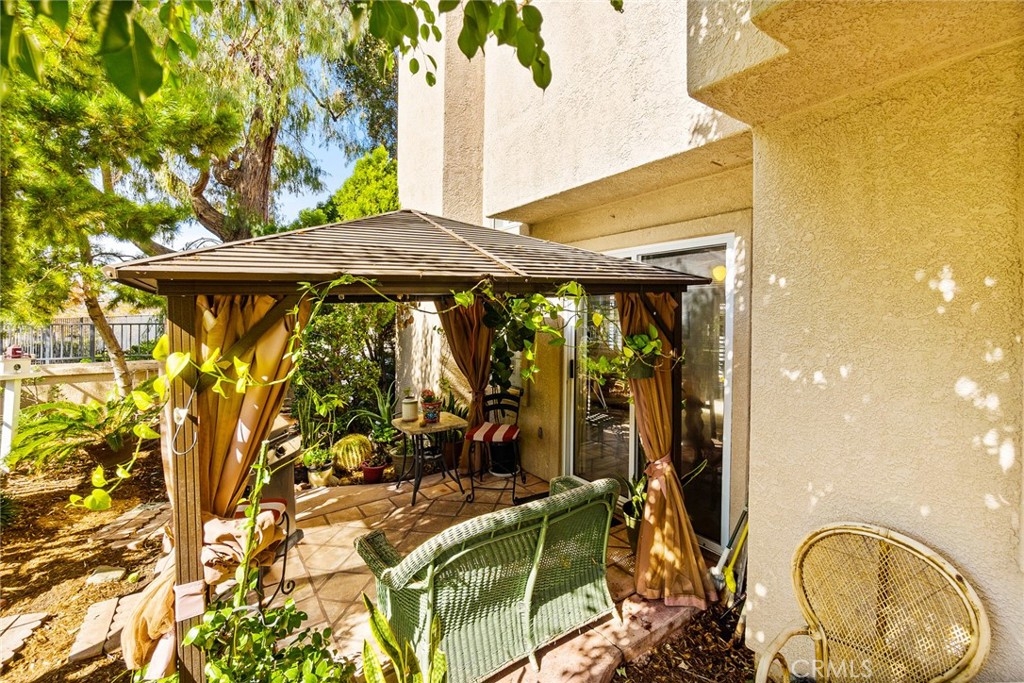 FHA and VA Approved! One of the best locations in community! Your new home is perfectly situated in a prime private location at edge of complex and offers a beautiful secluded backyard sanctuary. This townhouse style property features 2 Bedroom,1.50 baths with vaulted ceilings and high volume windows bringing in plenty of natural light and no one above or below. This is one of the few units with a dedicated 2 car driveway and large 2-car attached garage. The main floor is very open and airy and features a combination dining room and living room area with comfortable gas fireplace. Home upgrades include newer paint throughout, downstairs tile flooring, window shutters and newer A.C. and heating. The bright kitchen features stainless steel appliances, plenty of storage and counter space and recessed lighting and leads to a separate laundry and storage area. There is also a convenient downstairs half bath. The spacious dining room opens to a restful entertainer's backyard complete with gazebo, mature landscaping, fountain and flowerbeds. Upstairs you will find a large main bedroom and secondary guest bedroom featuring vaulted ceilings and mirrored closets with plenty of storage space. The upstairs bath features dual vanities with a large soaking tub and shower. Sonoma Court is very well maintained and offers a beautiful resort like community pool, spa and outdoor party space and backs up to O'neill park with plenty of walking and biking trails. Property is close to all amenities including shopping, restaurants, parks and the 241 Toll road.