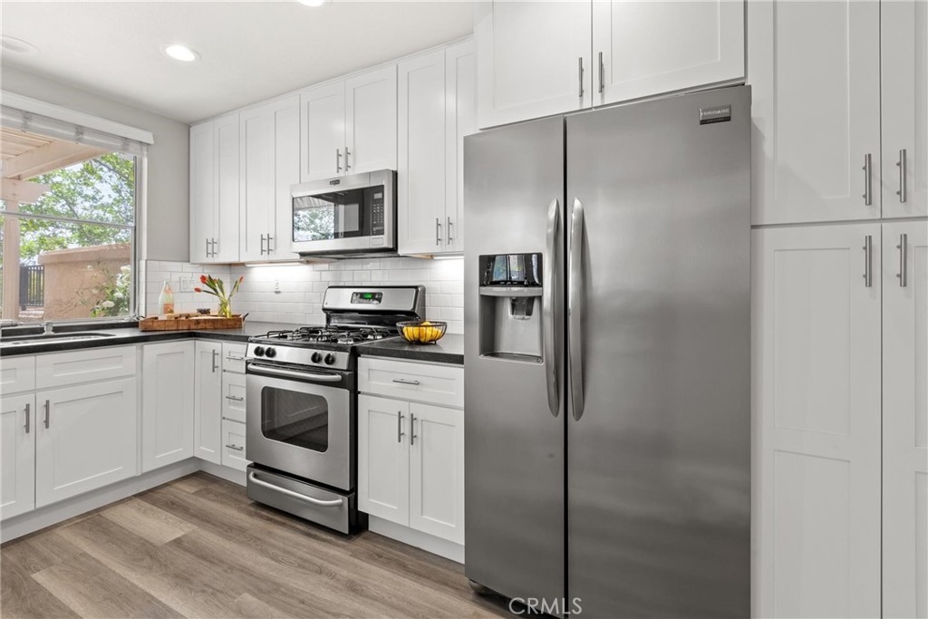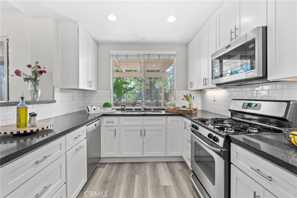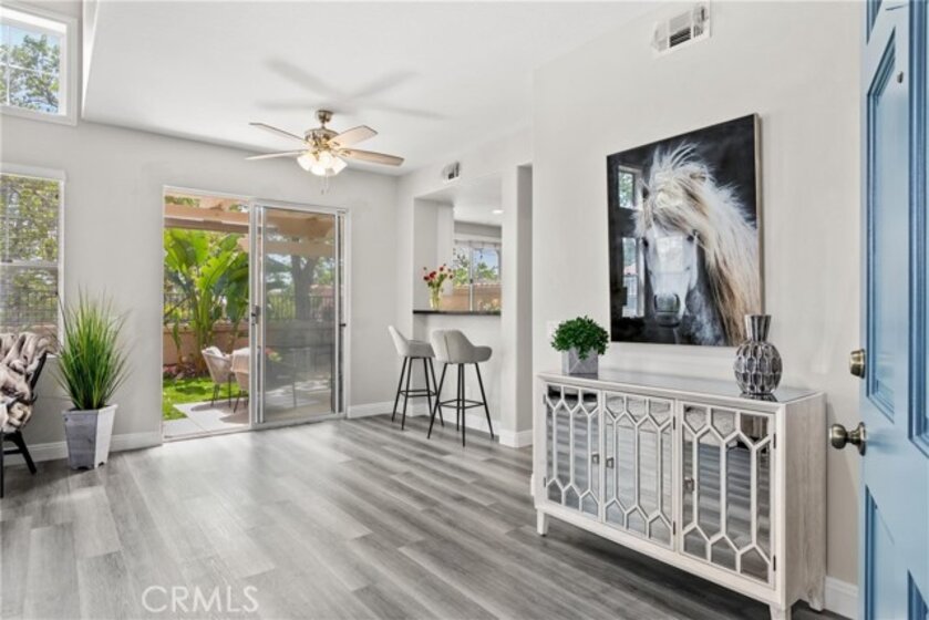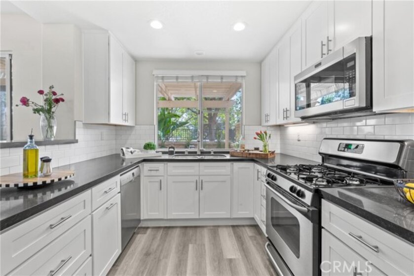 Highly sought after unit in Sonoma Court! This darling 2 bedroom, 1.5 bath, condo is on the ground floor with no one above or below and only attached on one side, so quiet and tons of privacy. This beautifully upgraded home has been remodeled with a brand new kitchen including Stone countertops, subway tile backsplash, Bosch dishwasher, new soft touch cabinetry and an adjacent indoor laundry room. This home is light, bright and airy with volume ceiling in the living room, customized fireplace with display mantle & lots of windows for natural light throughout, beautiful high end vinyl flooring, and custom paint thru out. Both bathrooms have been remodeled with stone countertops, new sinks, cabinetry and flooring. Both bedrooms are upstairs for privacy, with a spacious Master with lots of closet space and mirrored wardrobes and on suite bathroom. Downstairs has powder bath for guests. One of the only units with a large backyard, very unusual for Sonoma Court and is a great place for entertaining and relaxing. And with O'Neil park right behind and access to the Lake, it is a great location with close distance to bike trails, nature trails, parks, pools, sport courts, tennis, shopping, entertainment, restaurants and much more. Sonoma Court also features it's own pool and spa steps away. Low taxes and no Mello Roos. This gorgeous home won't last!!