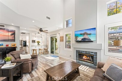 This beautifully upgraded, upper carriage-style end unit with with no one living above or below offers the perfect blend of comfort, privacy, and convenience. The open floor-plan features vaulted ceilings and a cozy fireplace in the living room, which flows effortlessly into the dining area. From there, step out onto a spacious private balcony, ideal for barbecues and outdoor gatherings. The modern kitchen is appointed with quartz countertops, a stylish backsplash, stainless steel appliances, and rich hardwood flooring that continues throughout the main living space. The primary bedroom offers vaulted ceilings, a generous walk-in closet, and a second private balcony. The en-suite bath includes dual sinks located just outside the separate shower and toilet area for added functionality. A secondary bedroom and hall bath with quartz countertops, complete the interior. The home also includes an attached two-car garage for added convenience. Located in the well-maintained Sonoma Court community, residents enjoy access to a resort-style pool, spa, and outdoor entertaining area. The community backs up to O’Neill Regional Park, offering plenty of walking and biking trails. You’re just minutes from shopping, dining, parks, RSM Lake, and the 241 Toll Road. Don’t miss this lovely, move-in-ready home in a prime location!