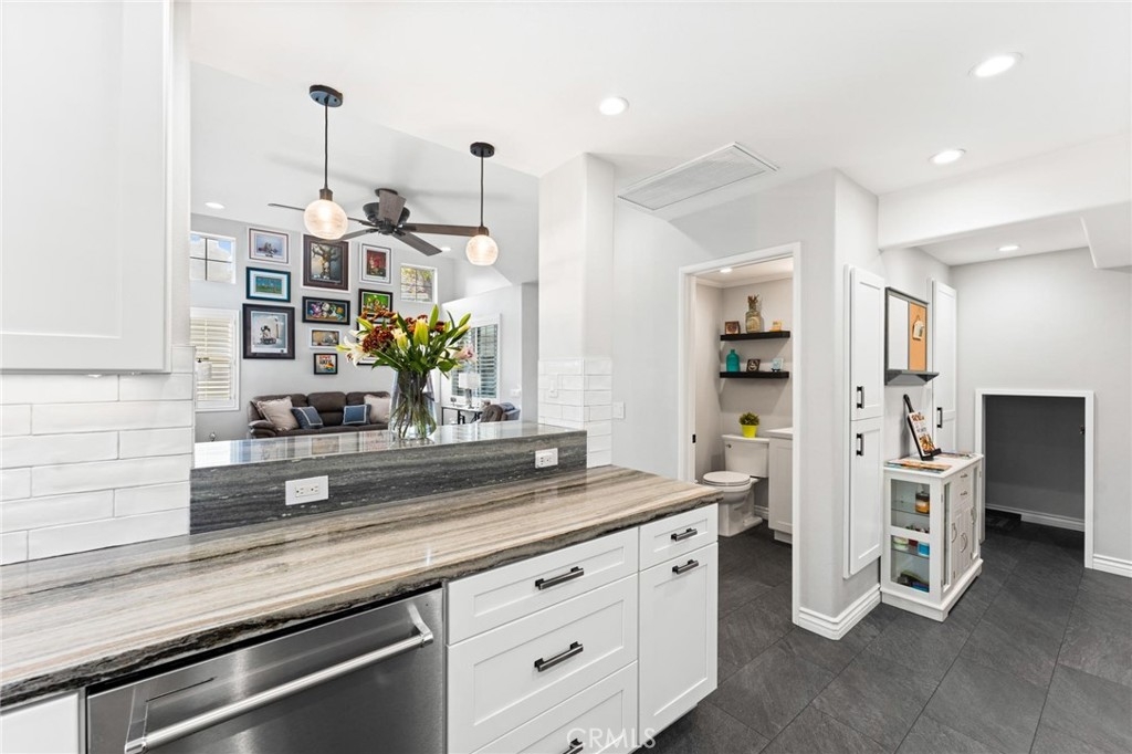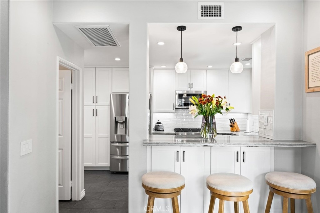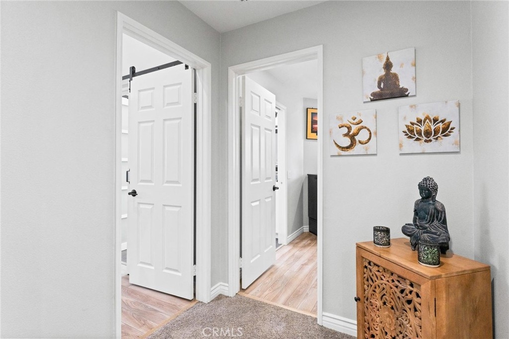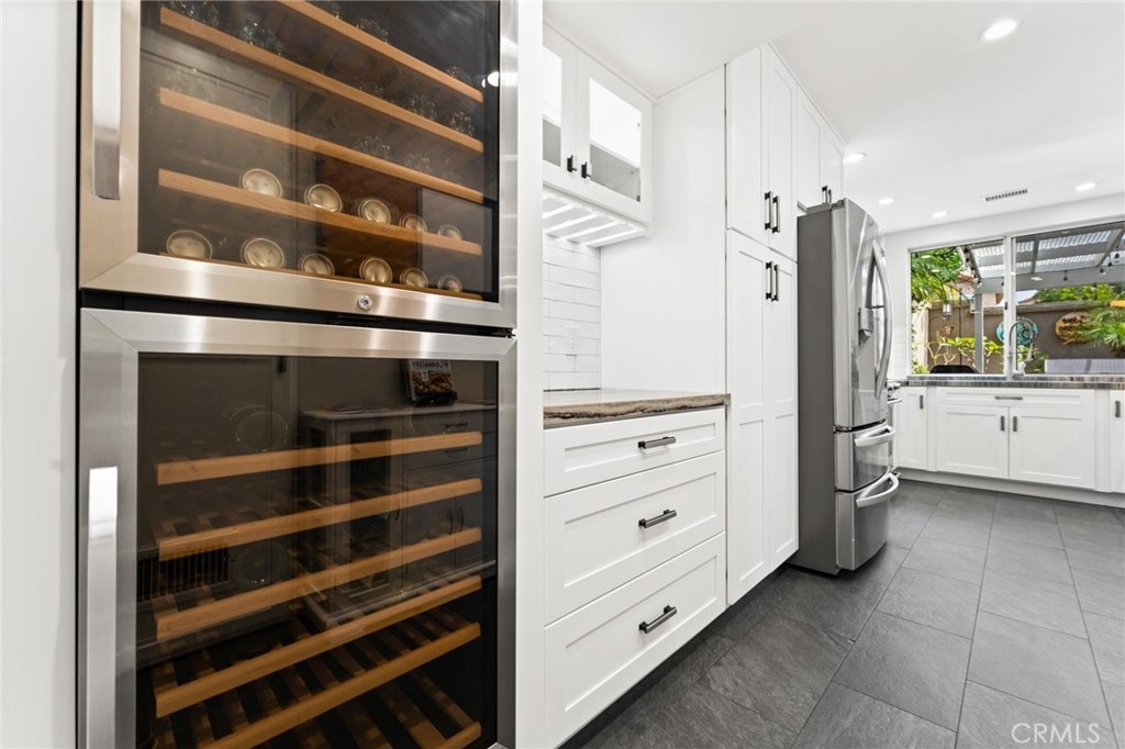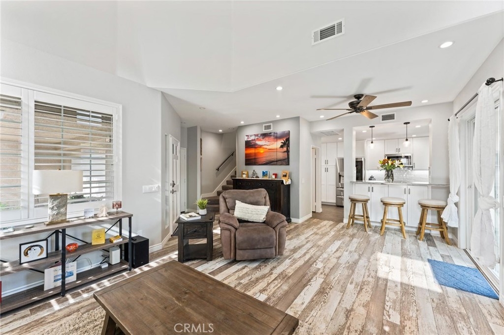Welcome to this beautifully upgraded corner-unit townhome with no one above or below, offering 2 bedrooms, 1.5 baths, and 1,114 sq ft of thoughtfully designed living space. Located just steps from O’Neill Regional Park, this home blends modern comfort with the natural beauty of one of RSM’s most scenic areas. The inviting living room features a cozy fireplace, cathedral ceilings, and abundant natural light, creating a warm and open atmosphere the moment you step inside. The fully remodeled kitchen includes all-new stainless steel appliances, an oversized sink, Lanbo dual-zone wine fridge, custom cabinetry with an oversized pull-out pantry, granite countertops, subway tile backsplash, under-cabinet lighting, and a custom stemware wine rack. Additional upgrades include new wood shutters, custom paint, recessed lighting on the Lutron Caseta smart system, Nest thermostat and smoke alarms, and stylish metal stair rails. Newer carpet enhances the stairwell and upstairs bedrooms, complemented by new ceiling fans in both bedrooms and the dining area. The luxurious primary bathroom remodel features quartz countertops, new vanities and sinks, an oversized soaking tub, and a custom tiled shower with insets, along with a custom linen cabinet and soft-close barn doors. The downstairs bath has also been upgraded with a new vanity, sink, faucet, and quartz countertop. A standout feature is the attached 2-car garage with plenty of storage space and convenient direct access. Step outside to a large Zen-inspired backyard offering multiple seating areas perfect for entertaining, gardening, relaxing, or BBQing—an outdoor sanctuary rarely found in a townhome. Residents enjoy access to the community pool and spa, plus the incredible convenience of being moments from hiking and biking trails inside O’Neill Regional Park. This move-in-ready home delivers exceptional privacy, extensive upgrades, outdoor living, and an unbeatable location in Rancho Santa Margarita.