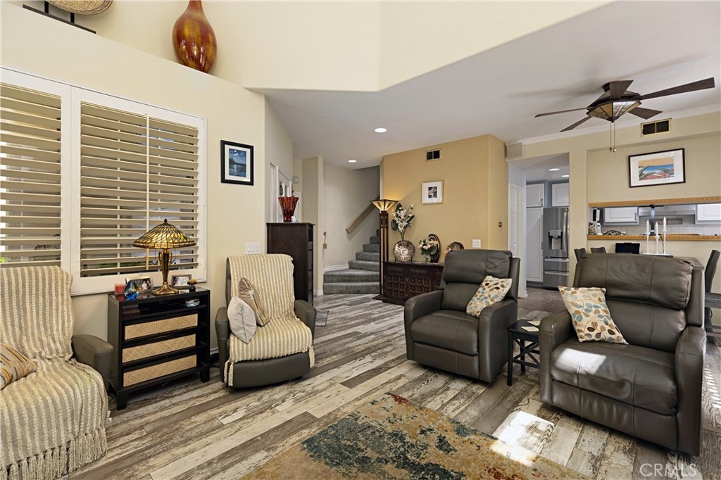 Absolutely stunning 2 bedroom 1.5 bath Sonoma Court townhome in a private location. As you enter the home, you are welcome by an open floor plan with soaring ceilings and an abundance of natural light The spacious great room provides a cozy fireplace and dining area looking out to the deck. The fantastic chef’s kitchen provides custom cabinetry with accent colors, butcher block countertops, stainless steel appliances, and pass through to the dining area. Master suite provides plenty of closet space, and a master bath with dual vanity. Convenient indoor laundry room and office nook area. Additional appointments include custom flooring throughout, ceiling fans, surround sound wired. Enjoy outdoor living on the oversized resort-like deck with 2 separate seating areas and island barbeque. Low assessments and low tax rate. Convenient location close to shopping, restaurants, entertainment and Rancho Santa Margarita Lake. Includes access to the private beach club, awarding winning schools & quick access to the 241 Toll Road.
