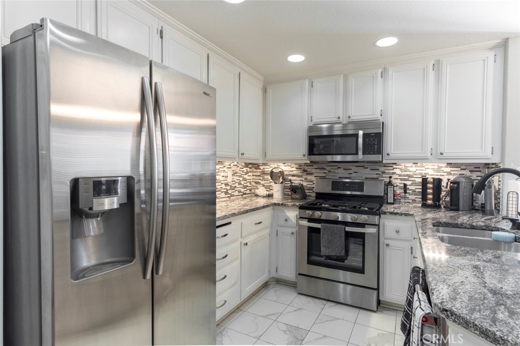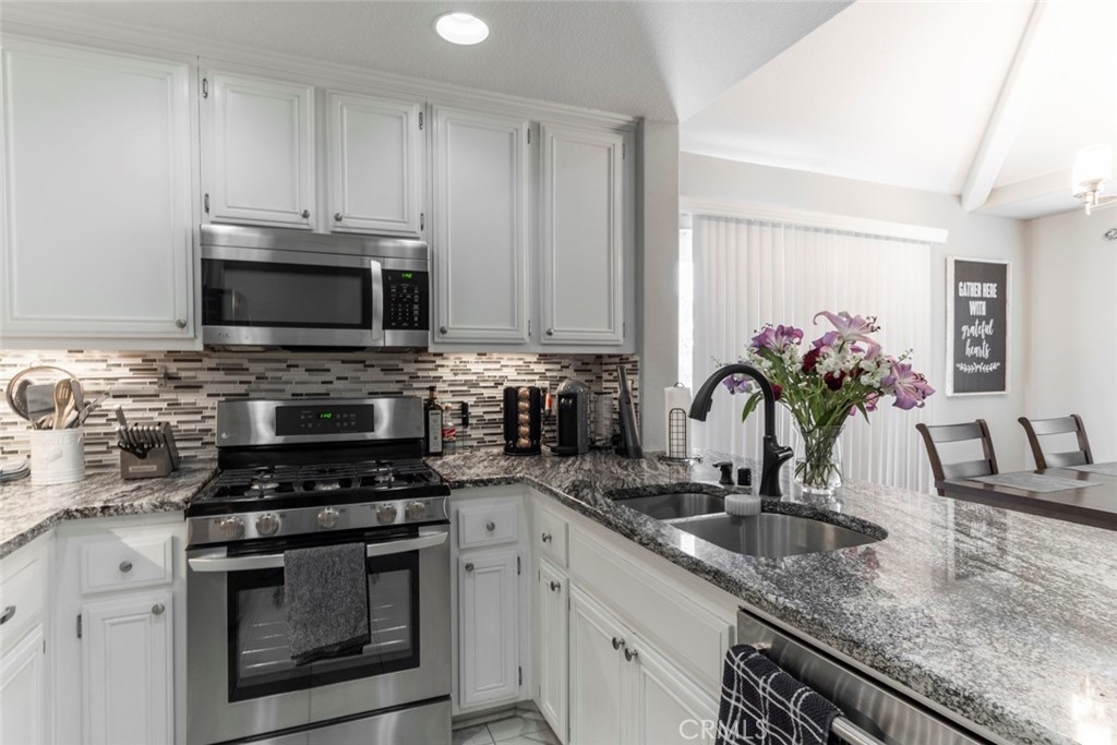 Welcome to the inviting ambiance of 37 Morning Glory, nestled within the esteemed Sonoma Court enclave of Rancho Santa Margarita. This charming residence, occupying a corner lot, offers a serene retreat with the added luxury of no immediate neighbors above or below. Enter inside to discover a thoughtfully appointed interior boasting 2 bedrooms and 2 full baths, alongside an updated kitchen, dining area, and a welcoming living space—perfect for unwinding after a busy day. The living room commands attention with its lofty ceilings adorned with recessed lighting and a delightful fireplace, providing warmth on cooler evenings. Custom corner shelving adds a touch of functionality and style, ideal for showcasing your cherished decor pieces. The kitchen is a culinary haven, featuring crisp white cabinetry, granite countertops, and an elegant backsplash. Stainless steel appliances complete the ensemble, facilitating effortless meal preparation. Retreat to the primary bedroom, complete with its own private bath featuring dual sinks and a spacious walk-in closet. Outside, you will find your very own private balcony, where you can bask in the sunlight and enjoy moments of tranquility. Laundry chores are simplified with the convenience of an in-unit setup, while direct access to the 2-car garage adds a further layer of ease to your daily routine. Beyond the comforts of home, this residence enjoys a prime location close to a wealth of amenities including shops, dining establishments, parks, and Rancho Santa Margarita Lake. Quick access to the 241 Toll Road ensures seamless connectivity to neighboring areas. Experience the epitome of comfort and convenience at 37 Morning Glory. A haven where every detail has been meticulously curated to enhance your lifestyle in Rancho Santa Margarita.