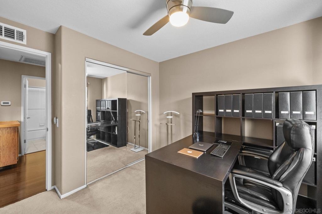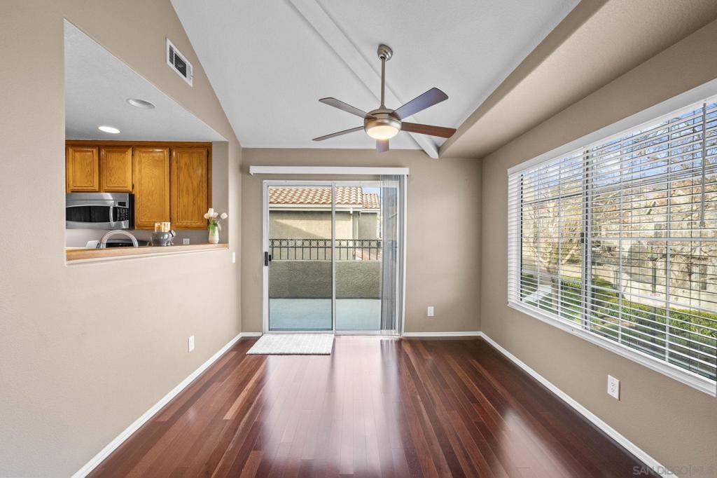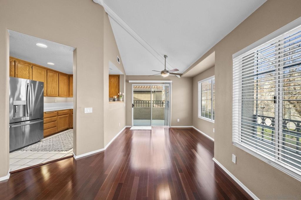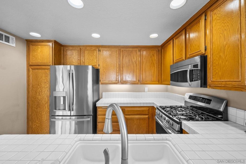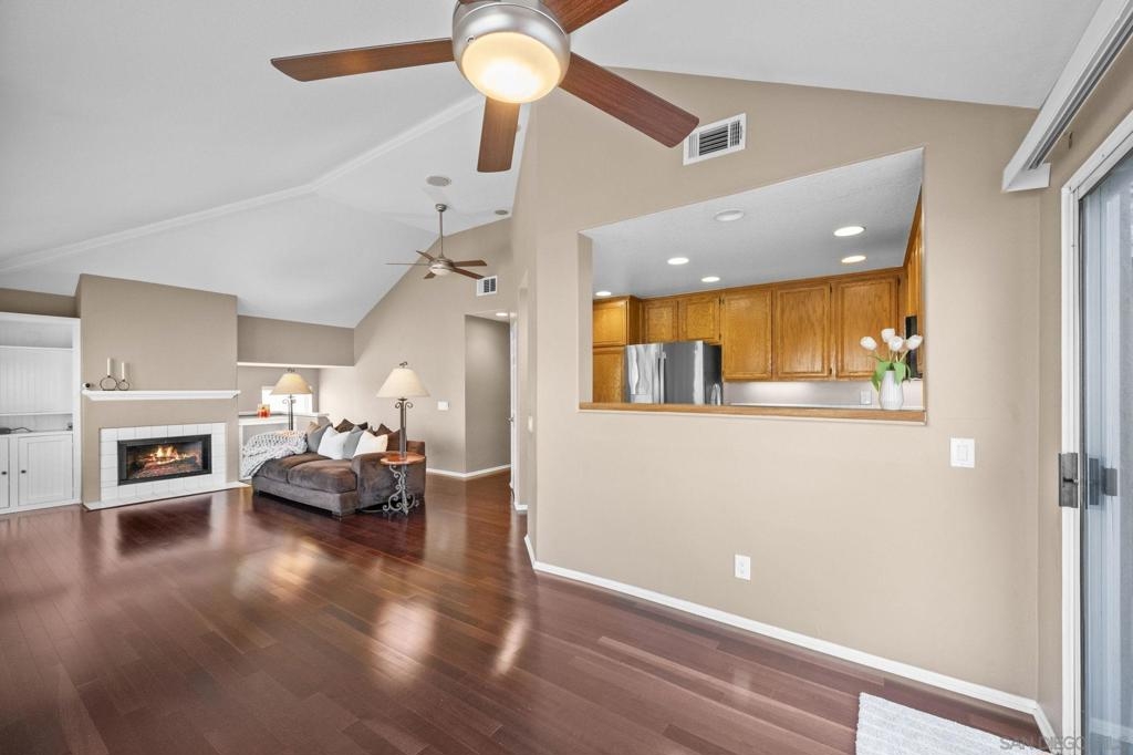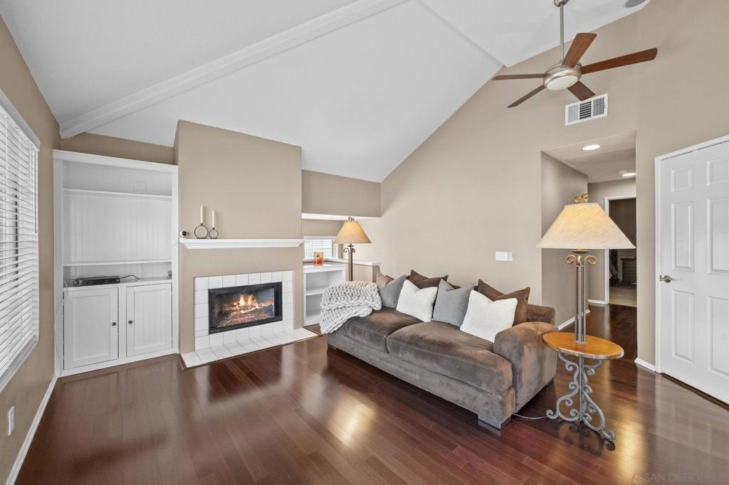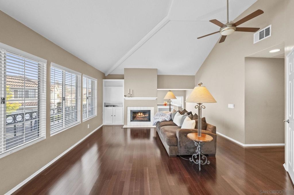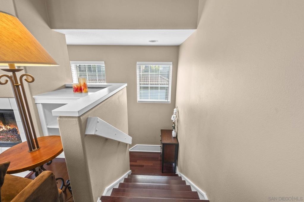 Stunning 2-Bedroom Carriage Condo in the Heart of Rancho Santa Margarita with attached 2-car garage! Charm, convenience, and countless upgrades come together in this beautifully updated 2-bedroom, 2-bathroom carriage unit condo! With no neighbors above or below, you get the privacy of a single-family home with the ease of condo living. Step inside to find a bright and open living space with custom built-in cabinets flanking the cozy fireplace, and enjoy mountain and neighborhood views from the living room while you're enjoying a warm fire. You will love the beauty and ease of the Cherrywood floors in the living spaces. The kitchen features matching GE stainless steel appliances, including a gas dual convection oven and not one, but two stainless steel refrigerators—one in the kitchen w/ a dual ice maker and another in the garage! Both bathrooms boast custom glass shower doors, new lighting fixtures and new bathroom fixtures. Plus, the new custom blinds and window screens throughout add a fresh, modern touch. You will also enjoy a newer HVAC system with new ducting that will help to keep you cool in the summer and warm in the winter. The attached garage comes fully equipped with a workbench, overhead storage cabinets, and metal shelving. You’ll also find built-in overhead storage above the garage door, ensuring there’s a spot for everything! Beyond the home, you'll love living in Rancho Santa Margarita, named one of the safest small cities in the U.S. Enjoy Santa Margarita Lake just minutes away, O'Neil Regional Park and shopping and restaurants just across the street,