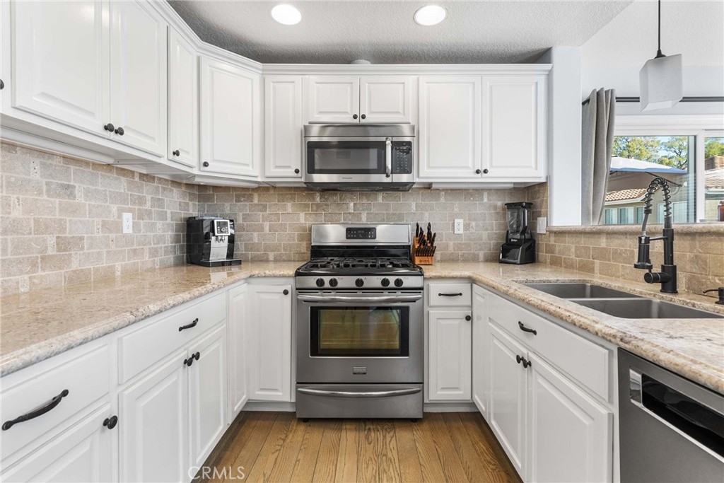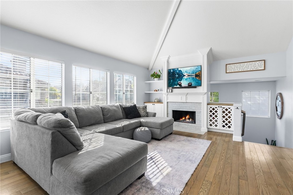 Welcome to your dream home in the highly sought-after Sonoma Court community of Rancho Santa Margarita! This stunning carriage-style end unit, with no neighbors above or below, offers the perfect combination of comfort, elegance, and convenience. Soaring vaulted ceilings and large windows fill the space with abundant natural light, accentuating the open and airy floor plan. The living area features a cozy fireplace and flows seamlessly into the dining room, which opens to a private balcony—ideal for barbecues and gatherings. This home has been tastefully upgraded with a brand-new HVAC system and ducting, custom hardwood flooring throughout, a modern kitchen with updated countertops, a stylish backsplash, and stainless steel appliances. The bathrooms boast updated shower enclosures, vanities, and fixtures, while the convenient indoor laundry area is equipped with an LG stackable washer and dryer. Located near scenic hiking and biking trails, shopping, dining, and entertainment, this condo offers a lifestyle of ease and accessibility. As a resident, you'll also enjoy exclusive membership to the Rancho Santa Margarita Lake Beach Club. This is more than a home—it's a lifestyle in one of the most desirable communities in Rancho Santa Margarita!