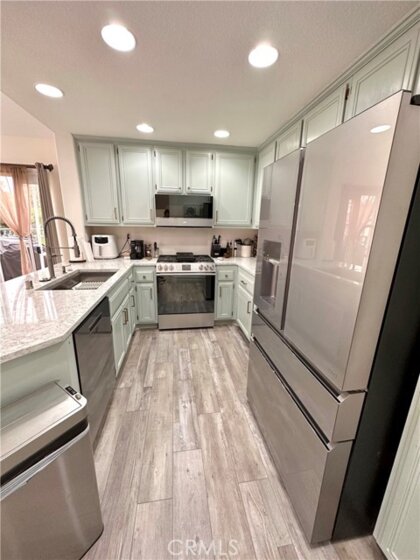 Introducing a true turnkey 2bd / 2ba carriage unit condo (no one above or below you). Located in the desirable subdivision of Sonoma Court. Access to Rancho Santa Margarita Lake, close to main shopping areas, the 241 toll road, O'Neil Regional Park, and Blue Ribbon Schools. Vaulted ceilings and large windows bring in natural light that enhances this open floorplan. Modern technology has been implemented everywhere for this home with a Nest ecosystem for the Brand New HVAC system & ducting plus video doorbell by the Yale Smart WiFi front door. Cell Phone can remotely control both the front door and newly installed garage door. All New Cafe Smart Kitchen appliances. New countertops with updated cabinets and fixtures. New LG stackable washer/dryer. New LVT flooring throughout the home. All appliances are included in the purchase. Amenities include access to tennis courts, swimming pool and jacuzzi within the complex. Assigned parking spot as well as garage. Tranquil and nice sized balcony great for grilling and family gatherings. Come see for yourself, OPEN HOUSE Sat/Sun, June 10th-11th, 10 AM - 4 PM