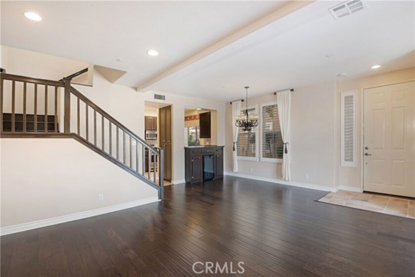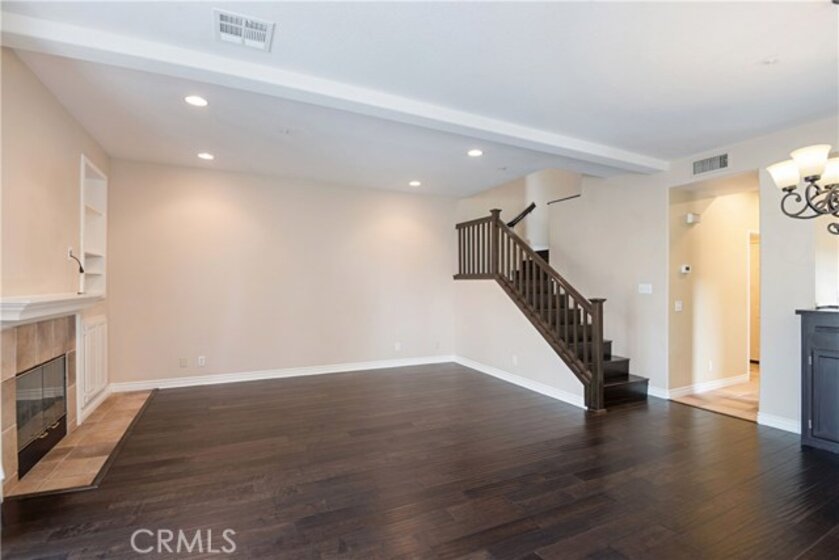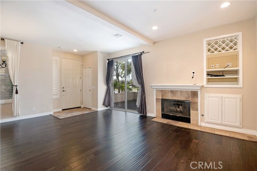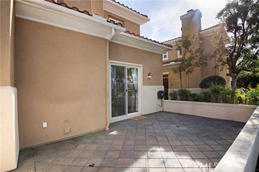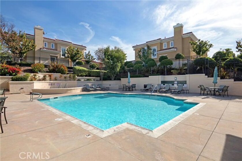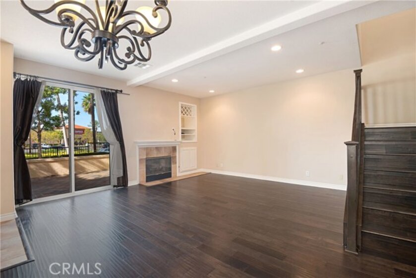 Gorgeous END UNIT townhouse with 4 bedrooms in Popular Terracina neighborhood. Former model home has a remodeled kitchen with granite counter tops, stainless steel appliances, gas stove, and refrigerator. Rich wood flooring throughout main floor w/ designer details throughout including wood mantel, 4 inch baseboards, built-ins, drapes, new fixtures and plantation shutters. Upstairs master suite is generously sized with a ceiling fan and a large ensuite bathroom and walk in closet. 3 additional bedrooms upstairs (one is being used as an office with built-ins). Wainscoting walls and ceiling fans in the guest bedroom. Inside laundry-room downstairs and a nice sized 2 car garage with custom organizers and built- ins for storage. Large enclosed patio in the rear of this home. This is an upscale neighborhood with an amazing walk to everything location..close to shopping centers, movies, restaurants and more! This home makes a great investment too! Enjoy the community amenities with a sparkling pool, spa, RSM beach club, lake, tennis, summer concerts and beach club to enjoy.