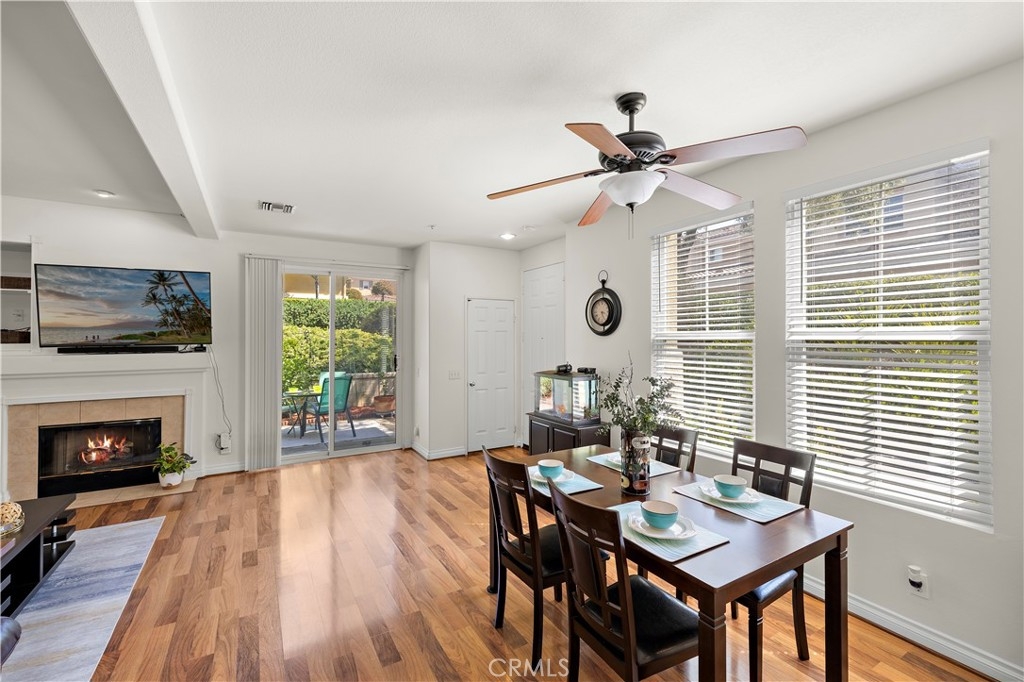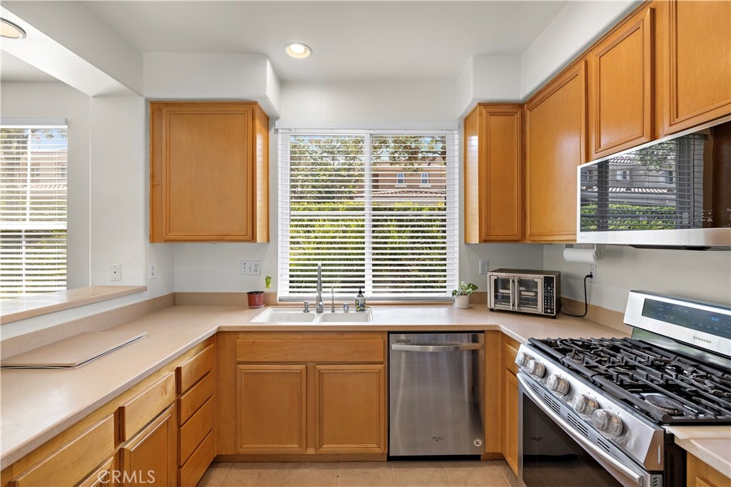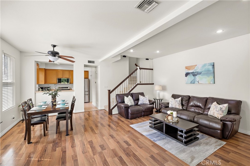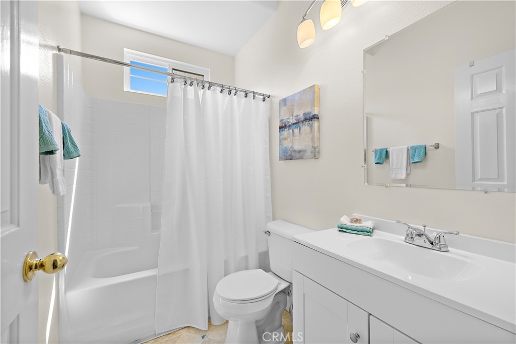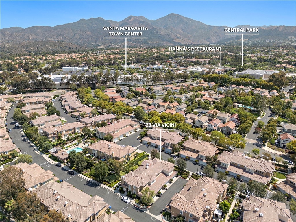 Welcome to 128 Via Vicini in sought-after Rancho Santa Margarita, California's safest city. This popular end-unit townhome is perfectly situated near a cul-de-sac for a private, interior location. Boasting 4 bedrooms and 2.5 baths in over 1650 sq ft, you will immediately fall in love with the open concept layout with high ceilings and lots of natural light. The living room features a fireplace and media niche and is adjacent to the large dining room which has access to the patio. The kitchen offers plenty of counter and cabinet space and there's a large pantry/storage room. In addition, there's a laundry room and guest bathroom. Upstairs, there are 4 bedrooms and two full bathrooms. The spacious primary bedroom has a walk-in closet and a dual sink bathroom. The secondary bedrooms are ample while the 4th room with an extra storage closet is larger and can be used as a bedroom, office or multi-purpose room. The secondary bathroom is perfectly situated between the extra bedrooms and boasts a new vanity and lighting. The freshly painted interior, new window blinds, newer air conditioning system and water heater provide a clean, well-maintained aesthetic along with modern and energy efficient features. You will appreciate the serenity of your private and spacious patio which offers a tranquil and peaceful environment, perfect for relaxation. Enjoy the close proximity to shopping, dining and Samlarc amenities including parks, courts and the beach club. The low monthly HOA helps with affordability!