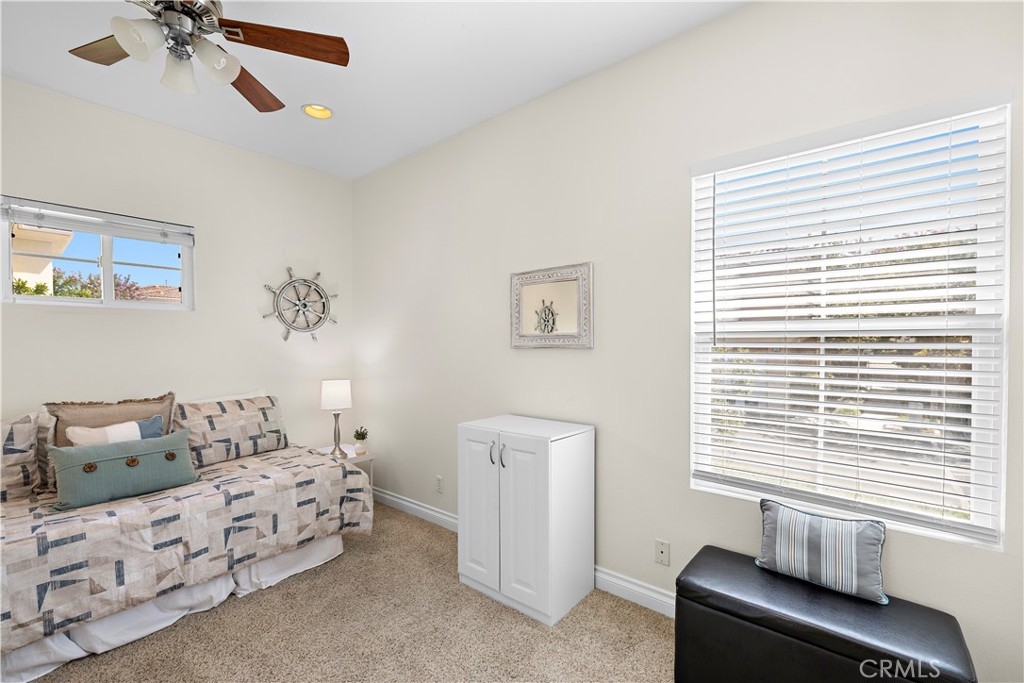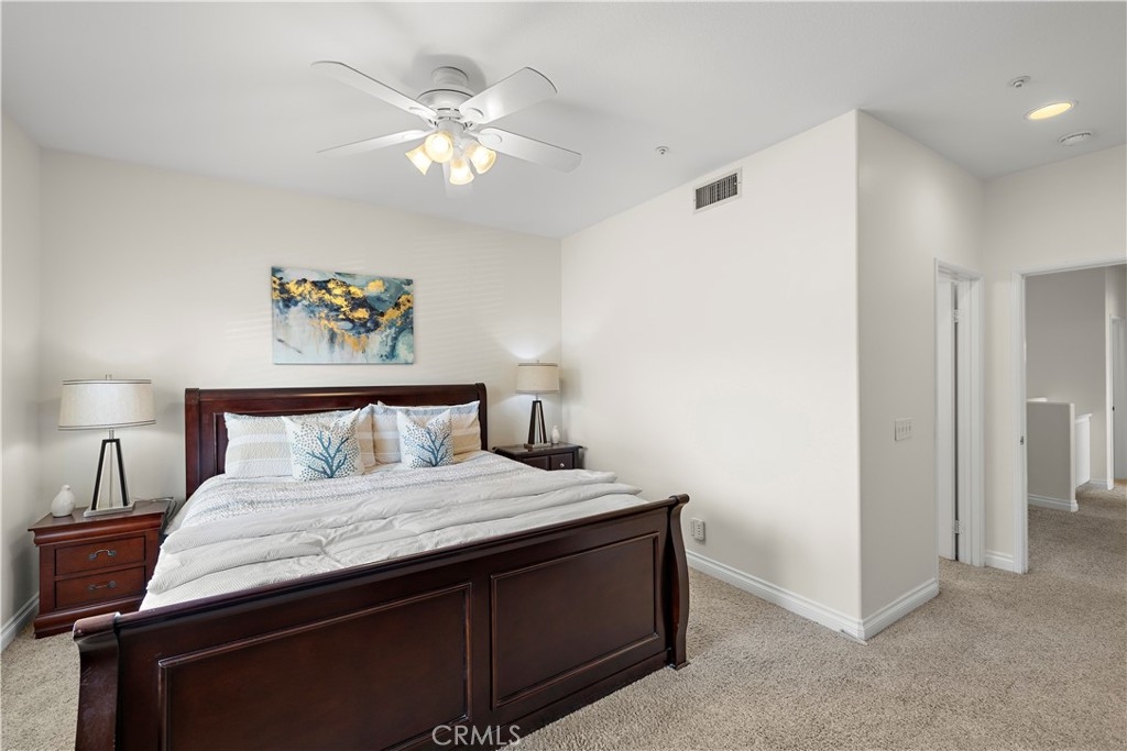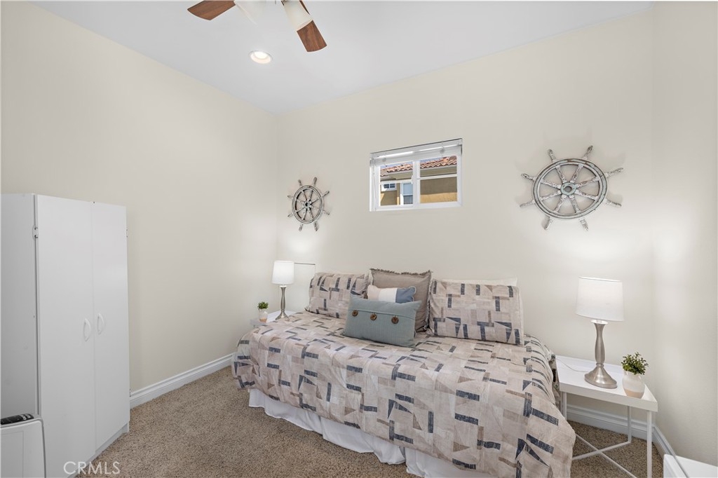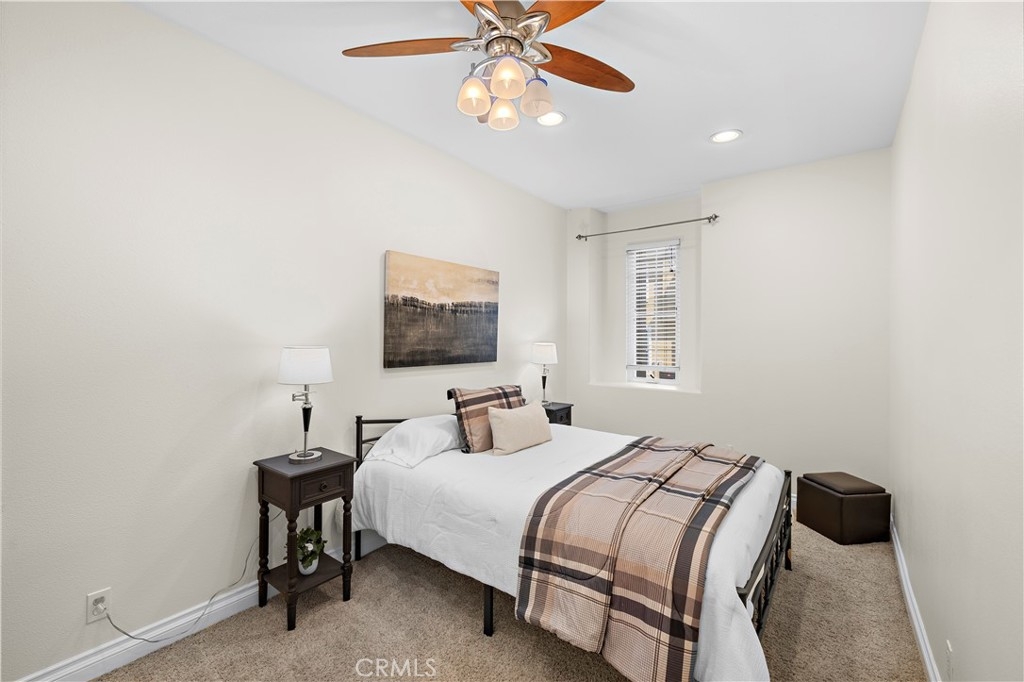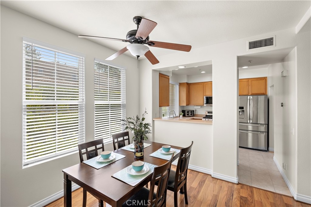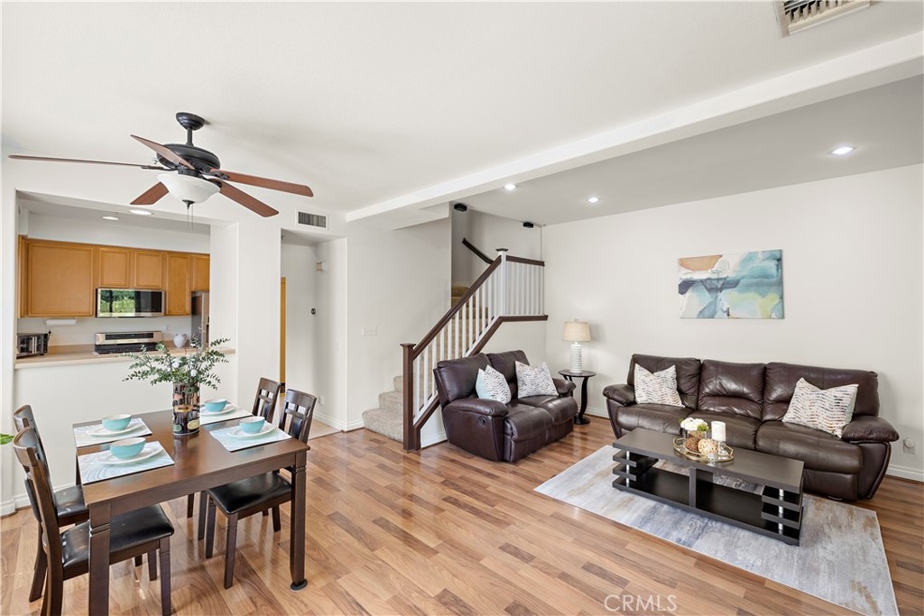 Welcome to 128 Via Vicini in sought-after Rancho Santa Margarita, California's safest city. This popular end-unit townhome is perfectly situated near a cul-de-sac for a private, interior location. Boasting 4 bedrooms and 2.5 baths in over 1650 sq ft, you will immediately fall in love with the open concept layout with high ceilings and lots of natural light. The living room features a fireplace and media niche and is adjacent to the large dining room which has access to the patio. The kitchen offers plenty of counter and cabinet space and there's a large pantry/storage room. In addition, there's a laundry room and guest bathroom. Upstairs, there are 4 bedrooms and two full bathrooms. The spacious primary bedroom has a walk-in closet and a dual sink bathroom. The secondary bedrooms are ample while the 4th room with an extra storage closet is larger and can be used as a bedroom, office or multi-purpose room. The secondary bathroom is perfectly situated between the extra bedrooms and boasts a new vanity and lighting. The freshly painted interior, new window blinds, newer air conditioning system and water heater provide a clean, well-maintained aesthetic along with modern and energy efficient features. You will appreciate the serenity of your private and spacious patio which offers a tranquil and peaceful environment, perfect for relaxation. Enjoy the close proximity to shopping, dining and Samlarc amenities including parks, courts and the beach club. The low monthly HOA helps with affordability!