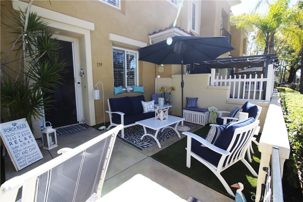 This beautiful home, right in the heart of Rancho Santa Margarita located in the very sought after community of Terracina. One of the largest patios in the complex, with a beautiful sunset you can watch every evening. The home has 2 bedrooms, 2 bathrooms upstairs, half bath downstairs with barn door entry. Direct access garage parking with ample parking throughout the complex. This home has been beautifully upgraded and includes an almost new washer, dryer and refrigerator, stove and microwave and dishwasher. All Stainless Steel Appliances. multiple linen closets, for ample storage. Crown Molding in Living room, with high ceilings. Stack stone on top of fireplace, porcelain. Being in the heart of RSM you are walking distance to many shopping areas. RSM also has a beautiful man-made lake where you can fish, walk the perimeter, or just relax and watch nature unfold. This is a must see.