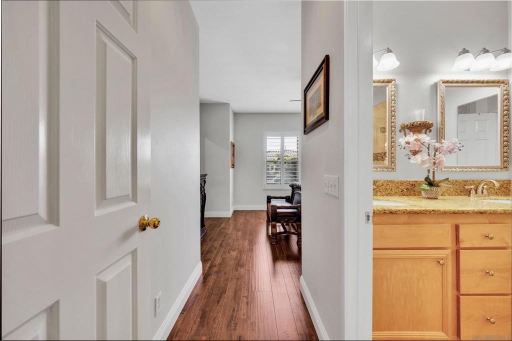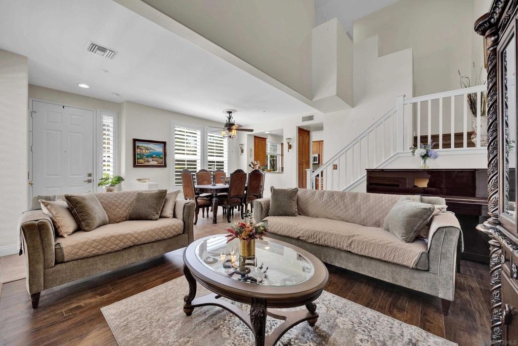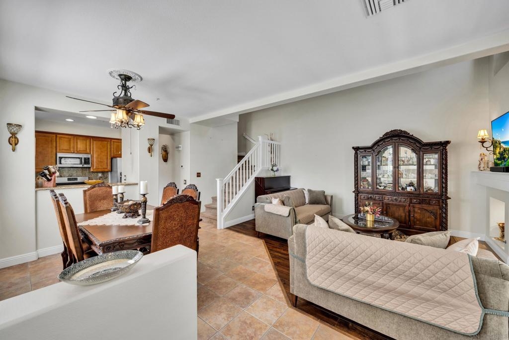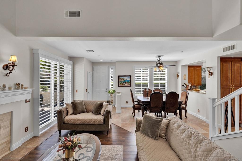 Welcome to your dream home in the heart of the highly desirable Terracina complex — where style, comfort, and convenience converge in this stunningly upgraded, popular two-story end-unit townhouse that feels more like a private, detached single-family residence. Nearly every inch of this home has been touched with care and intention — newer engineered hardwood flooring flows gracefully throughout most of both levels, creating a warm and timeless feel for this home. From the moment you step inside, you’re greeted by soaring ceilings, an abundance of natural light, and a layout that’s been masterfully enhanced. The chef-inspired kitchen is a showstopper with custom cabinetry, sleek granite countertops, and elegant, full-height backsplashes. The reimagined layout opens beautifully to the living and dining areas, ideal for everyday living and entertaining alike. Retreat to the tranquil primary suite, where a spa-like bathroom awaits, complete with a walk-in tile shower and a stunning inlay. The cozy fireplace, redesigned with custom detailing, anchors the living room and adds a perfect touch of character. Additional features include a completely updated HVAC system and new ductwork (both completed in 2021), custom crisp white shutters throughout (completed in 2021), and a fully functional third bedroom. Even the garage was designed with function in mind, offering exceptional overhead and overflow storage. The private back patio has been beautifully reimagined to maximize outdoor living space (completed in 2024), making it the perfect spot to relax or entertain. Ideally located just minutes from the 241 freeway, award-winning schools, top shopping and dining destinations, and the serene Rancho Santa Margarita Lake, this home offers not only refined living, but a lifestyle to match. LOW HOA and no Mello Roos! Don't miss your chance to own one of Terracina’s most coveted homes — a rare blend of beauty, functionality, and location. Come experience it for yourself!