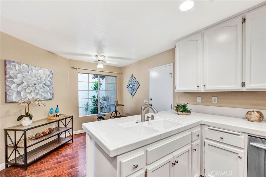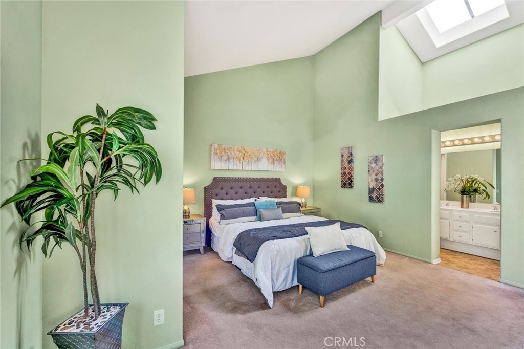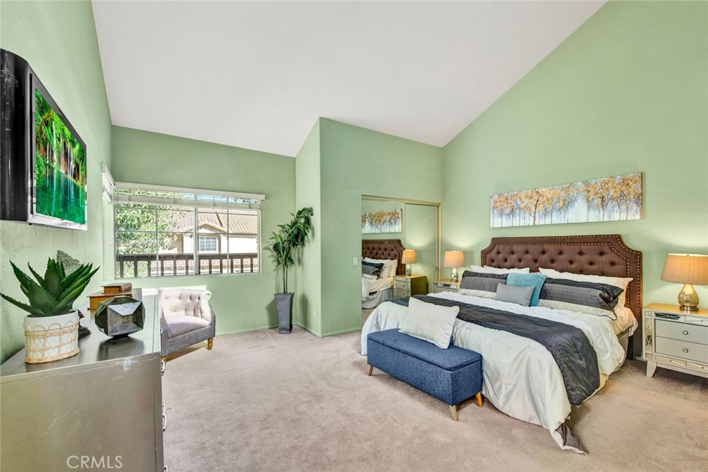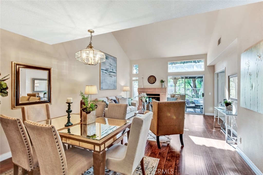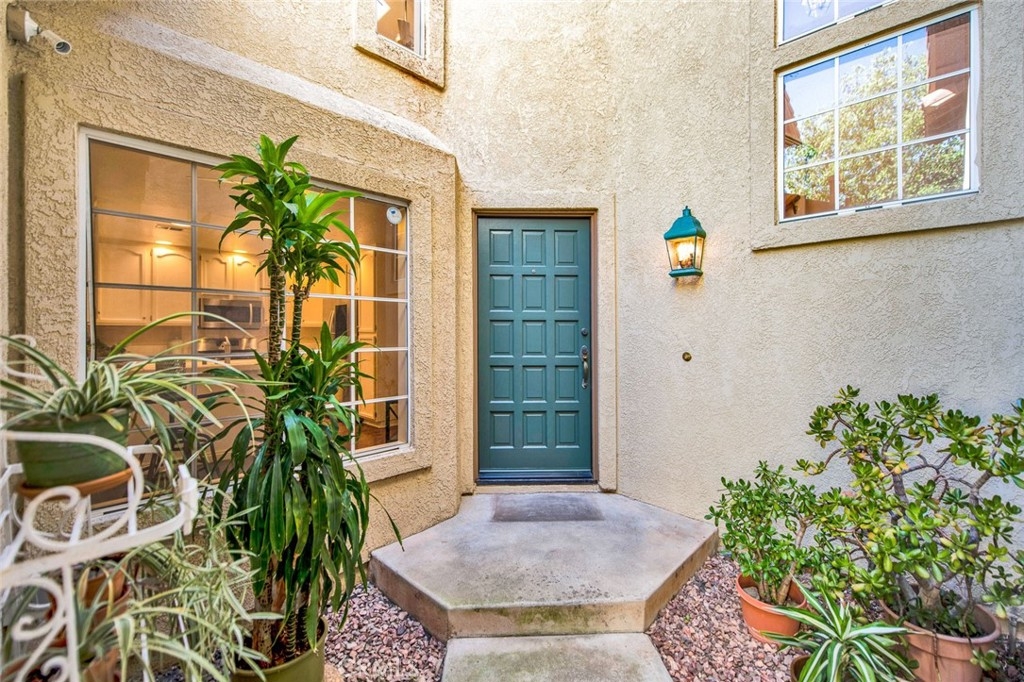 Welcome Home to 1678sqft 3 Bed, 2.75 Bath Townhome in the sought after Tierra Linda Community with the Rare downstairs Bedroom. Walk up the private walkway and enter into white tiled flooring entry and walk down into Walnut toned textured hardwood flooring that leads into expansive living room with Vaulted ceilings, Large windows, Neutral Paint, Cozy Brick Fireplace, and large sliding door with Beautiful Treetop Canyon Views. Downstairs Bedroom/ office with private exit to patio. Cozy Kitchen with a cove for a small kitchen table, White cabinets, White tile counters, all Stainless Steel appliances. Lots of Storage space. Step outside and Enjoy the expansive Patio with a glass of wine in the evenings and the gorgeous sunset views. Patio has Concrete flooring planter area and patio cover to keep back and downstairs shady. Stucco and vinyl fencing. walk up Carpeted stairs to the top level where there is a Huge loft area that looks over downstairs perfect for Office, extra living room, game room. Dual Masters off of loft. One master with walk in closet and Large room with vaulted ceilings and skylight, and walk in Closet. Master bath with dual sinks and walk in Shower. Second Master with treetop and canyon views, and has its own bathroom with Tub/shower combo. Large 2 Car Garage + 2 Car Driveway. Low Taxes of 1.02%, no mello roos. Community has been fully re-piped, Distinguished Schools, close to Golf, hiking, biking. Area amenities, Pools, parks, Tennis Courts. pickle ball, basketball courts, Lake walk, beach club, shopping, restaurants, Rancho has it all, and the second safest city in California for 2 years in a row.