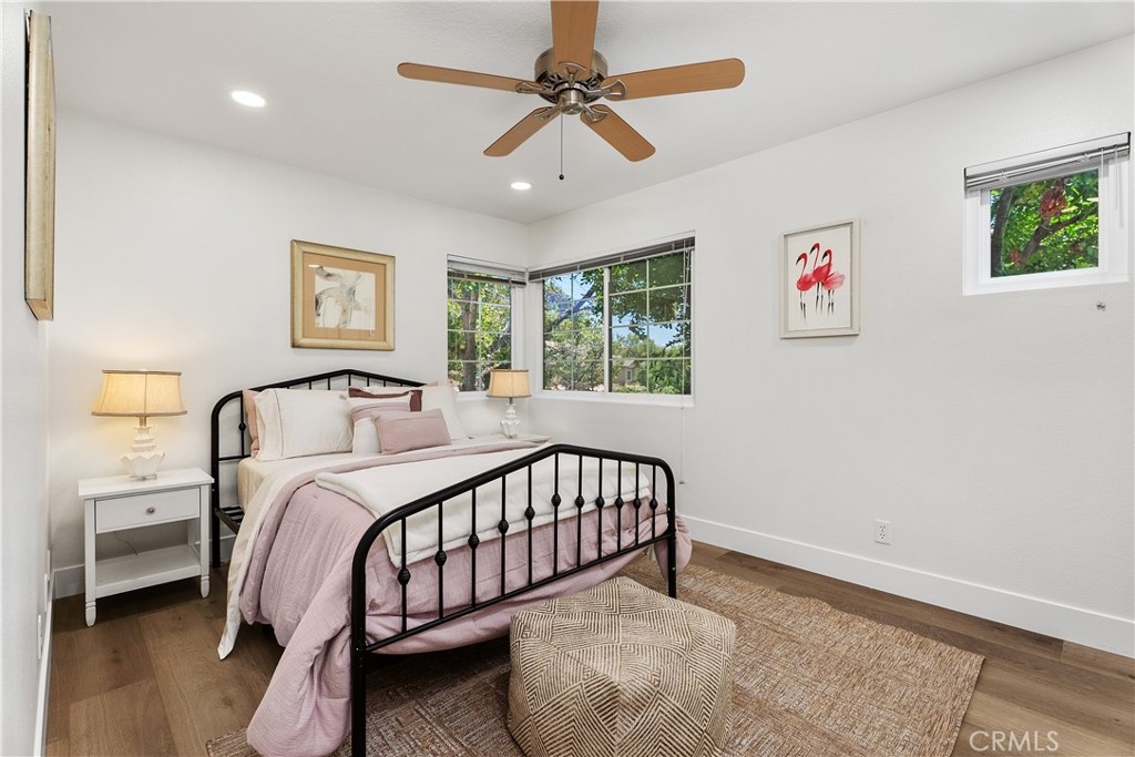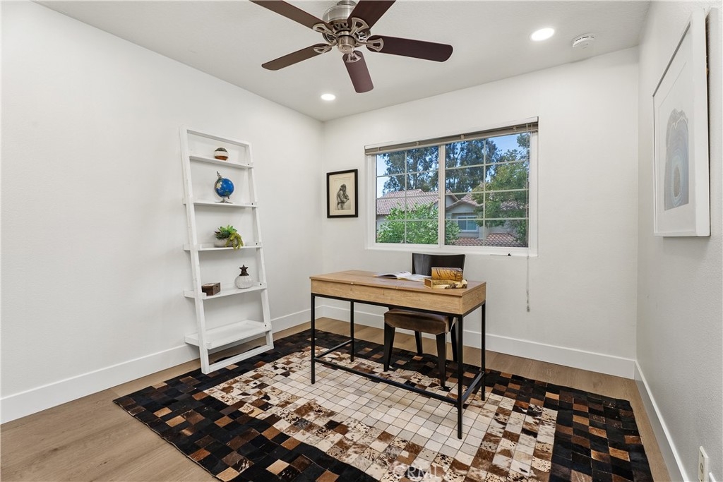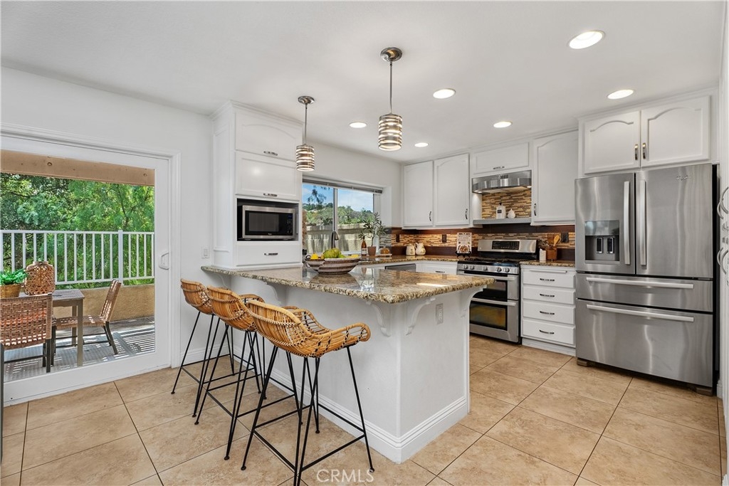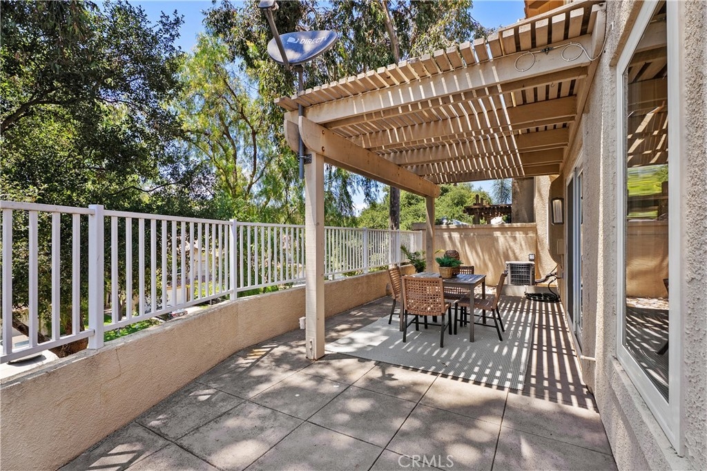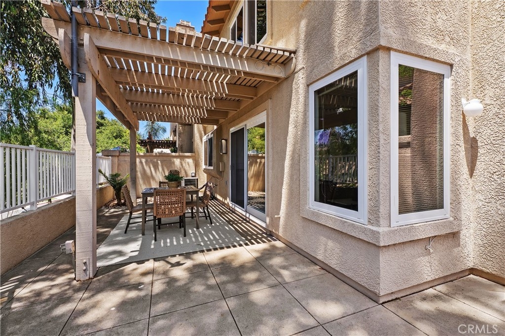 HIGHLY UPGRADED END-UNIT TOWNHOME WITH VIEWS AND THE MOST POPULAR FLOOR PLAN IN THE SOUGHT-AFTER TIERRA LINDA COMMUNITY. The largest model in the community, this beautifully upgraded 3-bedroom, 2.5-bath end-unit townhome features an open, light-filled layout with high ceilings, travertine-style tile flooring downstairs, and luxury vinyl plank flooring upstairs. Newer dual-pane windows provide energy efficiency and year-round comfort. The inviting family room includes a custom fireplace and sliding glass doors that open to a spacious private patio—ideal for relaxing or entertaining. The stunning kitchen showcases white cabinetry, granite countertops, a designer glass-and-tile backsplash, drop lighting above the large peninsula, and stainless-steel appliances. Upstairs, a stylish wood staircase leads to an airy landing, the expansive primary suite, two additional bedrooms, and a second remodeled bathroom. The primary suite features vaulted ceilings and tranquil treetop views. Its remodeled ensuite bath offers a floor-to-ceiling tiled shower, dual-sink vanity, and a walk-in closet with built-in shelving and a shoe rack. Additional highlights include an attached two-car garage with direct access, epoxy flooring, built-in storage, and a full driveway. The home has been re-piped with PEX, and the HOA is currently completing a new roof and fresh exterior paint across the community. Enjoy resort-style amenities including a pool, spa, BBQ area, and full SAMLARC privileges. Ideally located near Tijeras Creek Golf Course, award-winning schools, scenic parks, hiking and biking trails, dining, shopping, and major commuting routes.