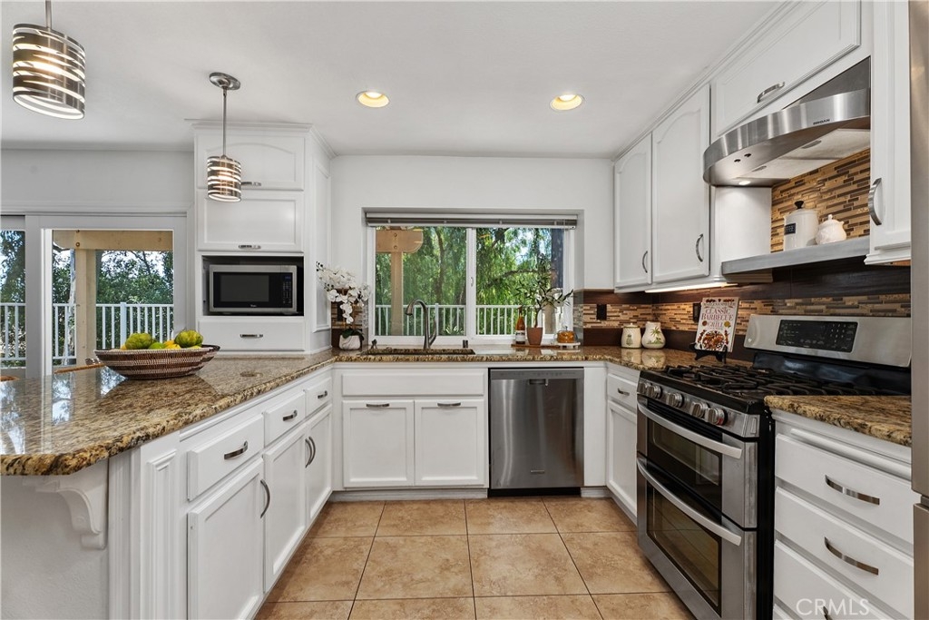 HIGHLY UPGRADED END-UNIT TOWNHOME WITH VIEWS AND THE MOST POPULAR FLOOR PLAN IN THE SOUGHT-AFTER TIERRA LINDA COMMUNITY. The largest model in the community, this beautifully upgraded 3-bedroom, 2.5-bath end-unit townhome features an open, light-filled layout with high ceilings, travertine-style tile flooring downstairs, and luxury vinyl plank flooring upstairs. Newer dual-pane windows provide energy efficiency and year-round comfort. The inviting family room includes a custom fireplace and sliding glass doors that open to a spacious private patio—ideal for relaxing or entertaining. The stunning kitchen showcases white cabinetry, granite countertops, a designer glass-and-tile backsplash, drop lighting above the large peninsula, and stainless-steel appliances. Upstairs, a stylish wood staircase leads to an airy landing, the expansive primary suite, two additional bedrooms, and a second remodeled bathroom. The primary suite features vaulted ceilings and tranquil treetop views. Its remodeled ensuite bath offers a floor-to-ceiling tiled shower, dual-sink vanity, and a walk-in closet with built-in shelving and a shoe rack. Additional highlights include an attached two-car garage with direct access, epoxy flooring, built-in storage, and a full driveway. The home has been re-piped with PEX, and the HOA is currently completing a new roof and fresh exterior paint across the community. Enjoy resort-style amenities including a pool, spa, BBQ area, and full SAMLARC privileges. Ideally located near Tijeras Creek Golf Course, award-winning schools, scenic parks, hiking and biking trails, dining, shopping, and major commuting routes.