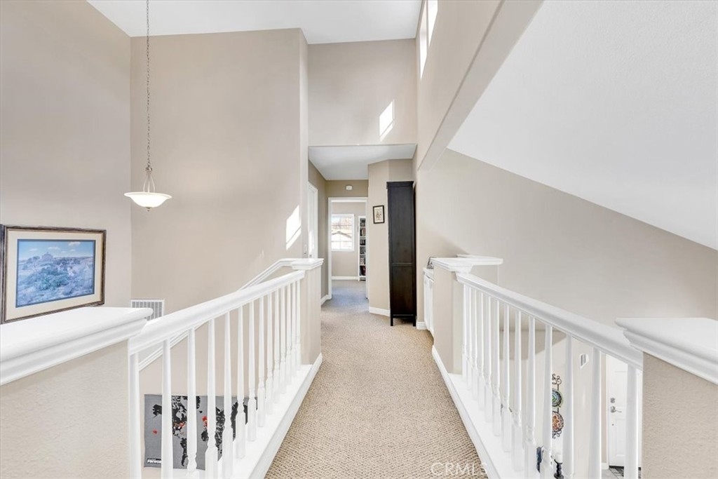 Nestled steps from Tijeras Creek Golf Course, this stunning home offers a blend of luxury, comfort, and an outdoor-friendly lifestyle. Located in a vibrant master-planned community, residents enjoy access to exceptional amenities, including scenic hiking and biking trails, sparkling pools, and lush parks. The home features a light-filled living room with soaring vaulted ceilings, large windows, and freshly painted light tan walls. The perfect mix of tile and plush carpet flooring leads to a remodeled kitchen with rich walnut-toned cabinets, custom granite countertops, and plenty of storage. The kitchen overlooks the expansive patio with serene views of the driving range and putting green, offering an ideal space for relaxing or entertaining. A cozy family room with a stacked stone fireplace opens to the tiled patio, featuring stucco walls, vinyl fencing, and a tranquil greenbelt that provides privacy and space between neighbors. Upstairs, the grand master suite includes a ceiling fan, upgraded en-suite bathroom with a walk-in tiled shower, white cabinetry, and modern fixtures. Two additional generously sized bedrooms feature ceiling fans, fresh tan paint, and light carpet, while the remodeled hallway bath showcases gorgeous tilework and upgraded finishes. The home also includes a remodeled downstairs bath with granite countertops and a fully re-piped plumbing system. Beyond the home’s exceptional features, the community offers access to a beach club with a stunning lagoon, BBQ and picnic areas, playgrounds, and sports courts for tennis, pickleball, basketball, and volleyball. Distinguished schools, low taxes, and no Mello Roos make this an unbeatable opportunity! Rancho was also named California’s safest city in 2024, making this the perfect place to call home. Don’t miss your chance to experience the Californian dream—schedule a showing today before this gem is gone!