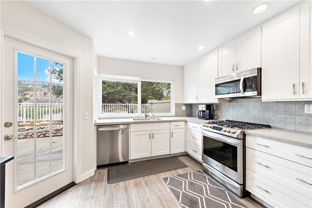 A beautiful, well-appointed dual master townhome that is conveniently situated in the highly sought-after golf course community of Tierra Linda. Offering EXPANSIVE wilderness and canyon views and encompassing almost 1,500 square feet of generous living space, this warm and inviting residence offers an open and spacious floor plan with countless upgrades and an abundance of windows creating a bright and sunny ambiance throughout this wonderful home. Featuring an oversized gourmet kitchen with stainless steel appliances, quartz countertops with a beautiful designer tile backsplash, white shaker cabinets, and stainless steel Elkay sink. Additional highlights include open concept family room with cathedral ceilings, cozy fireplace, porcelain tile flooring, and custom window coverings. Upstairs boasts generous sized bedrooms with vaulted ceilings, and newly remodeled luxurious spa like master bath that feels like your own private retreat. Sliding doors lead to an awesome fully enclosed patio with endless views and privacy that truly provides for an exceptional indoor/outdoor living experience. Low taxes, highly rated schools, association pool, spa and barbeque, plus access to the RSM Beach Club, multiple community pools, tennis courts parks and so much more! Just a block away is the Tijeras Creek Golf Course. This is a must see!!