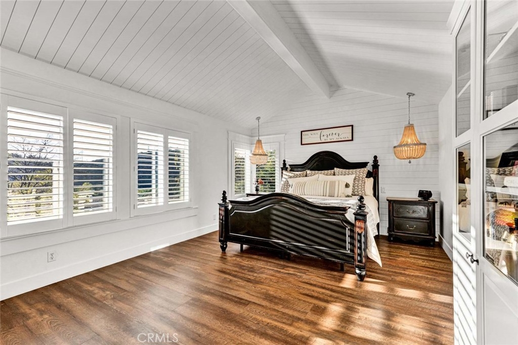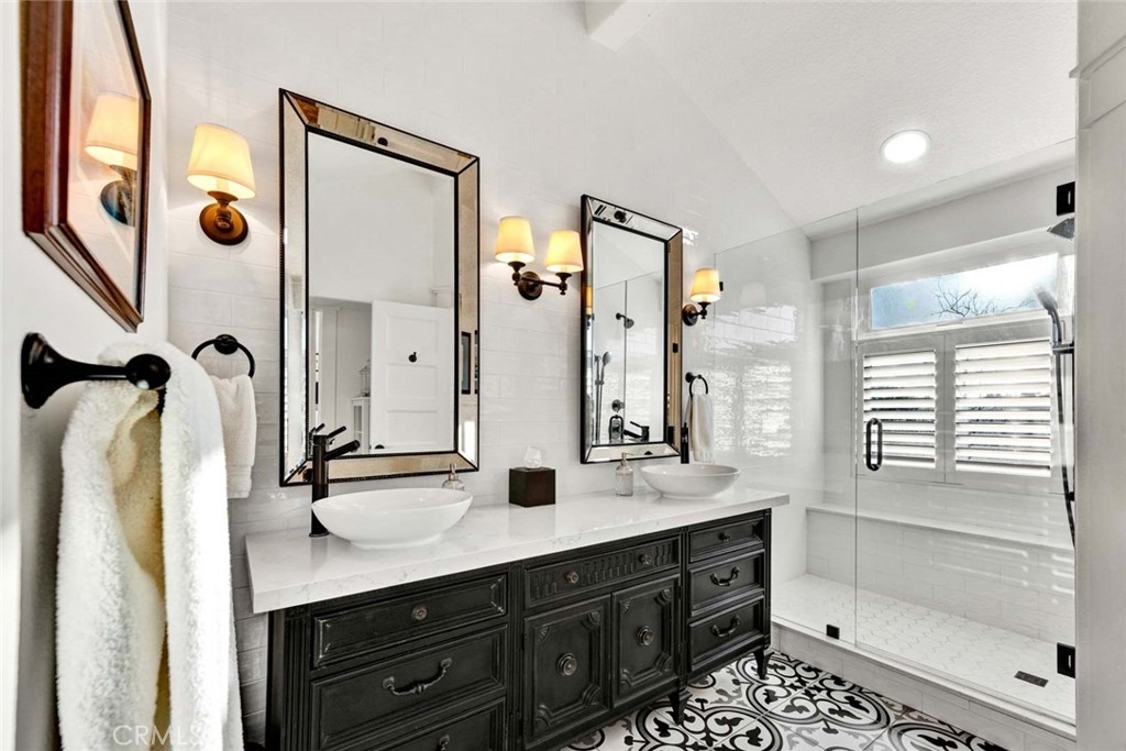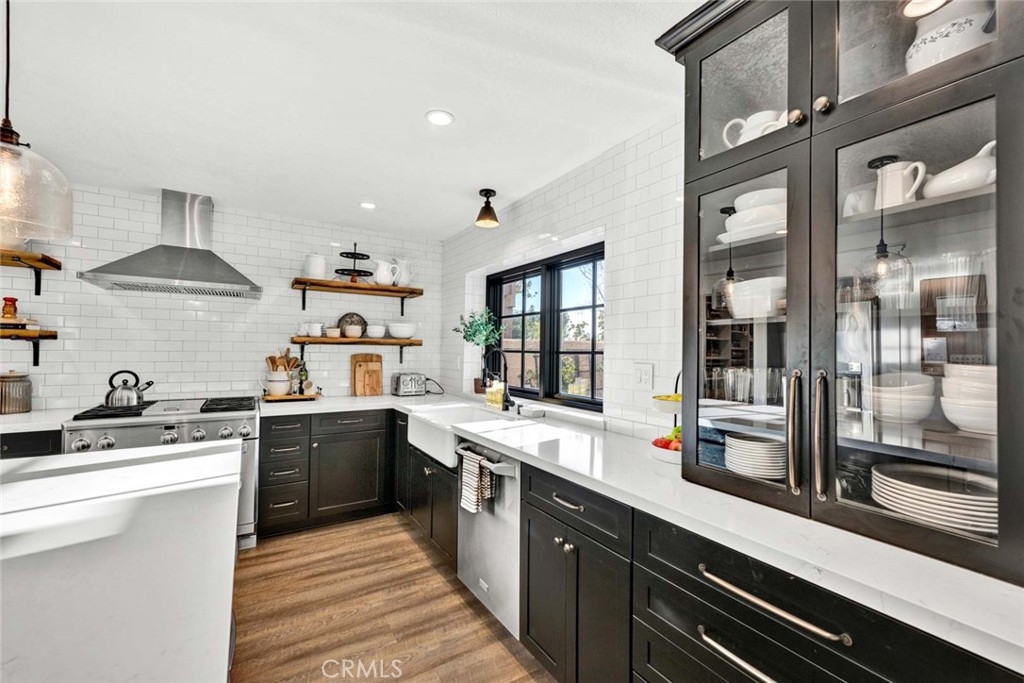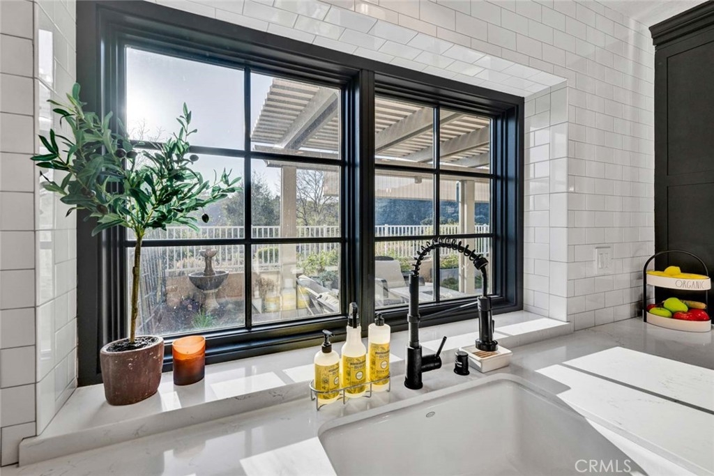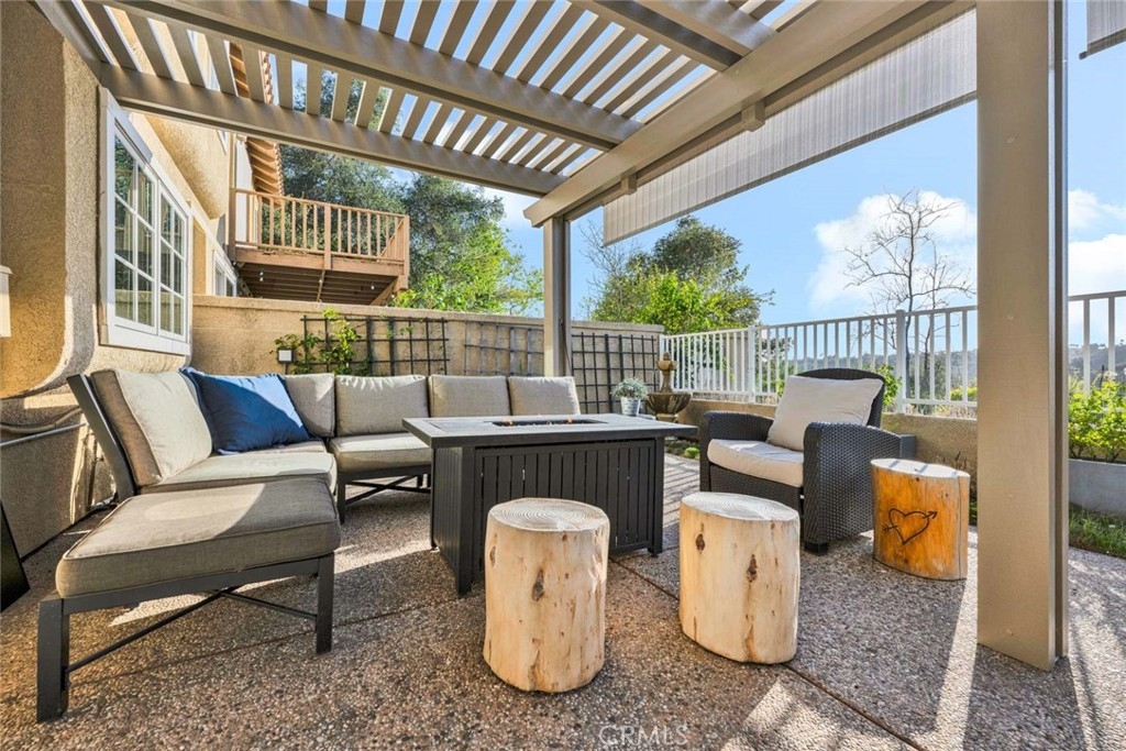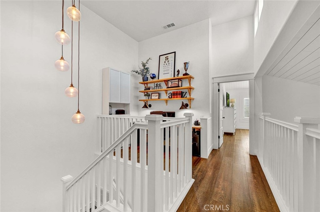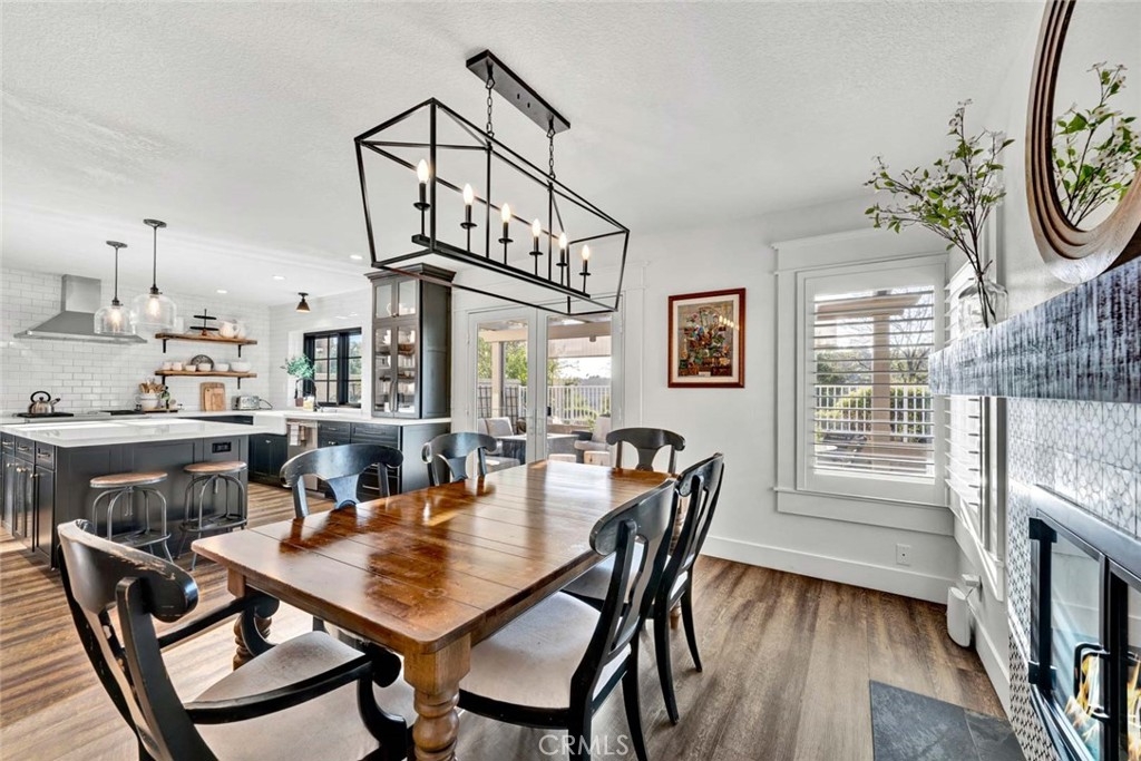 Welcome to the Most Amazing Remodeled Home in Tierra Linda! Step into a captivating Great Room with breathtaking views of the wilderness, visible right from the front door. Experience the elegance of beautiful brown laminate flooring that stretches throughout the home, paired with large windows adorned with plantation shutters, cathedral white wood slat ceilings, and a stunning candle light fixture. This room also boasts a charming built-in bookcase and dual-paned windows that flood the space with natural light. Venture into the inviting dining area, where a mesmerizing fireplace with mosaic tile and a black wood mantle awaits, illuminated by a striking light fixture. The heart of this home is the incredible kitchen, showcasing sleek black cabinets, pristine white quartz counters, a spacious island, a chic white tile backsplash, and a white porcelain farm sink. Cook to perfection on the stainless steel 6-burner stove beneath decorative wood shelving and an exhaust hood. The solid core craftsman-style door opens to a humungous pantry, ideal for all your storage needs. Step outside through the dual-paned sliding door to discover a serene and expansive yard, complete with pebble rock concrete inlay and a durable aluma wood patio cover. The easy-to-maintain Japanese grass adds a touch of tranquility, making it perfect for family gatherings, BBQs, or simply relaxing and enjoying the breathtaking sunsets. The downstairs bath features a walnut-toned cabinet with a large sink and shiplap walls, adding a touch of rustic charm. Upstairs, the primary bedroom boasts vaulted white wood slat ceilings and offers picturesque views of the Arroyo Trabuco Wilderness area. The master bath is a true retreat, with mosaic tile flooring, black cabinets topped with white quartz, dual bowl sinks, a walk-in shower with glass doors, and a spacious walk-in closet. Stroll along the catwalk to find a built-in loft desk area and a custom upstairs stackable laundry area. Two additional good-sized rooms feature laminate flooring and fresh white paint. The second bath upstairs is stylish with honeycomb white tile flooring, a grey cabinet, and grey and white quartz counters, along with a bath and shower. This home includes a two-car garage with an Official Tesla Electric Car Charger and a large attic storage space. Plus, some of the lights even work with Alexa for added convenience. Come explore this enchanting oasis—perfect for making lasting memories