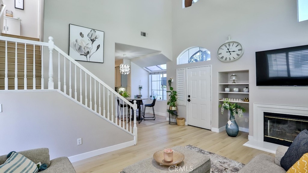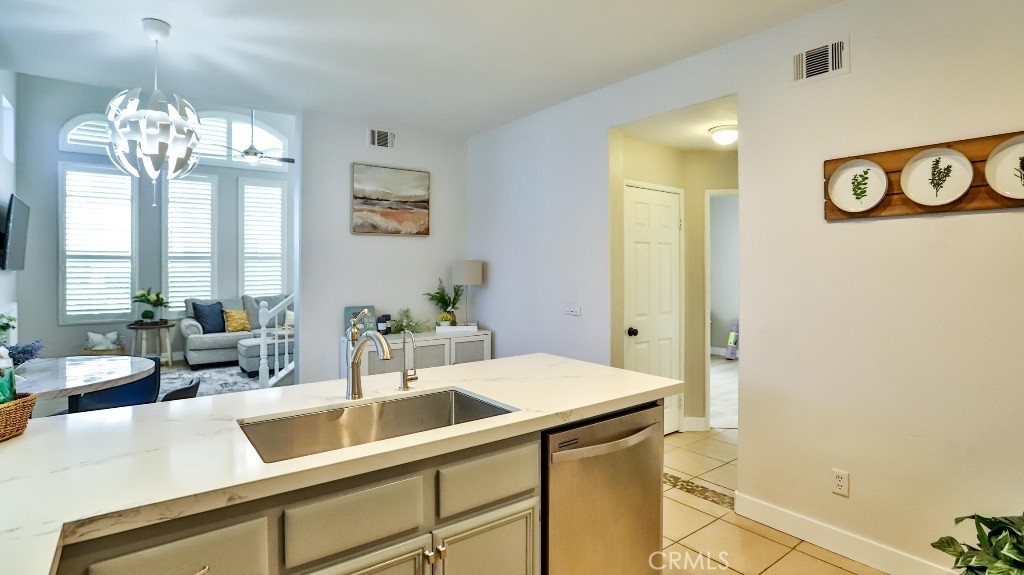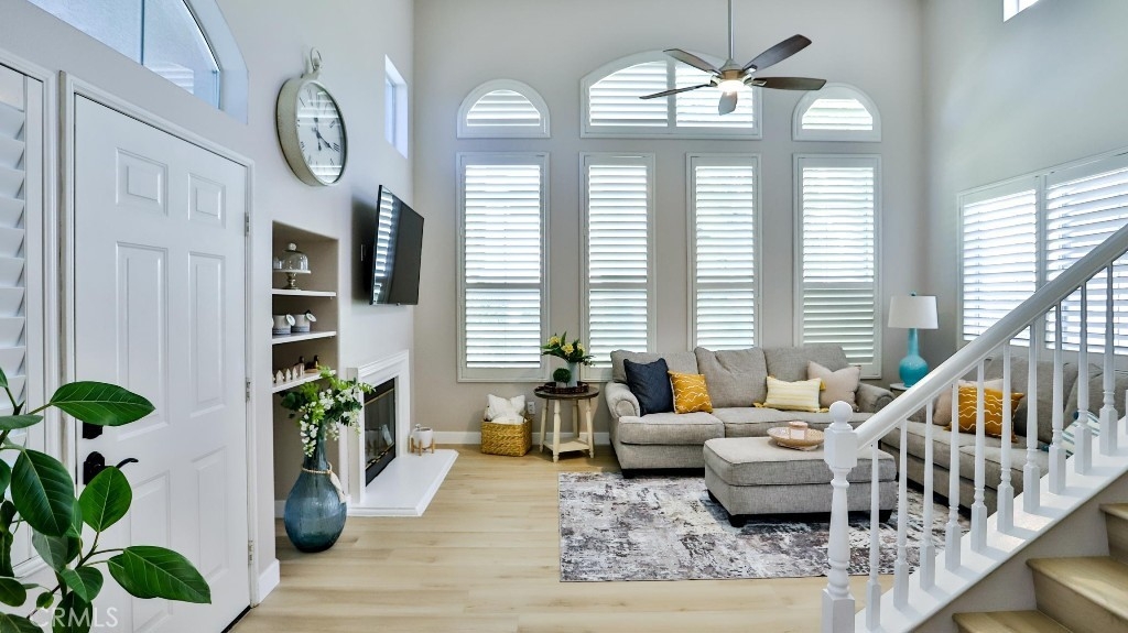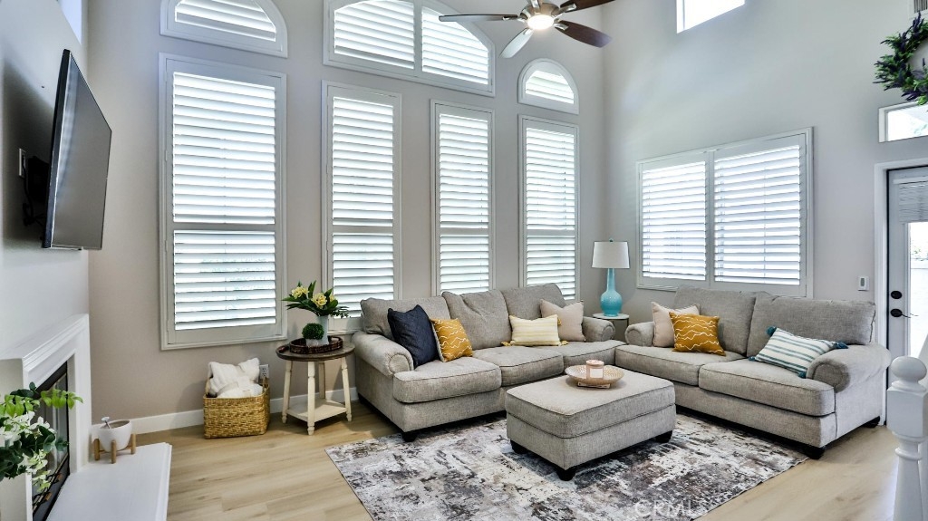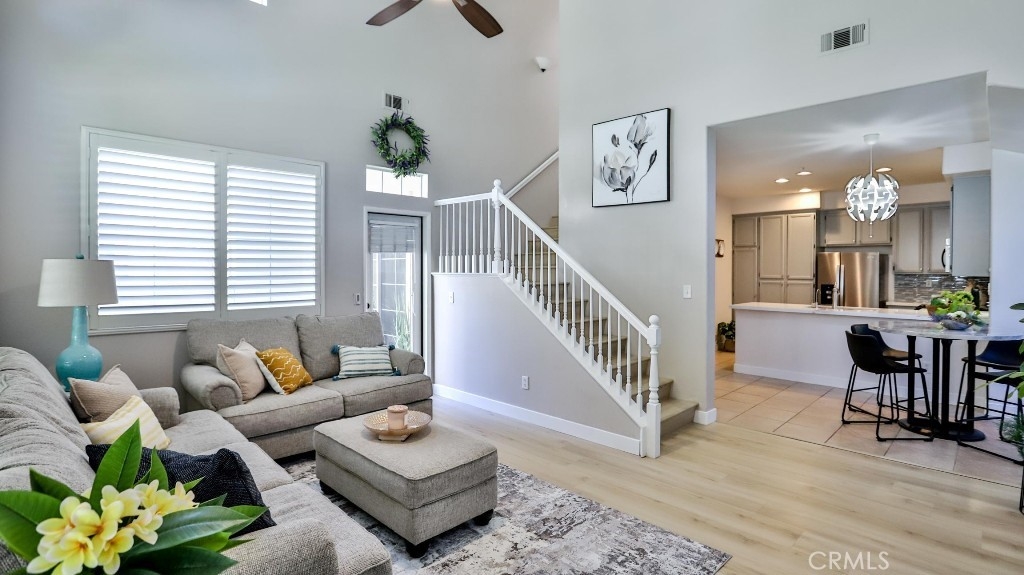 Welcome to this beautifully updated home featuring 3 spacious bedrooms and 3 full bathrooms. The smart layout includes a desirable main-floor bedroom with an adjacent full bath—ideal for guests, multigenerational living, or a private home office. Upstairs, you'll find two additional bedrooms, including a serene primary suite with an upgraded en-suite bath and a modern ceiling fan for year-round comfort. The open-concept living space is highlighted by soaring ceilings in the family room, flowing seamlessly into the kitchen and dining area—perfect for everyday living and effortless entertaining. New luxury vinyl plank flooring with the look of natural wood adds warmth and elegance throughout much of the home. The chef’s kitchen features custom natural wood cabinetry, quartz countertops, and durable tile flooring—combining timeless design with practical function. Located in a highly sought-after community, residents enjoy exceptional resort-style HOA amenities, including: A private beach club and lagoon A scenic lake with lakeside amphitheater Multiple swimming pools and beautifully appointed clubhouses Courts for basketball, pickleball, tennis, and volleyball Don’t miss this opportunity to own a stylish, move-in-ready home in a vibrant and amenity-rich neighborhood!