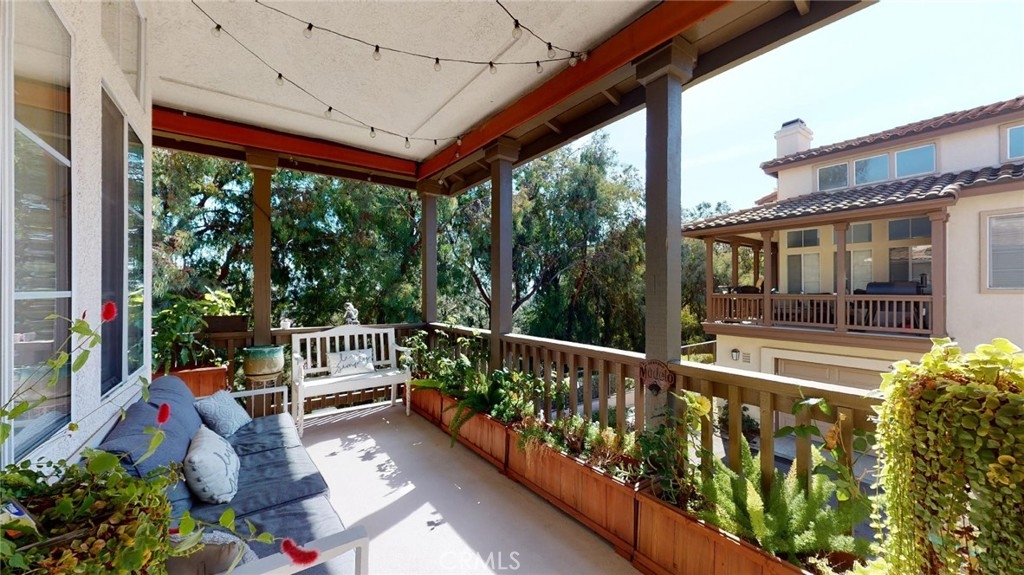 Welcome to Tierra Montanosa in the pleasant Melinda Heights neighborhood of Rancho Santa Margarita. This upgraded end-unit condominium is on the edge of the community, adjacent to a beautiful greenbelt that offers pleasing privacy and nature. This home includes 2 bedrooms and 2 full baths plus a loft perfect for an office or home gym. The large living room has soaring ceilings and a wall of windows that gives the room light and an airy feel. On cozy nights, the fireplace brings the warmth. Off the living room is a formal dining area and upgraded kitchen with stainless steel appliances, quartz countertops, farm sink and breakfast bar. You’ll even find a niche that’s perfect for homework or bill-paying station. The spacious master suite has ensuite with dual sinks, private toilet and walk-in closet. Wood flooring plus upgraded tile flooring in kitchen and baths. Plantation shutters throughout. But this is SoCal, and you have to appreciate the outdoors. … Enjoy evenings on the balcony with your favorite someone and beverage of choice, the sound of songbirds and a breeze wafting through the trees. It’s like living at your own retreat. The community swimming pool is just a block’s stroll away. And this home is conveniently located across the street from well-regarded Melinda Heights Elementary and HOA’s Altisima Park, which features large swimming pool, tennis court, basketball courts, baseball and soccer fields. Affordable HOA includes access to Rancho Santa Margarita Beach Club & Lagoon. Shopping, services and easy toll road access is nearby.