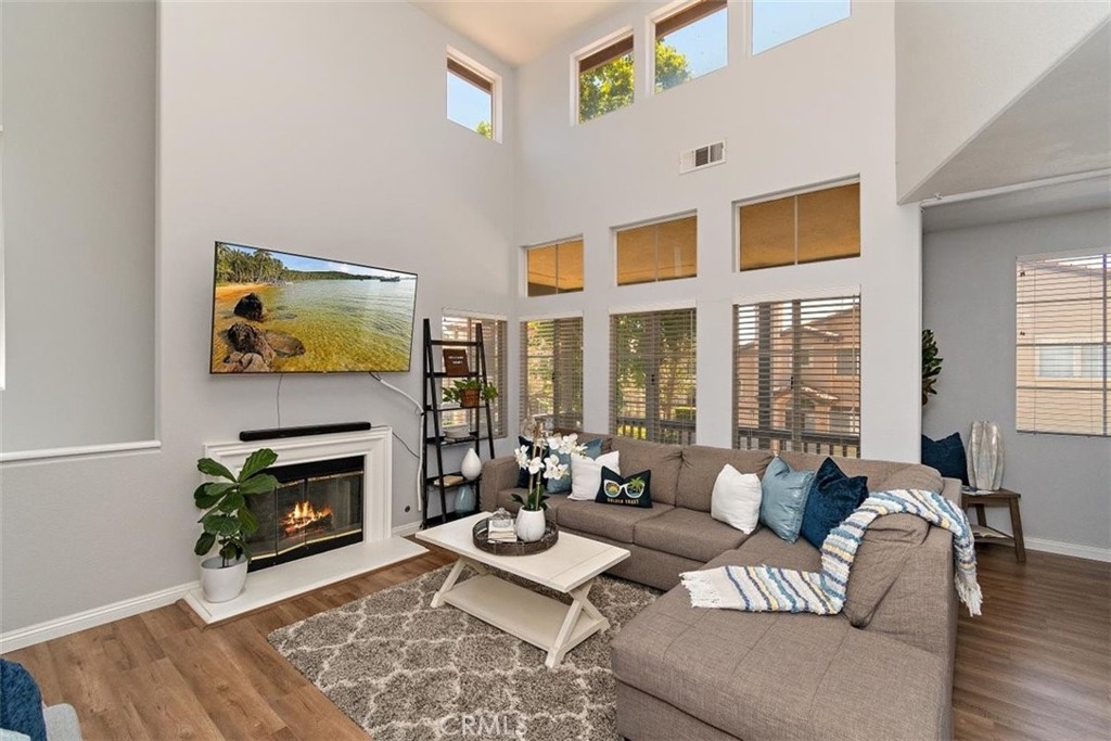 Welcome to 49 Tierra Seguro!! A gorgeous condominium in the highly desirable MELINDA HEIGHTS neighborhood of Rancho Santa Margarita. A favorable end unit with no neighbors below or above you! Walk into your living room with two-story high ceilings and a very OPEN floor plan. This unit has many features including updated new flooring, newer paint, refinished kitchen cabinets, recessed lighting and direct garage access! Main level features a spacious kitchen with a breakfast counter, living room, dining area and two bedrooms and both bathrooms. Living room features a gas fireplace and great-size windows to bring in tons of natural light! HUGE upstairs loft is currently being used as a third bedroom can be transformed to office space or game room! This unit also features one of the largest garage sizes in the complex with space large enough to fit your two cars and personal gym equipment! No Mello Roos! The Tierra Montanosa Community includes access to a resort-style pool, spa, clubhouse & ample guest parking throughout! Less than one mile from the AWARD-WINNING Melinda Heights Elementary school, 241 toll road & just minutes away from hiking and mountain trails! SAMLARC membership provides access to various perks including multiple city parks, swimming pools, skate parks, dog parks and RSM Beach Club & Lagoon.
