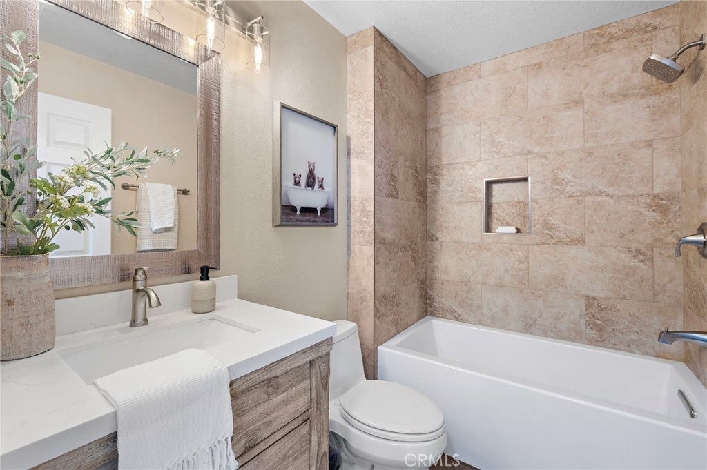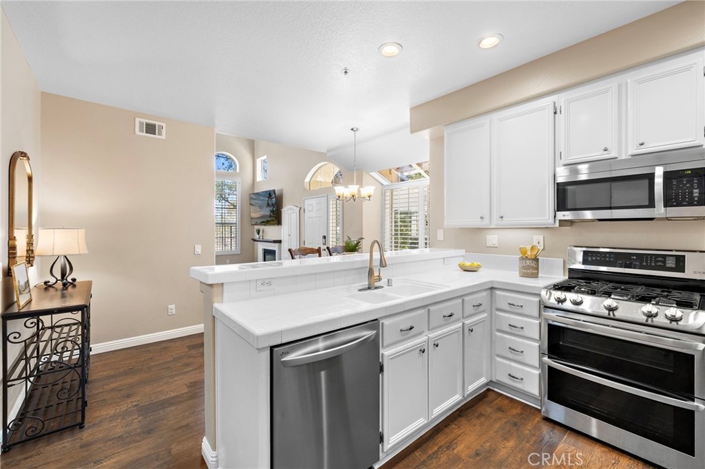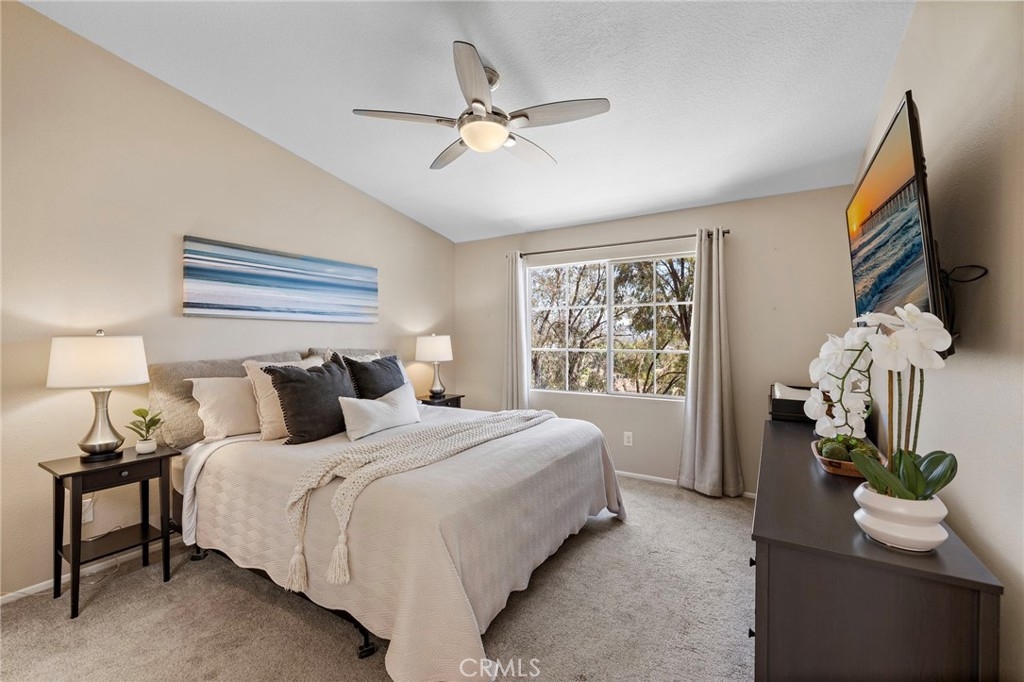 From the moment you walk in, soaring ceilings and natural light create a bright and inviting atmosphere. As an end-unit, the home also benefits from extra windows, adding even more light and a greater sense of openness throughout. With shutters already in place, you’ll enjoy both the look and the savings of this major upgrade from day one. The living room is anchored by a fireplace, creating a comfortable place to relax after a long day or gather with friends. Just beyond, the kitchen seamlessly connects to the dining and family areas for an open-concept feel that makes both everyday living and entertaining easy. Neutral white cabinetry provides plenty of storage and a clean backdrop, ready for your own personal style to shine. The layout is exceptional—both practical and flexible to fit a variety of needs. On the main level, you’ll find a bedroom and full bathroom (sink, toilet, tub, and shower). Upstairs, two additional bedrooms each feature an en-suite bathroom (a bathroom inside the bedroom). The primary suite stands out with two closets and a double-sink vanity offering added convenience and functionality. Everyday essentials are well covered: an interior laundry closet keeps chores simple, a two-car attached garage means direct access and extra storage, and a gated patio offers the perfect spot to unwind outdoors and take in the views. Beyond your front door, Tierra Montanosa offers resort-style amenities just around the corner, including a pool and spa. Living in Rancho Santa Margarita also means access to the scenic lake and lagoon, plus Altisima Park with a playground, pool, and wide-open green spaces. Shopping, dining, and well-regarded schools are all nearby, with excellent proximity to highly regarded Melinda Heights Elementary. Blending comfort, function, and a standout location, this home makes it easy to enjoy the best of Rancho Santa Margarita living.