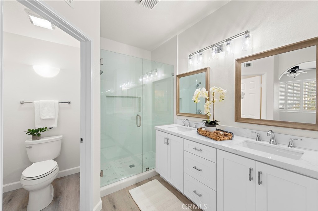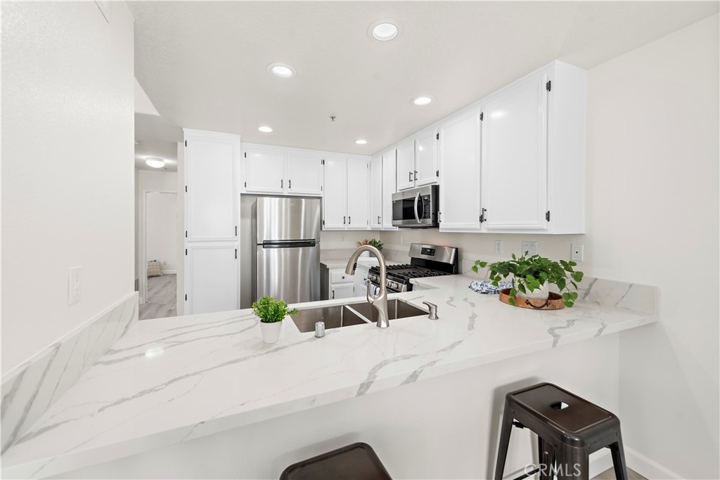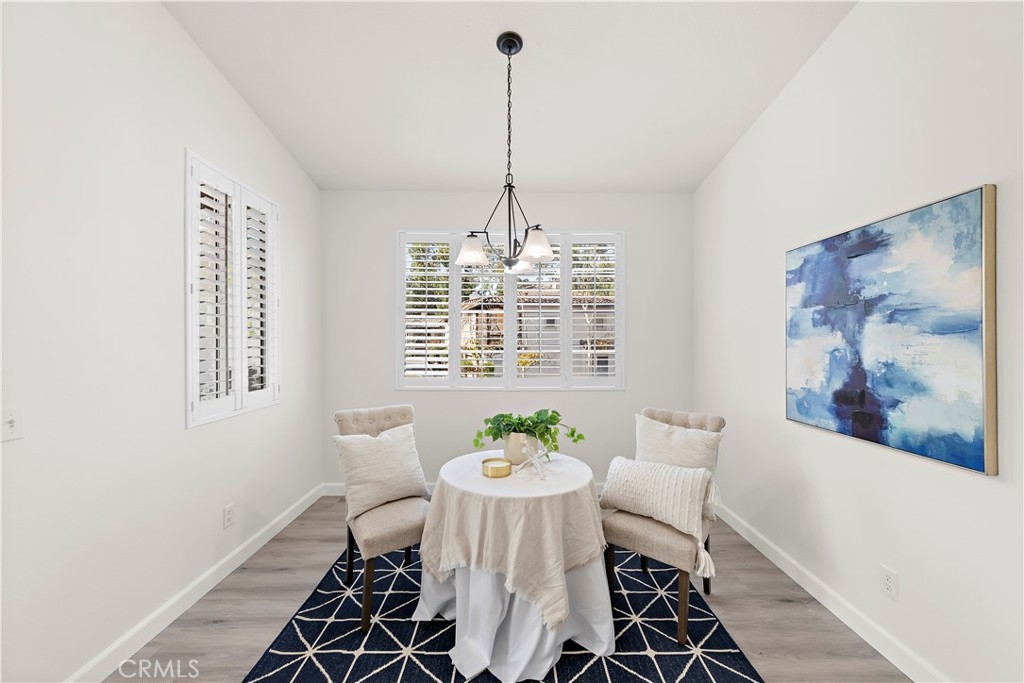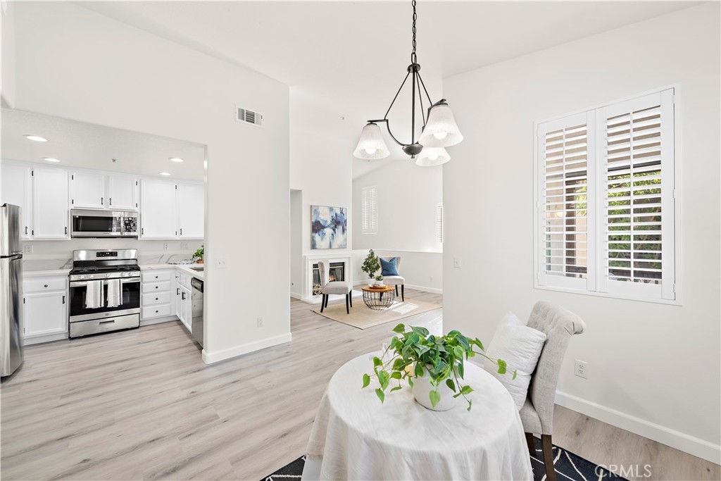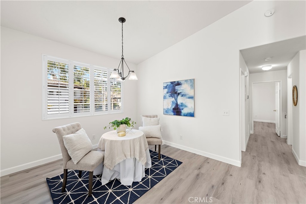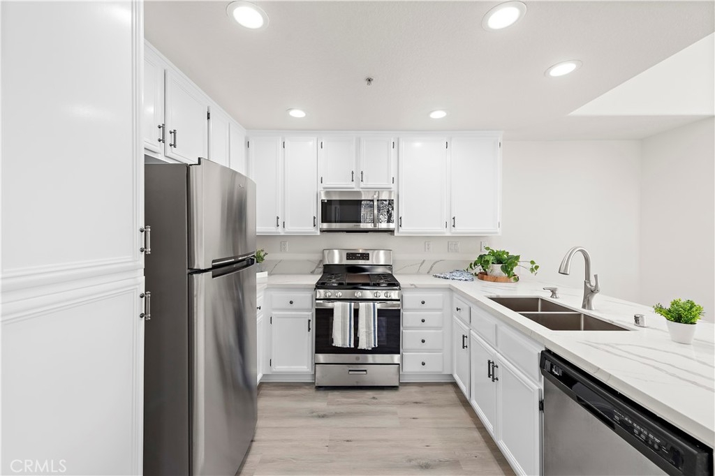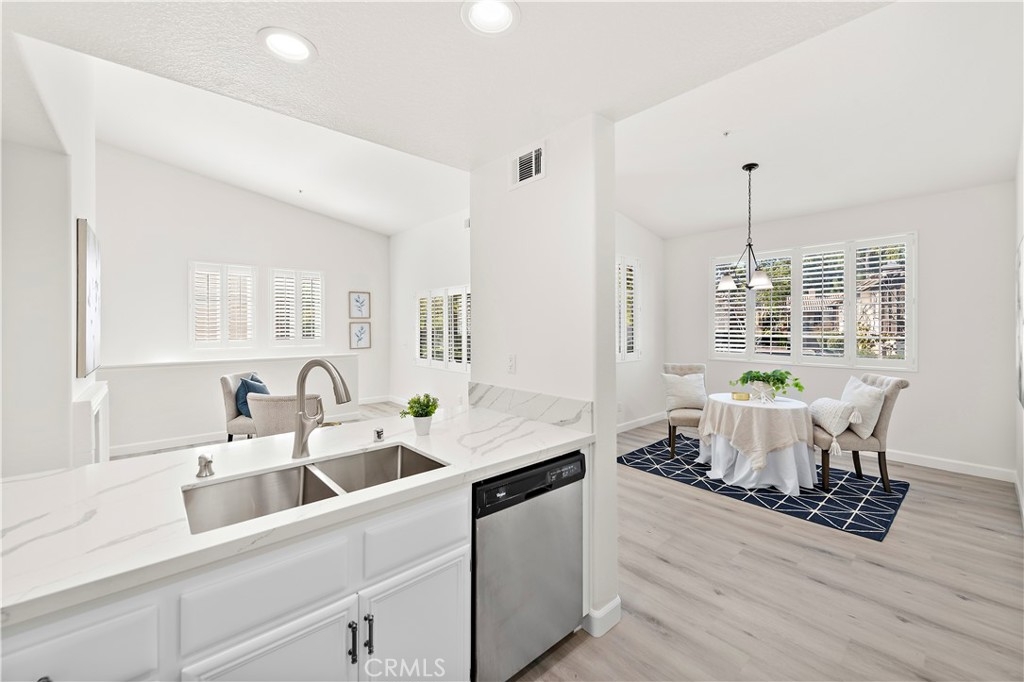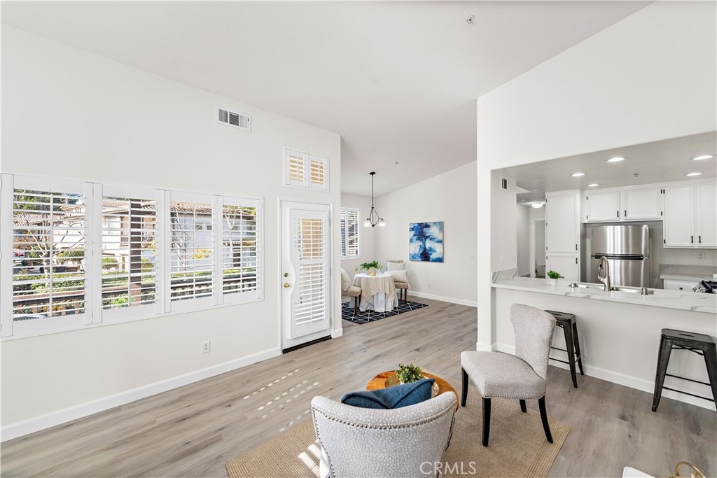 BEAUTIFUL UPDATED CONDO IN WONDERFUL MELINDA HEIGHTS NEIGHBORHOOD, across the street from Blue Ribbon MELINDA HEIGHTS ELEMENTARY school. This 2bed/2 bath nicely updated CARRIAGE UNIT, W ATTACHED 1 CAR GARAGE, is an end unit and has a nice view of trees from the lovely, oversized balcony. This home has recently been renovated with new luxury vinyl flooring throughout, completely remodeled Master bathroom, and partially remodeled secondary bath. Both bedrooms are large. The kitchen is nicely upgraded w maple cabinetry, & quartz countertops, w an eat-in bar. A separate dining area is large enough to fit a full-size table, and there is a comfortable family room, w room for 2 couches. This is a darling unit. located in a gorgeous and sought after neighborhood, with access to all the terrific amenities that Rancho Santa Margarita offers which include, 4 Jr. Olympic sized pools, the beach club, Santa Margarita Lake, tennis, Pickleball, basketball, and volleyball courts, and numerous parks, and sport fields.