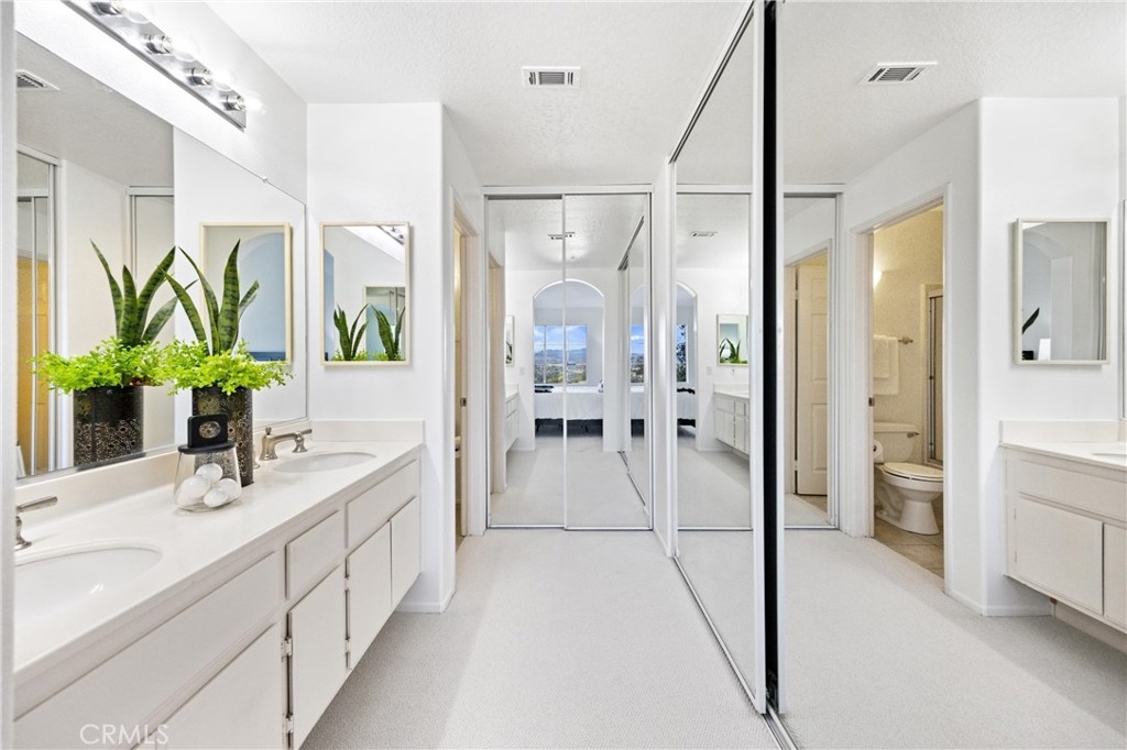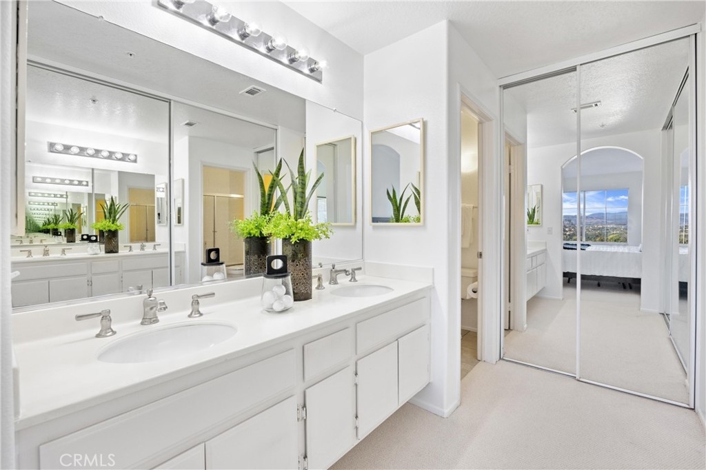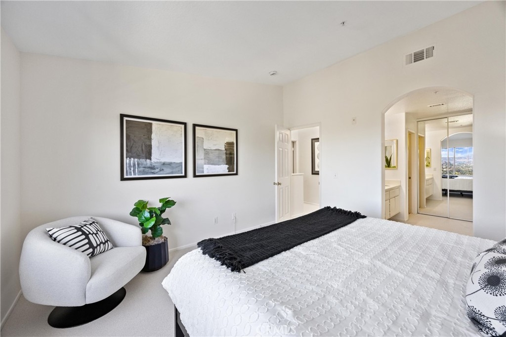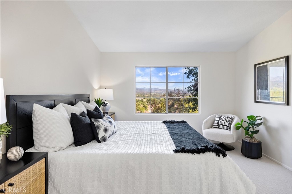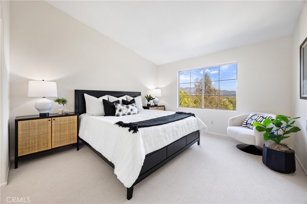 Welcome to your dream home in the beautiful community of Tierra Montanosa. This stunning three-bedroom, three-bathroom condominium offers panoramic views of the city lights, valley and Saddleback mountains, creating a serene backdrop for your everyday life. As you step inside, you'll be captivated by the soaring cathedral ceilings and abundant natural light streaming through the floor-to-ceiling windows. The open-concept layout is perfect for both relaxation and entertaining. One of the highlights of this home is the convenient full bedroom and bathroom located downstairs with slider to patio, ideal for guests or family members. Upstairs you will find dual-masters. One with walk in closet, the other with 2 closets and incredible panoramic views! The remodeled kitchen features gorgeous hardwood cabinetry and modern finishes. This home comes equipped with essential appliances, including a washer, dryer, and refrigerator, along with new paint and carpet throughout for a fresh, modern feel. Enjoy the luxury of a two-car attached garage with a Tesla charging system, making life easier for eco-conscious residents. The wonderful amenities in Rancho Santa Margarita include six swimming pools, spa, various sports courts, parks, scenic hiking trails, and exclusive access to Rancho Santa Margarita Lake and Beach Club. This community is recognized as the safest city in California for the second consecutive year. Additionally, you’re just a short distance from the highly-acclaimed Melinda Heights Elementary School. Don’t miss your opportunity to own this spectacular condominium in a vibrant community! Schedule your viewing today and experience all that Rancho Santa Margarita has to offer.