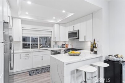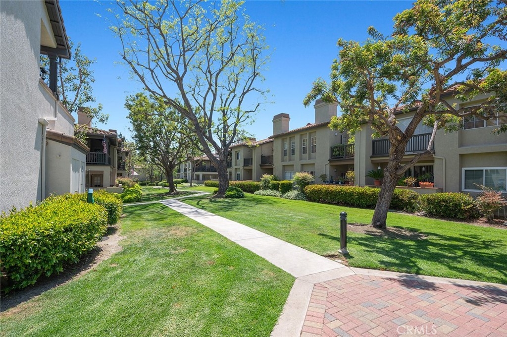 Nestled in the picturesque community of Rancho Santa Margarita, Tijeras Creek Villas offers a serene living experience backing onto the stunning Tijeras Creek Golf Club. This charming one-bedroom condo boasts a private one-car garage plus an additional parking spot surrounded by natural beauty. Step inside to discover an inviting open floor plan with a remodeled kitchen and bathroom featuring stone countertops and warm wood cabinetry. The unit includes convenient inside laundry hookups, forced air heating, and air conditioning for year-round comfort. Relax in the spacious living room by the cozy gas fireplace, or enter your private, ground-floor tiled patio. The living area has elegant vinyl wood plank flooring, custom pendant lighting, and a ceiling fan. The bedroom offers a generous closet, tall sliding doors leading to the patio with plantation shutters, and a ceiling fan for added comfort. The upgraded bathroom includes stone countertops and a tub/shower combination. Two windows overlooking the entryway bathe the kitchen in natural light, creating a bright and welcoming atmosphere. Enjoy the community's extensive amenities, including a fully equipped gym with a sauna and two pool and spa areas. One pool area offers breathtaking views of the Tijeras Creek Golf Club and the scenic tee for hole #5. Experience prime living in Rancho Santa Margarita at Tijeras Creek Villas, where comfort and luxury blend seamlessly with the beauty of the surrounding landscape.
