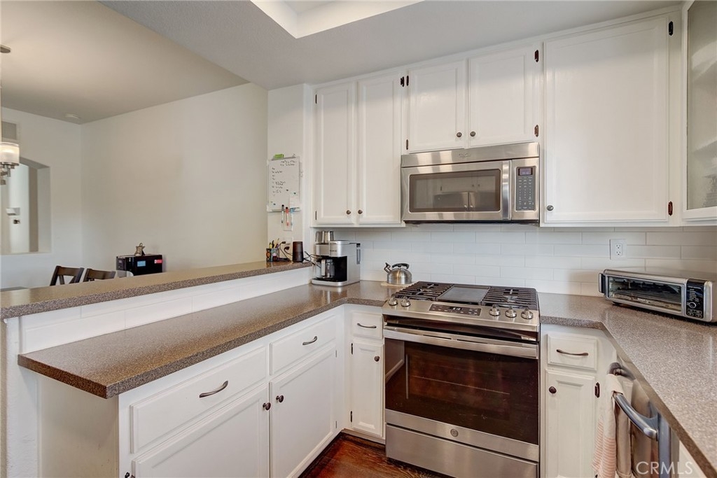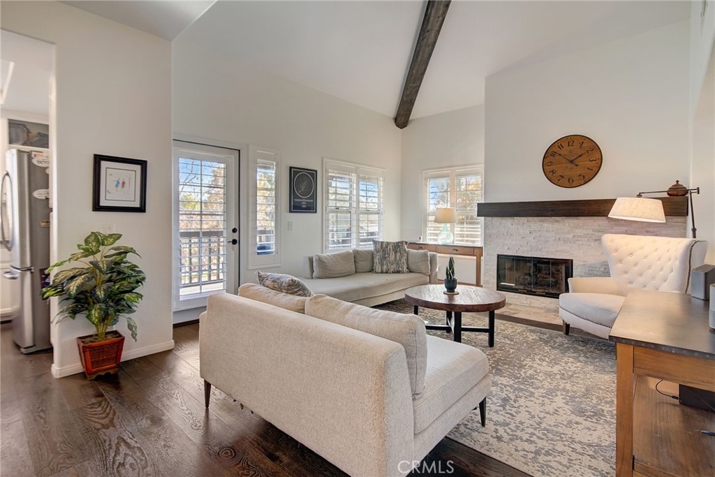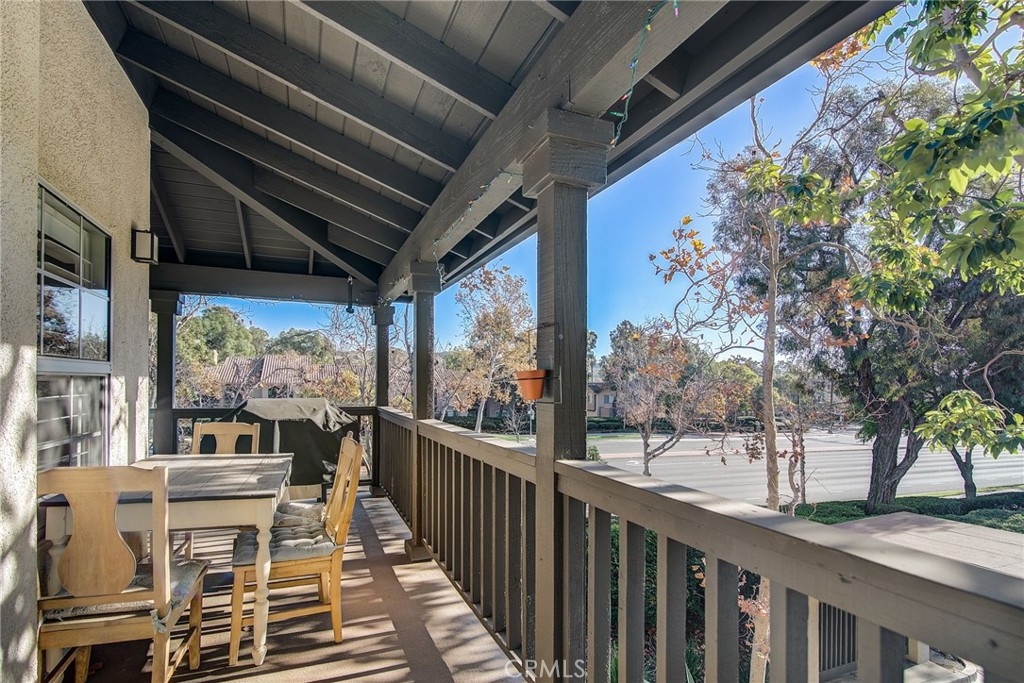 Welcome to one of the largest floor plans in Tijeras Creek Villas. Second level turnkey condo features an open concept dining room/living room with a vaulted beamed ceiling and a stacked stone fireplace. Upgraded kitchen offers shaker style cabinets, breakfast bar and stainless steel appliances. The spacious dual suites both include ample closets and private bathroom. Enjoy the wrap-around outdoor balcony that can be accessed from one suite as well as the living room, perfect for entertaining. Includes a one car garage with storage shelves and one assigned covered carport. Community amenities include pool, spa, fitness center and access to Rancho Santa Margarita Lake Beach Club. Conveniently located near Schools, Shopping,Tijeras Creek Golf Club and Parks.