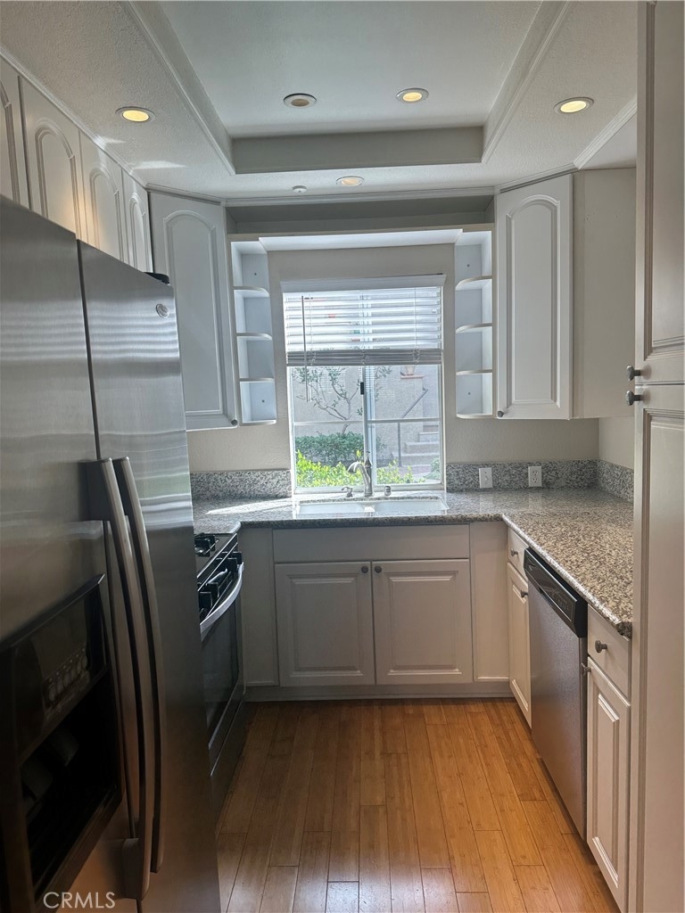 1 Bedroom, 1 Bath, Ground Level Condo, well designed floorplan, 1 Car Detached Garage, 1 Parking Permit, Bedroom has Closet Organizer, Remodeled Bathroom, Vanity with Granite Countertop, Tiled Shower, Remodeled Kitchen with Granite Countertops, White Kitchen Cabinets with pull out shelves and soft close drawers, Stainless Steel Appliances Refrigerator Included, Gas Range, Gas Fireplace, Crown Molding, Baseboards, Bamboo Flooring (No Carpet), Newer Oversized Stackable Large Capacity Washer/Dryer Included, New AC plus New heater, Ceiling Fan, LED Lighting, Small Storage Closet on Patio, Fitness Center Pool, Spa, BBQ Grills in Complex, Tijeras Creek Villa's Located Adjacent to Tijeras Creek Golf Course! Serra Catholic School Across the Street, Arroyo Vista Elementary/Middle School, Tesoro High School, Capistrano Unified School District, Many Parks Nearby.